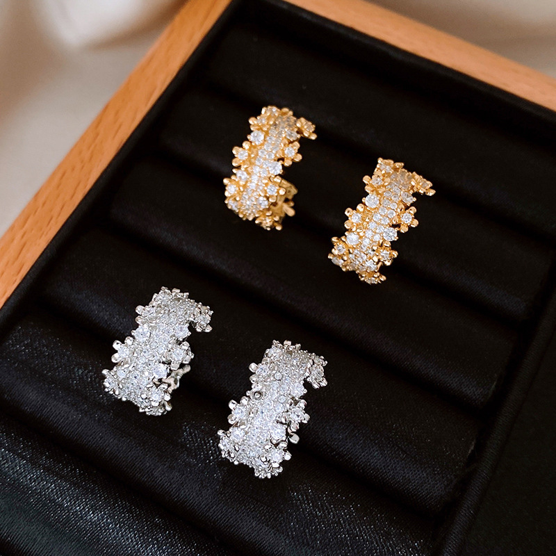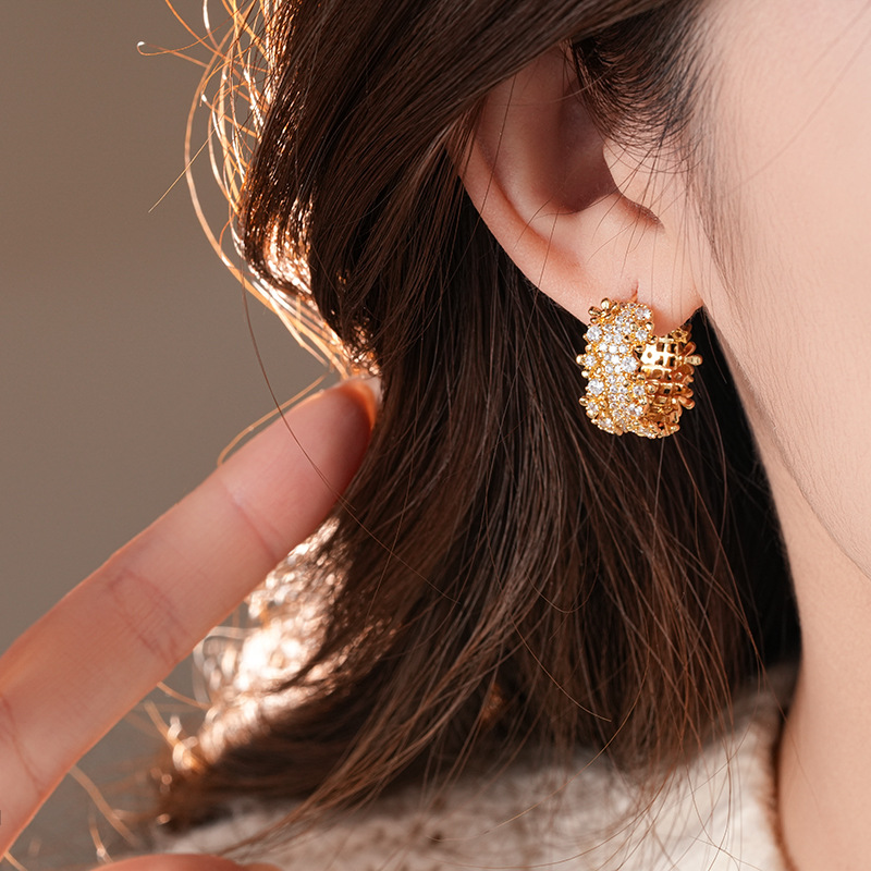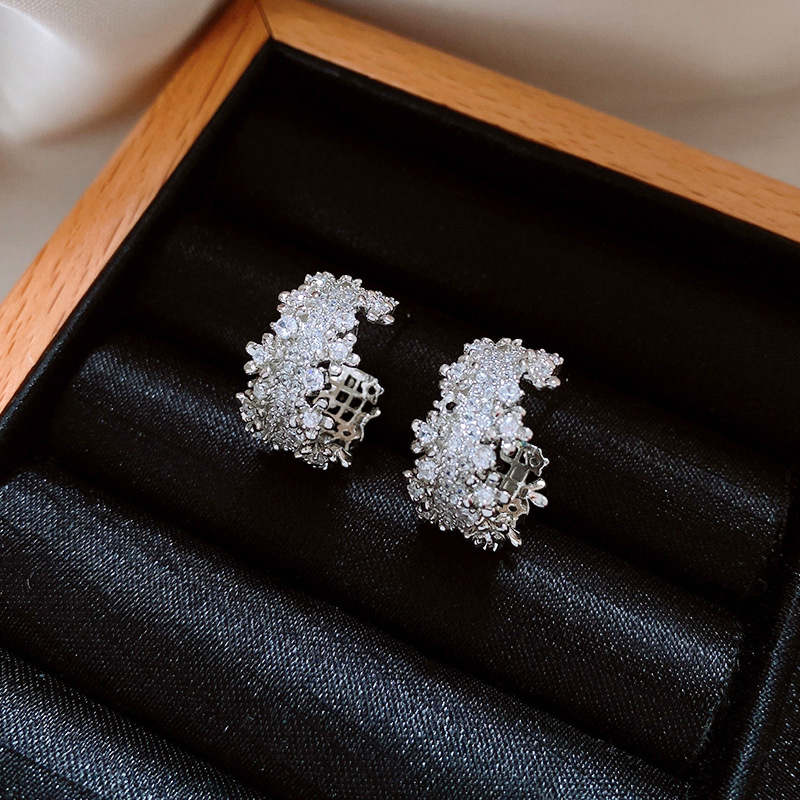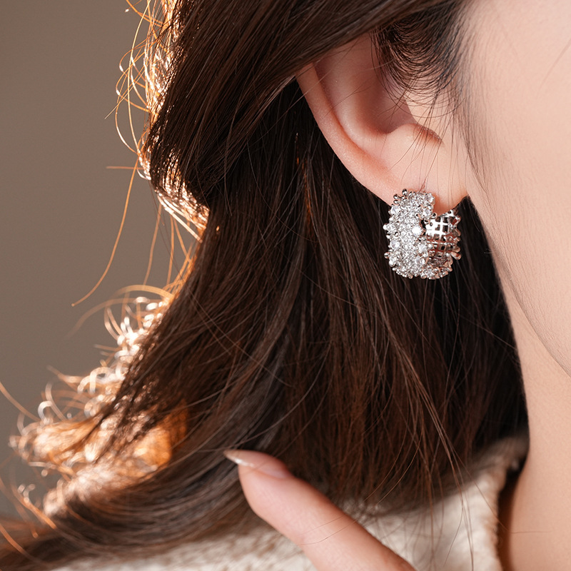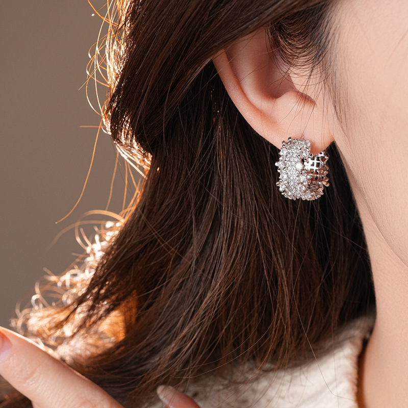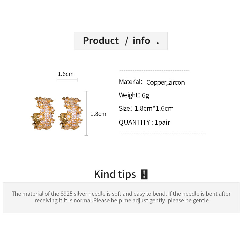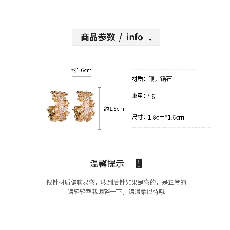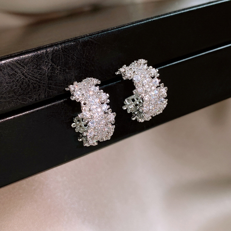 银针轻奢锆石C形耳钉时尚气质精致百搭耳环韩国新款高级感耳饰女