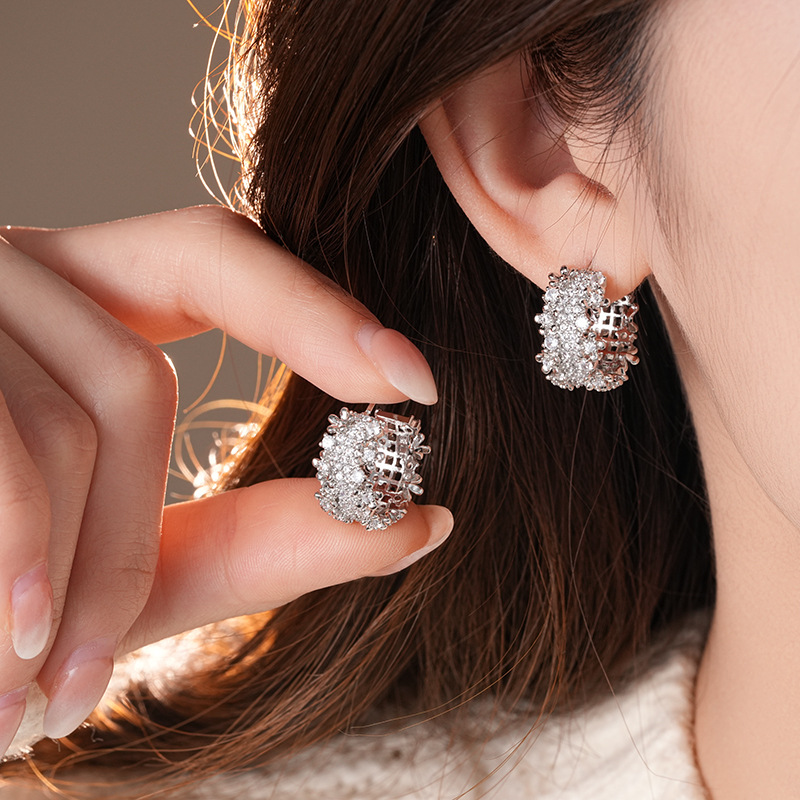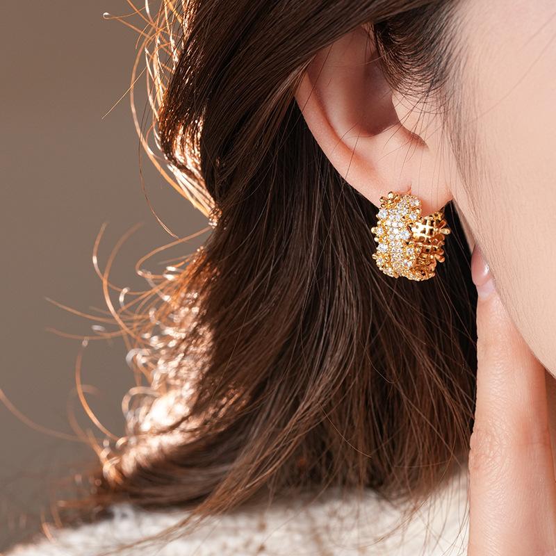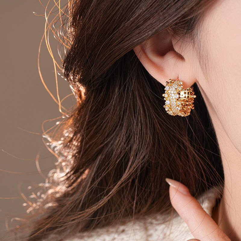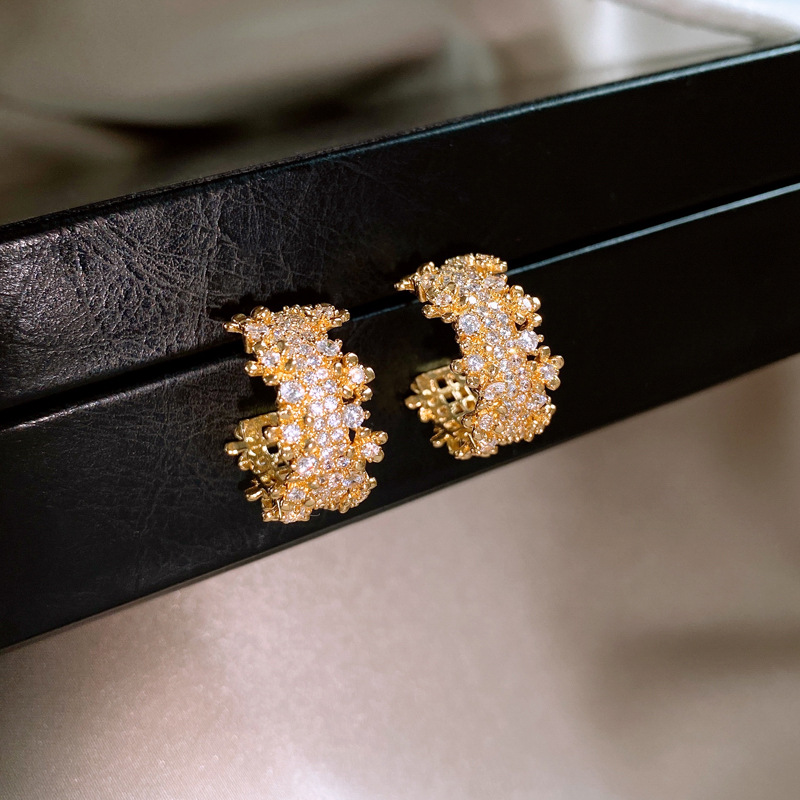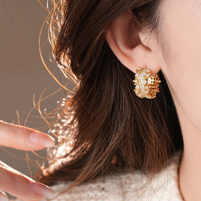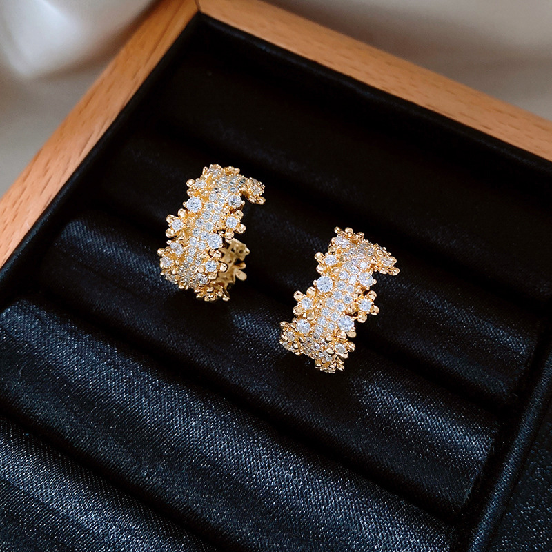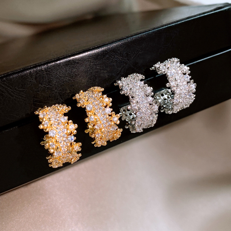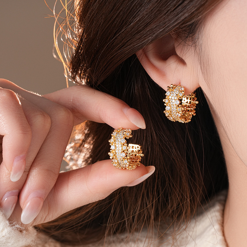 银针轻奢锆石C形耳钉时尚气质精致百搭耳环韩国新款高级感耳饰女