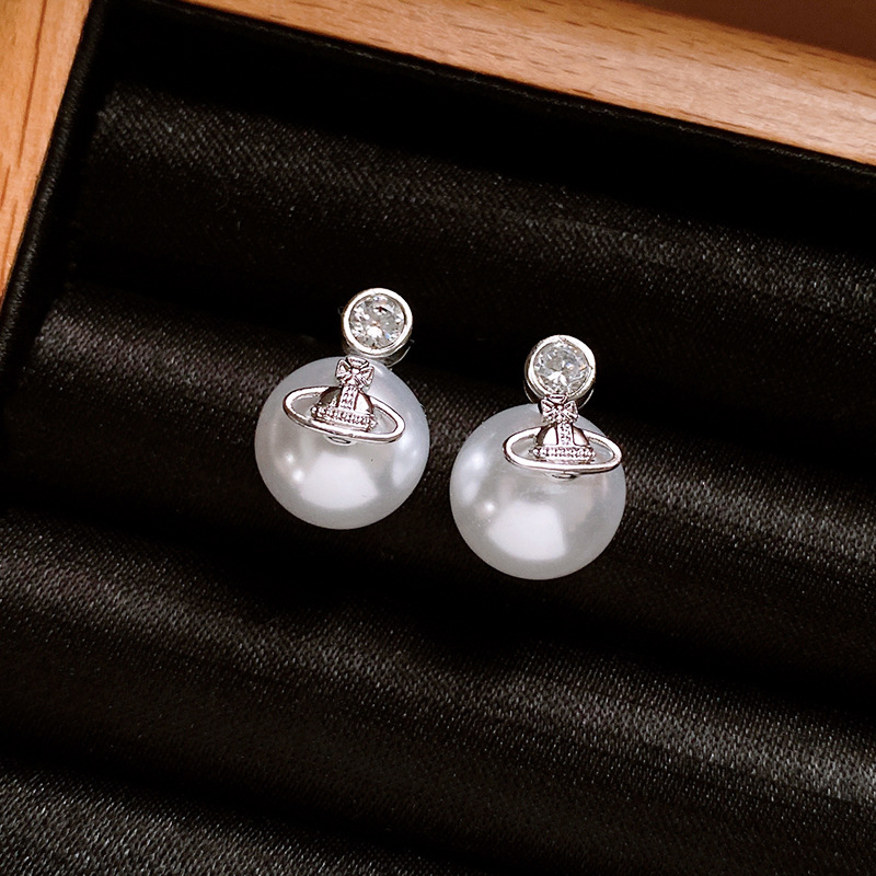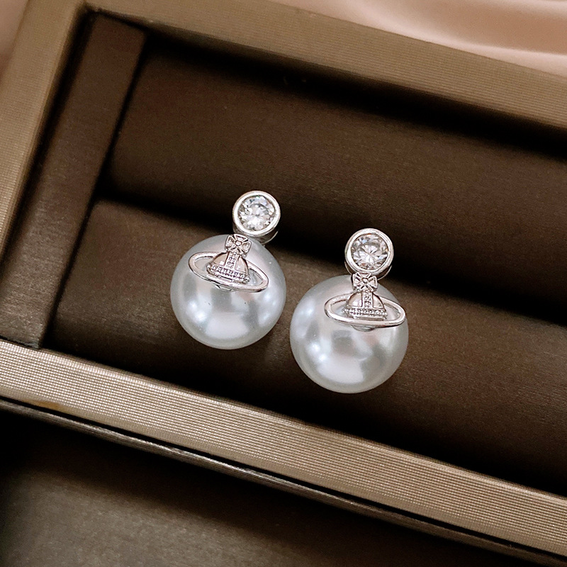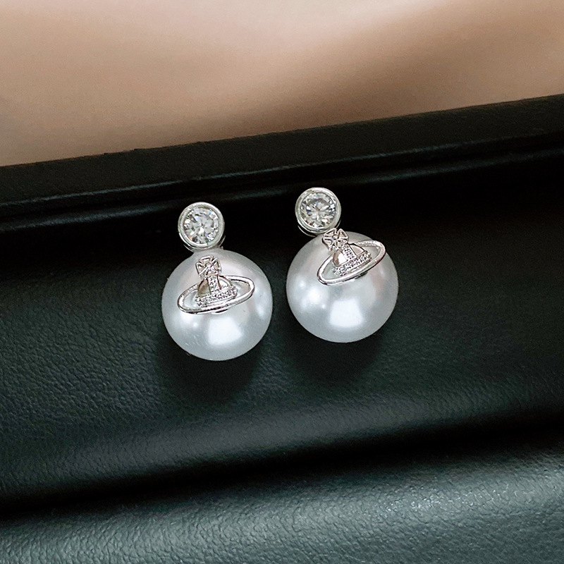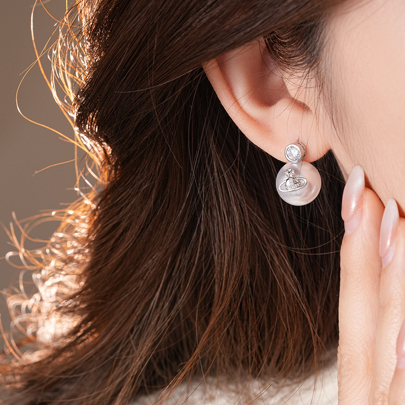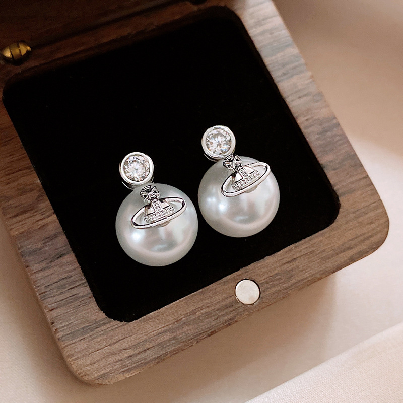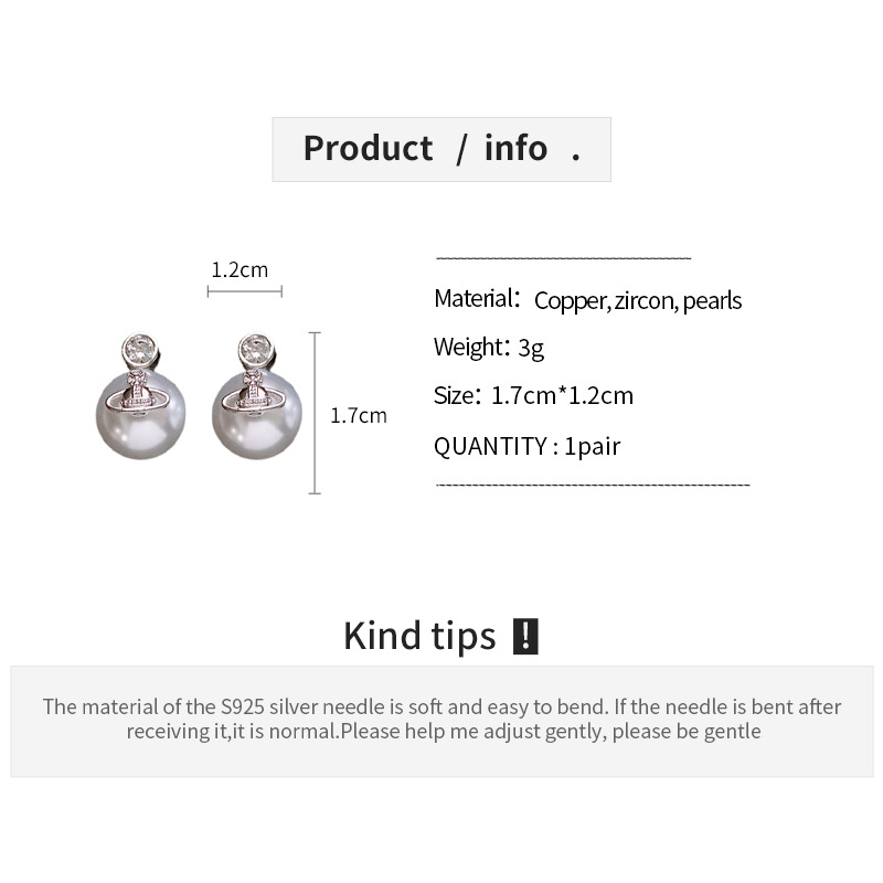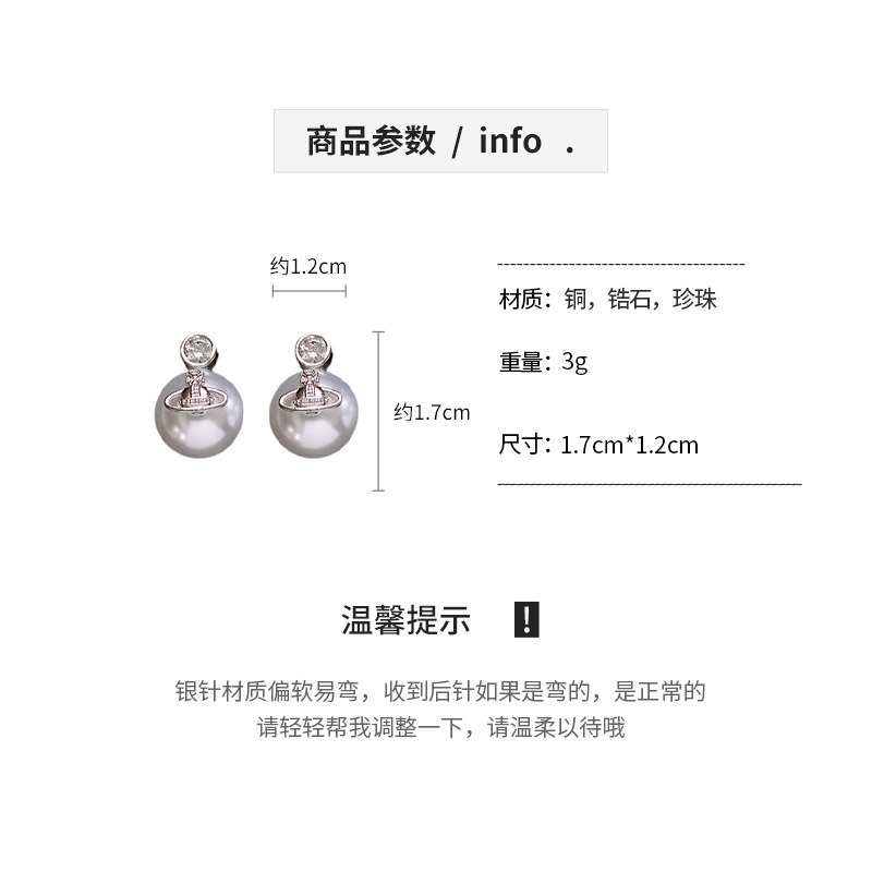 银针锆石淡水珍珠圆球土星耳钉简约优雅轻奢风耳环小众高级感耳饰