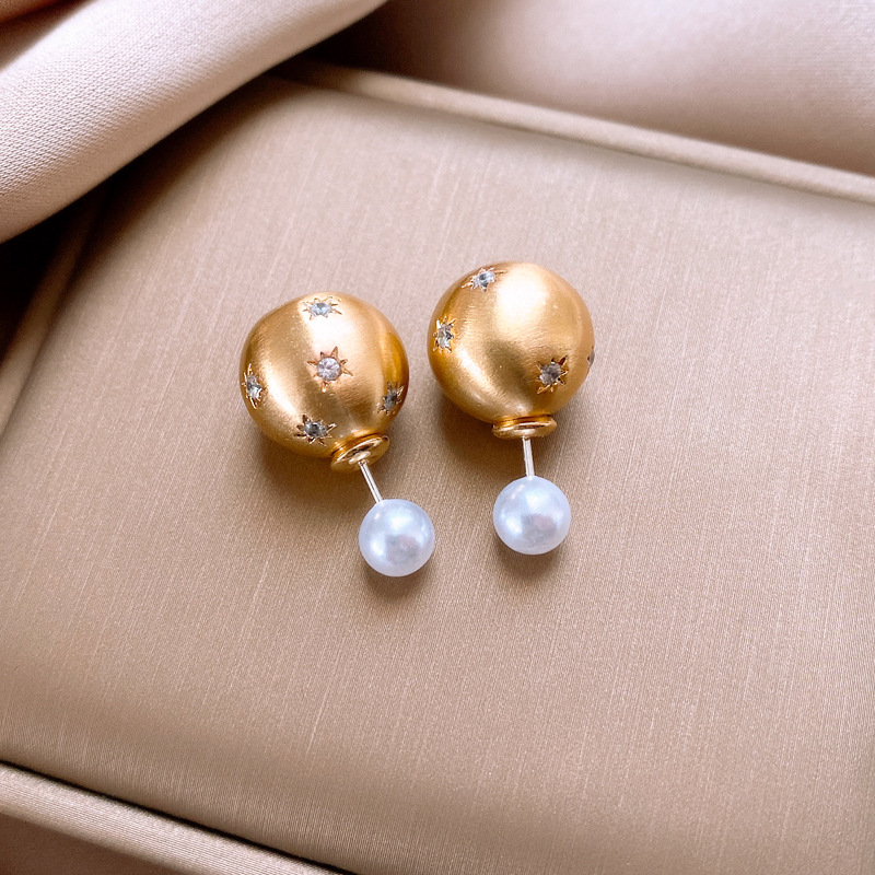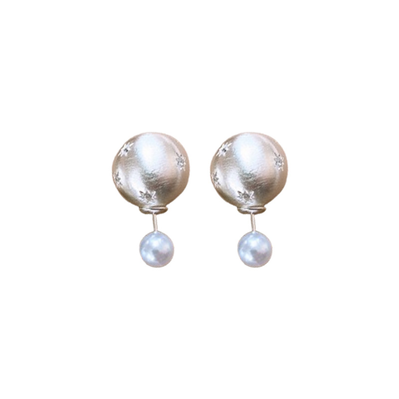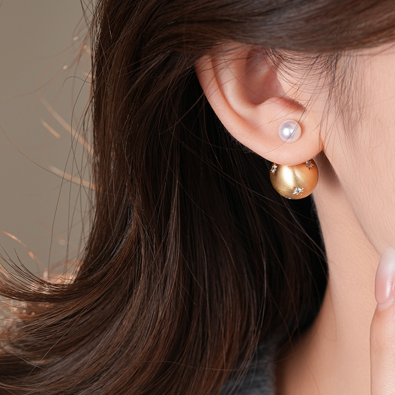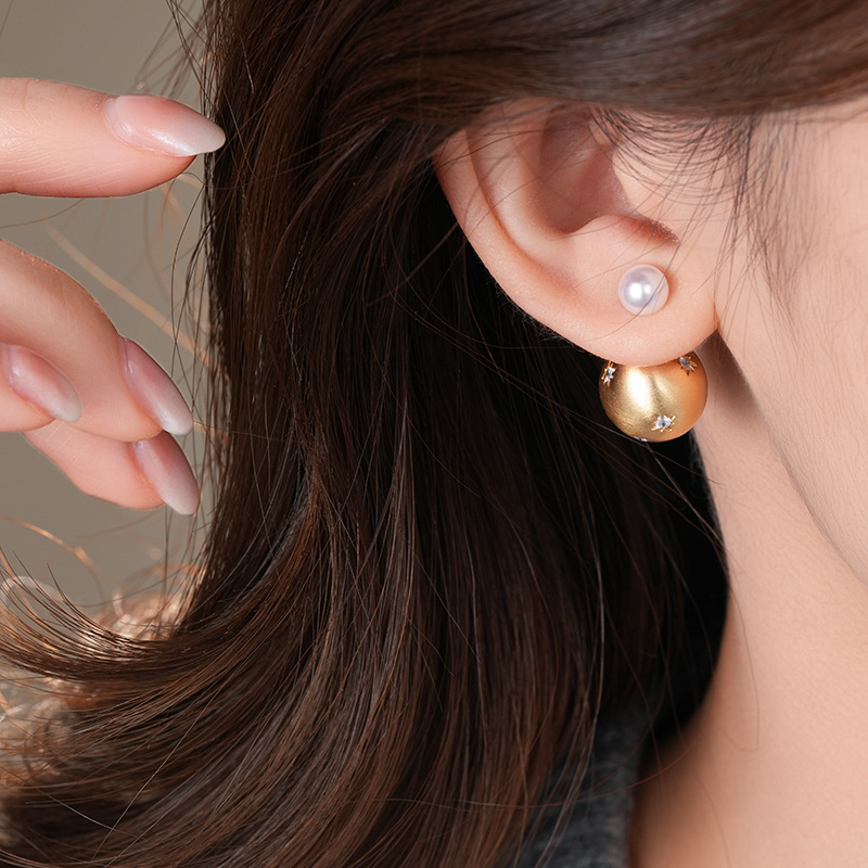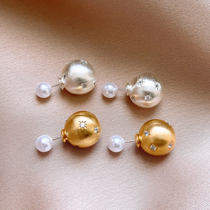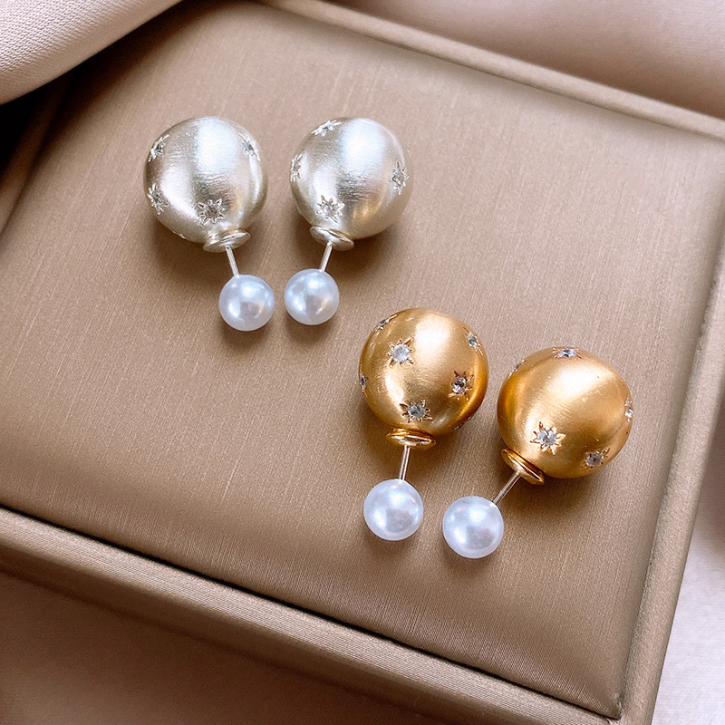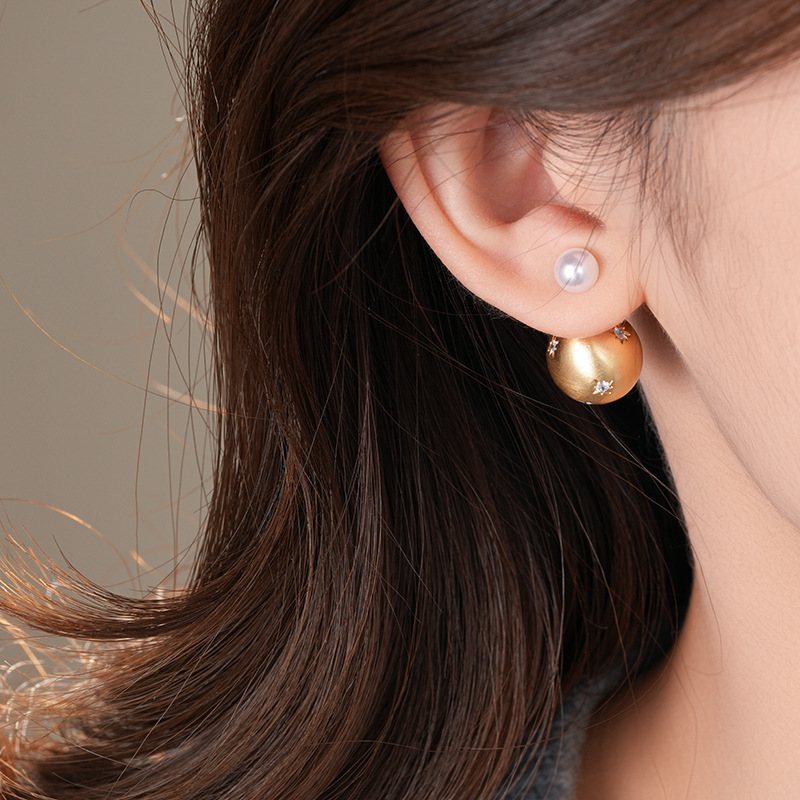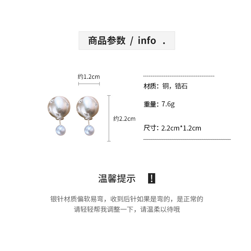银针锆石拉丝圆球珍珠耳钉轻奢高级感精致耳环小众百搭时尚耳饰女