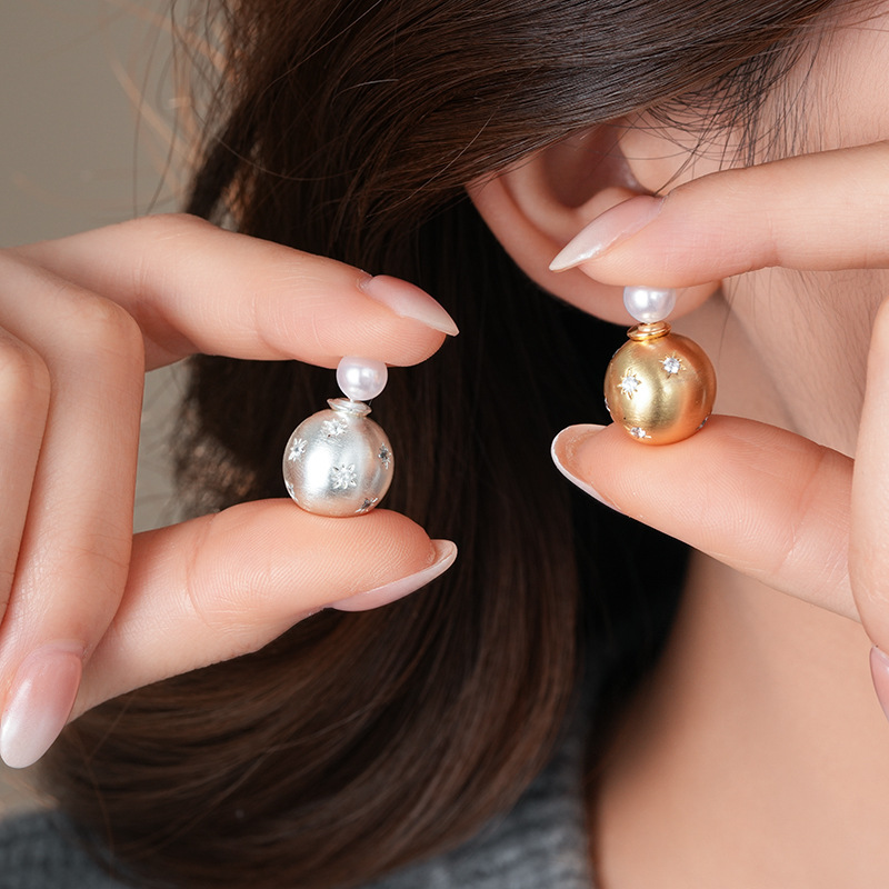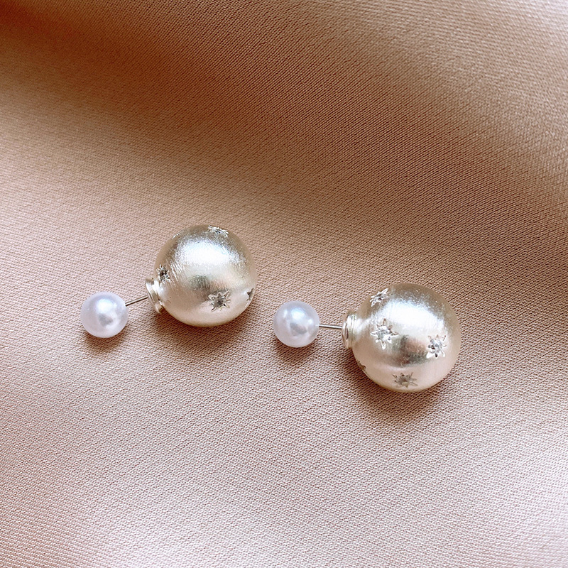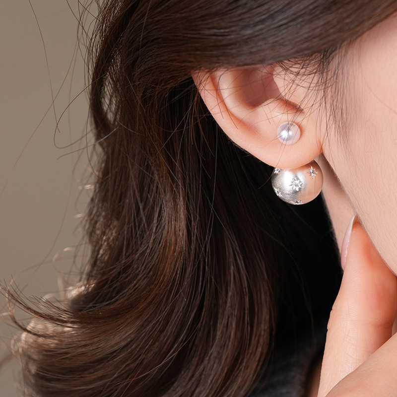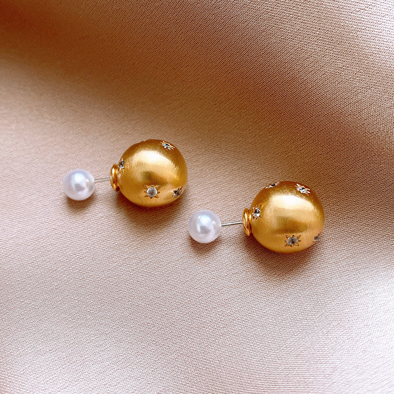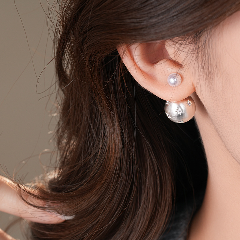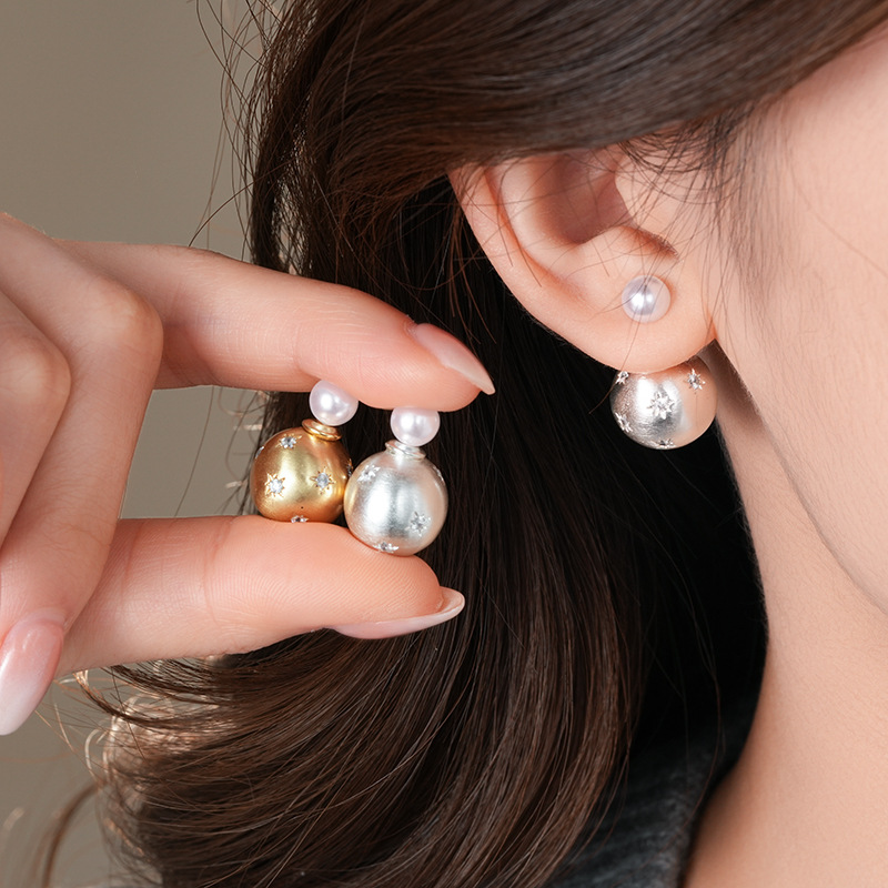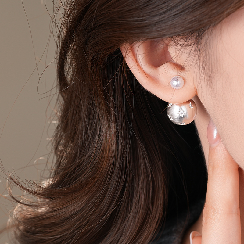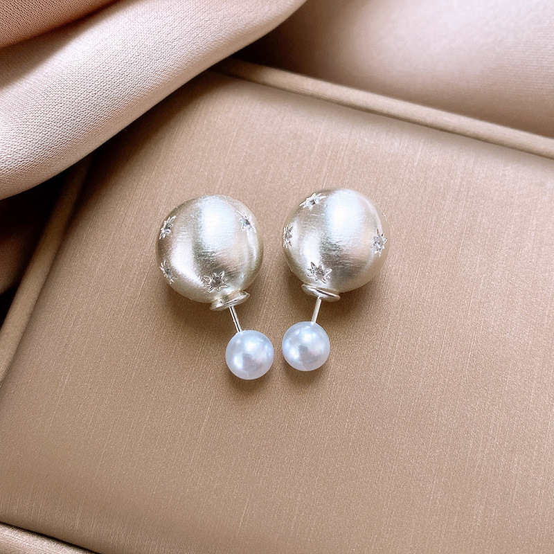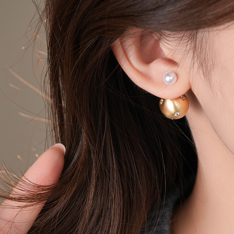 银针锆石拉丝圆球珍珠耳钉轻奢高级感精致耳环小众百搭时尚耳饰女