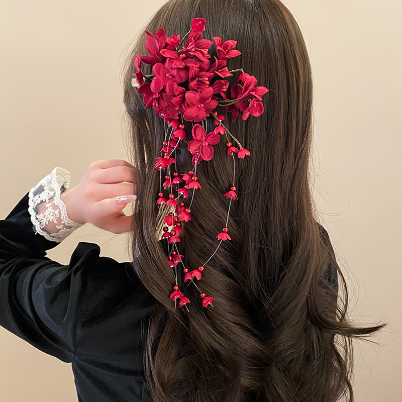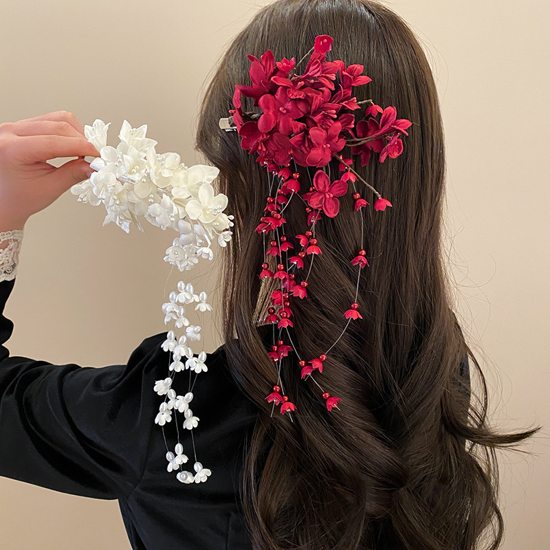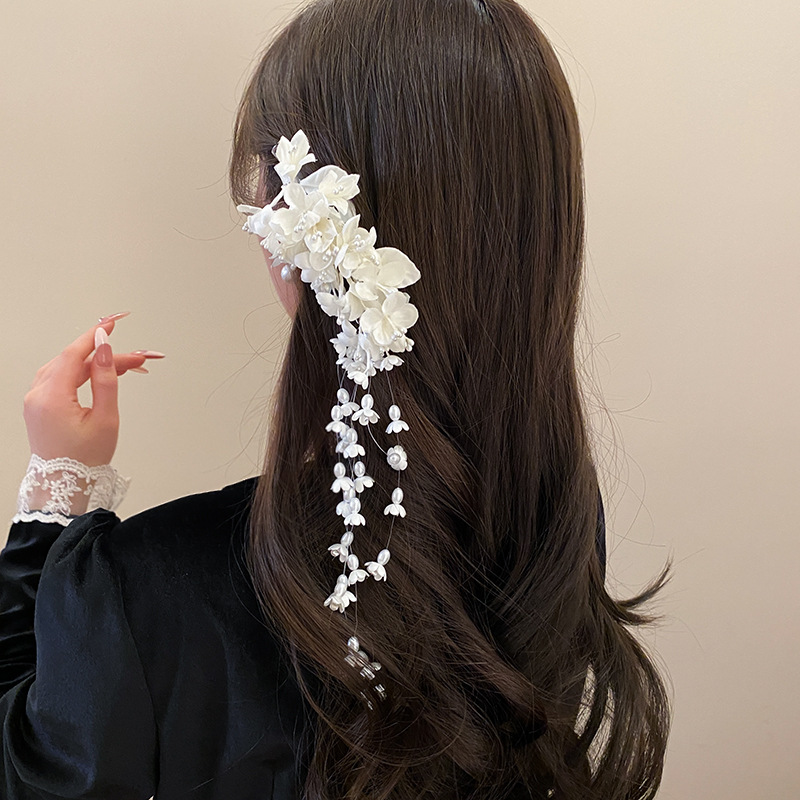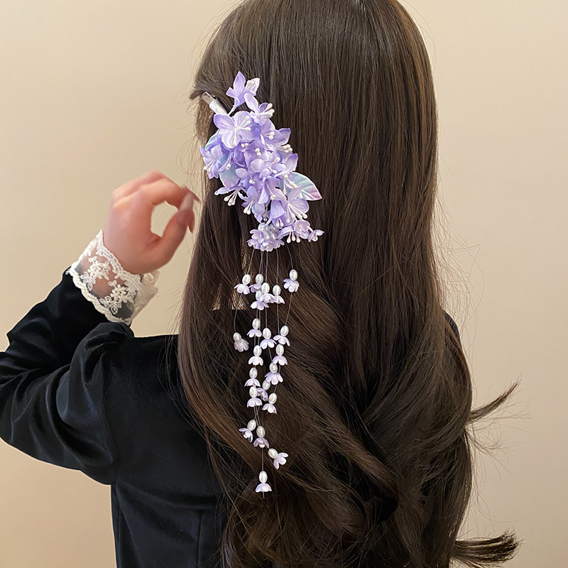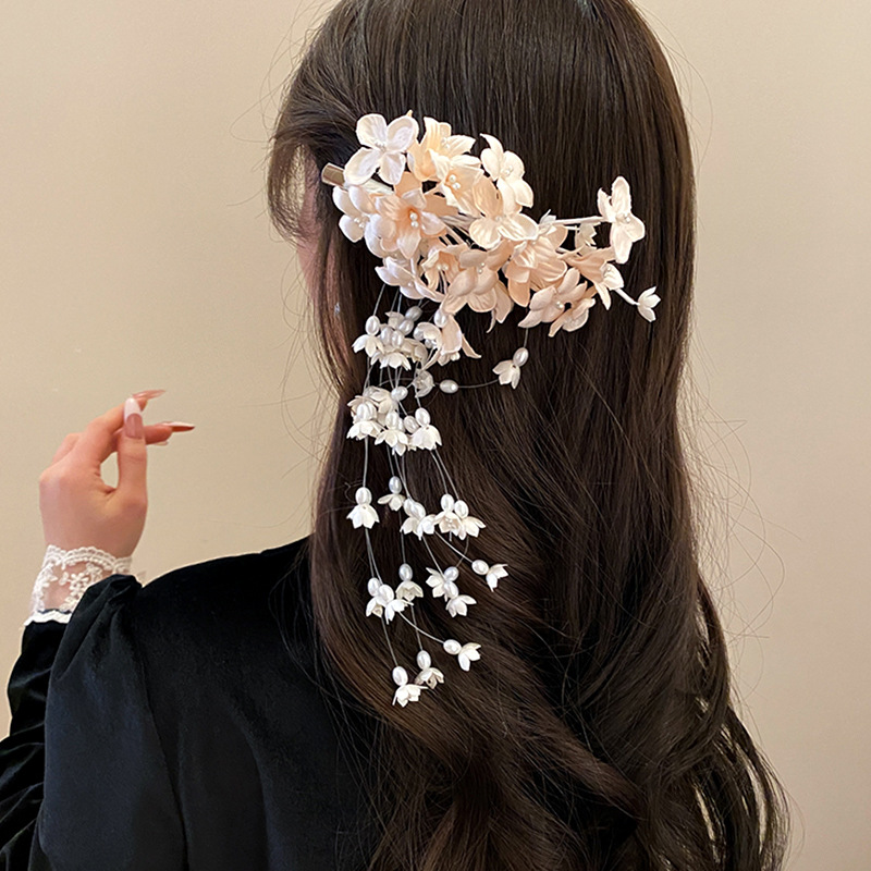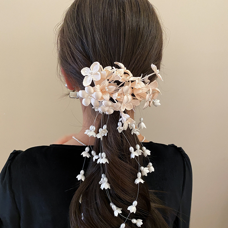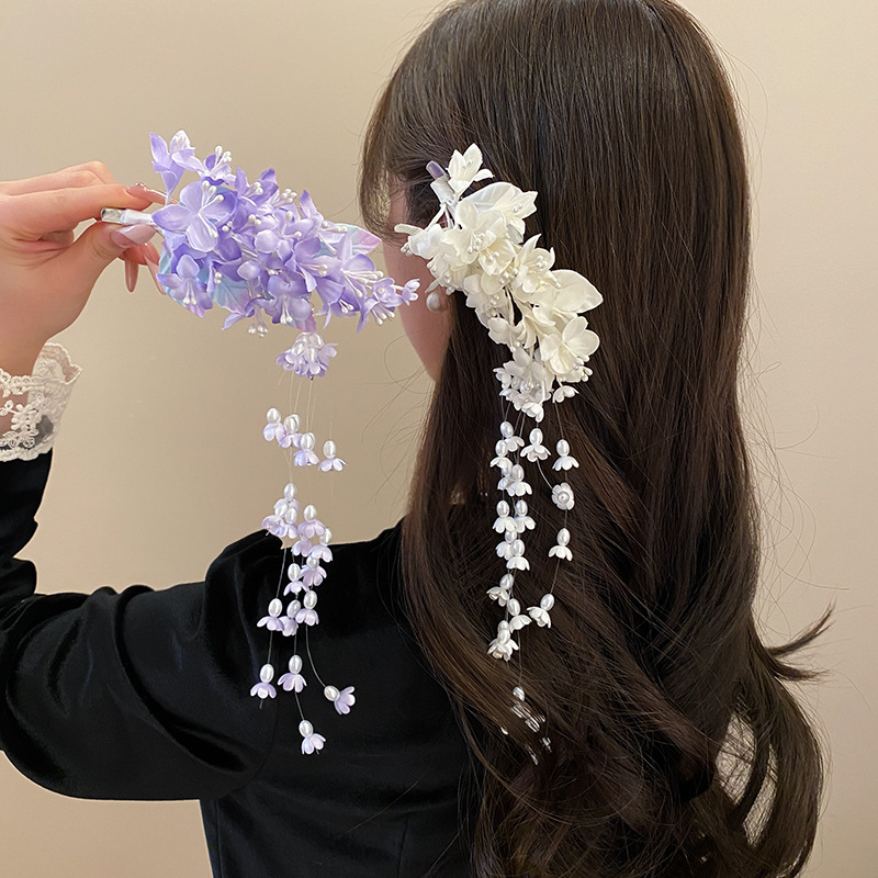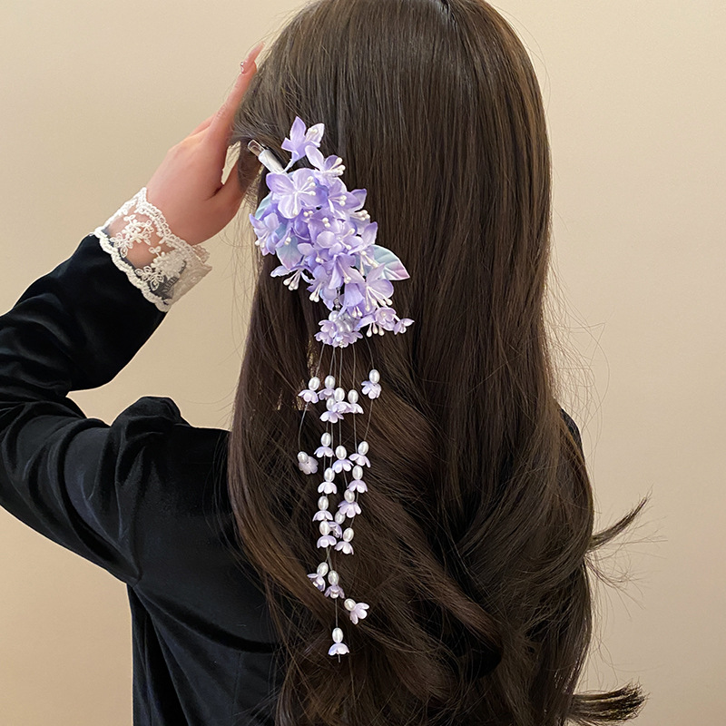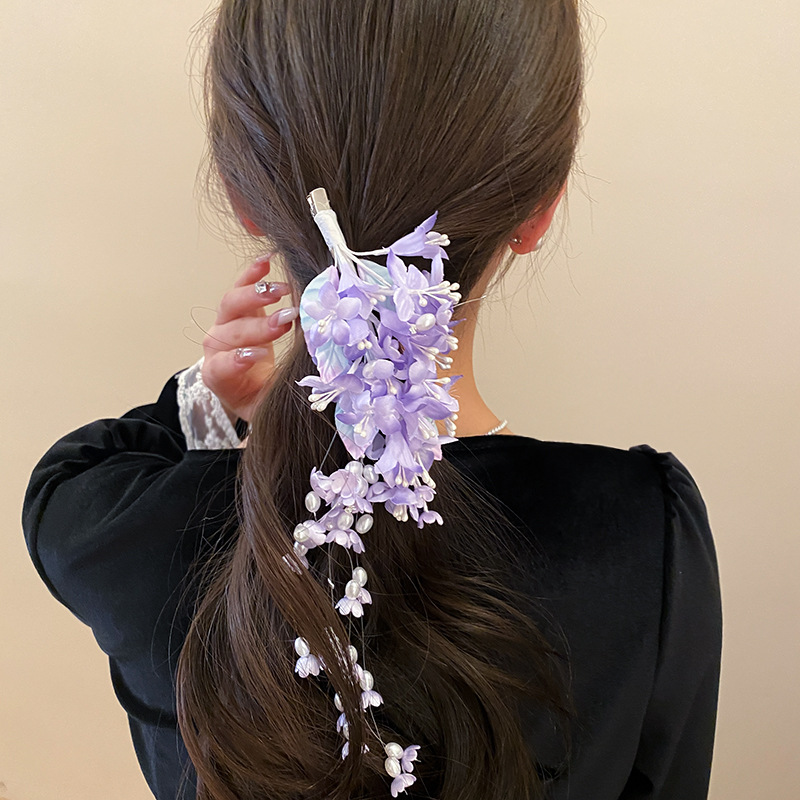 超仙鸢尾花朵花瓣珍珠流苏鸭嘴夹刘海侧边发夹拍照氛围高级感发饰