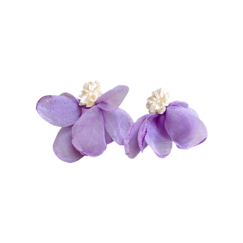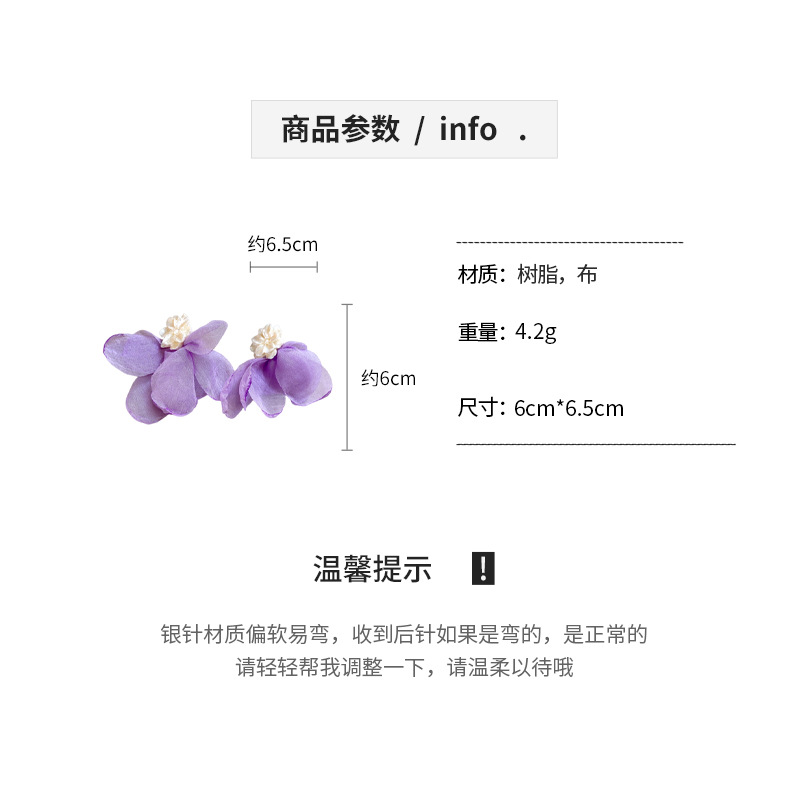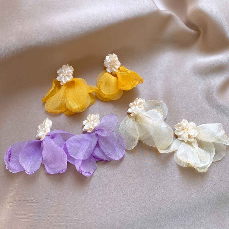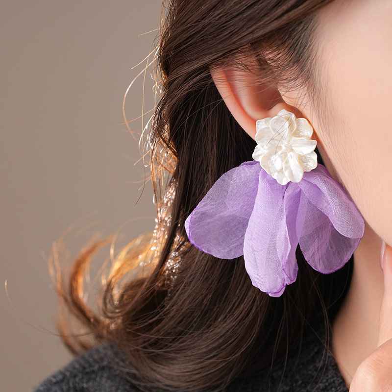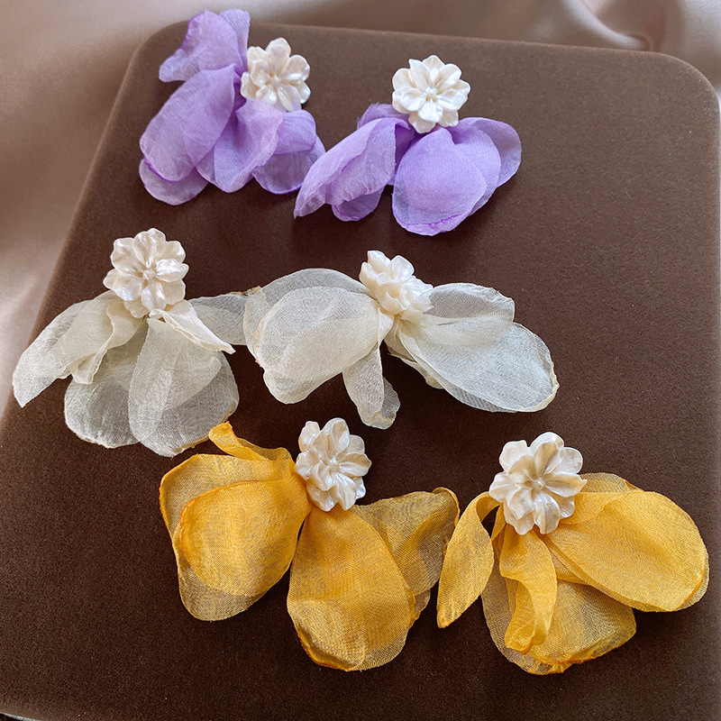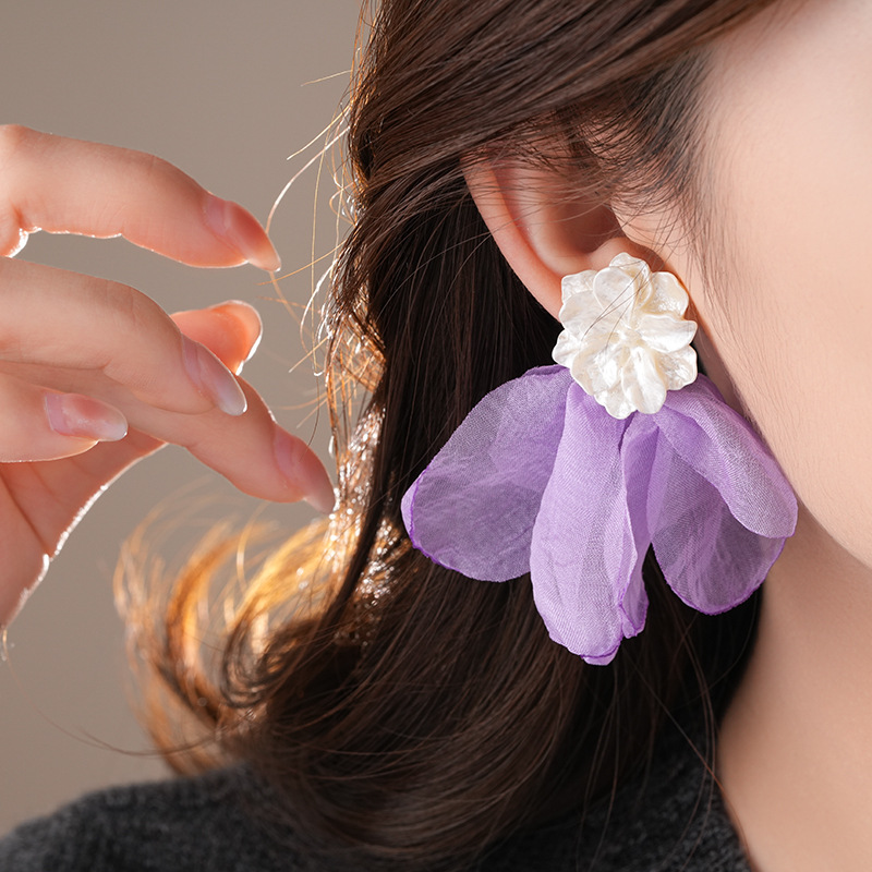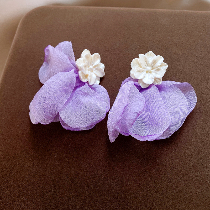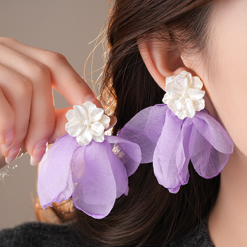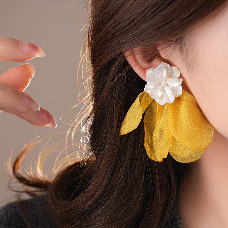 银针度假风网纱布艺花朵耳钉甜美精致耳环小清新高级感耳饰批发女