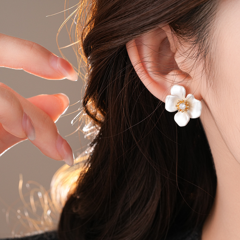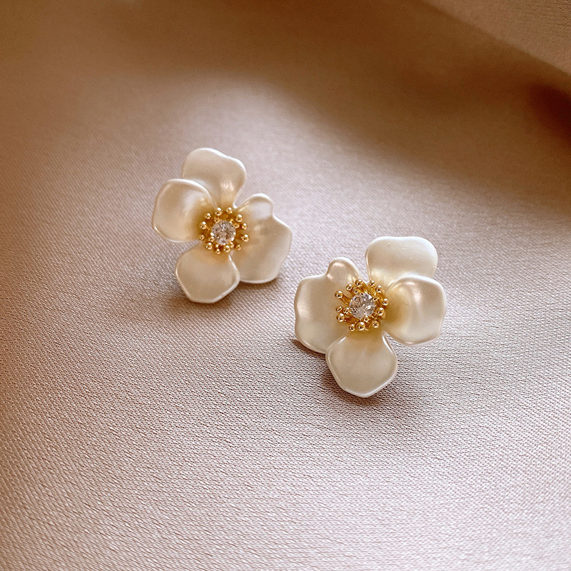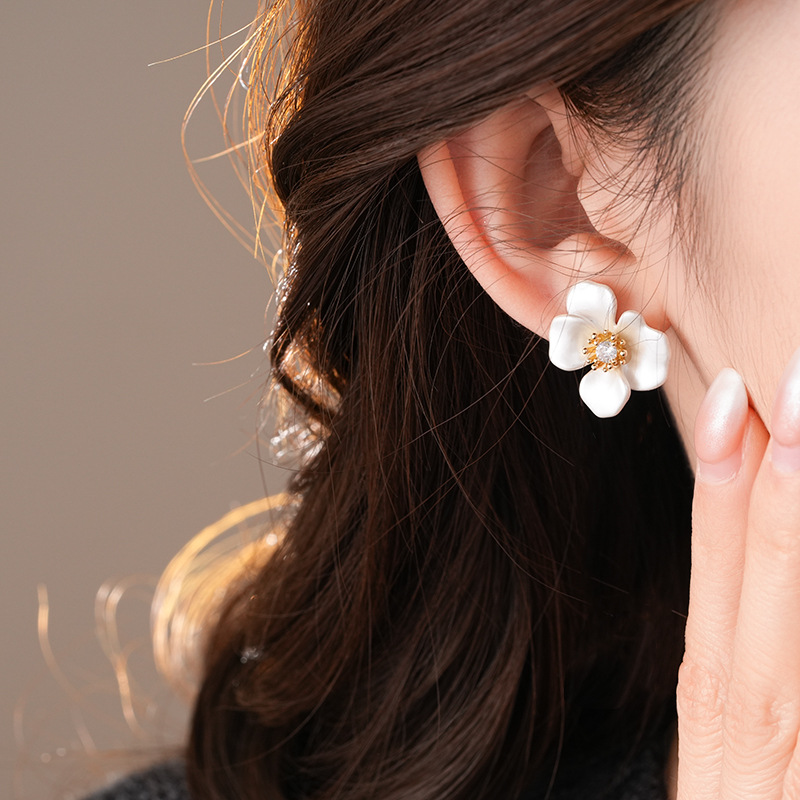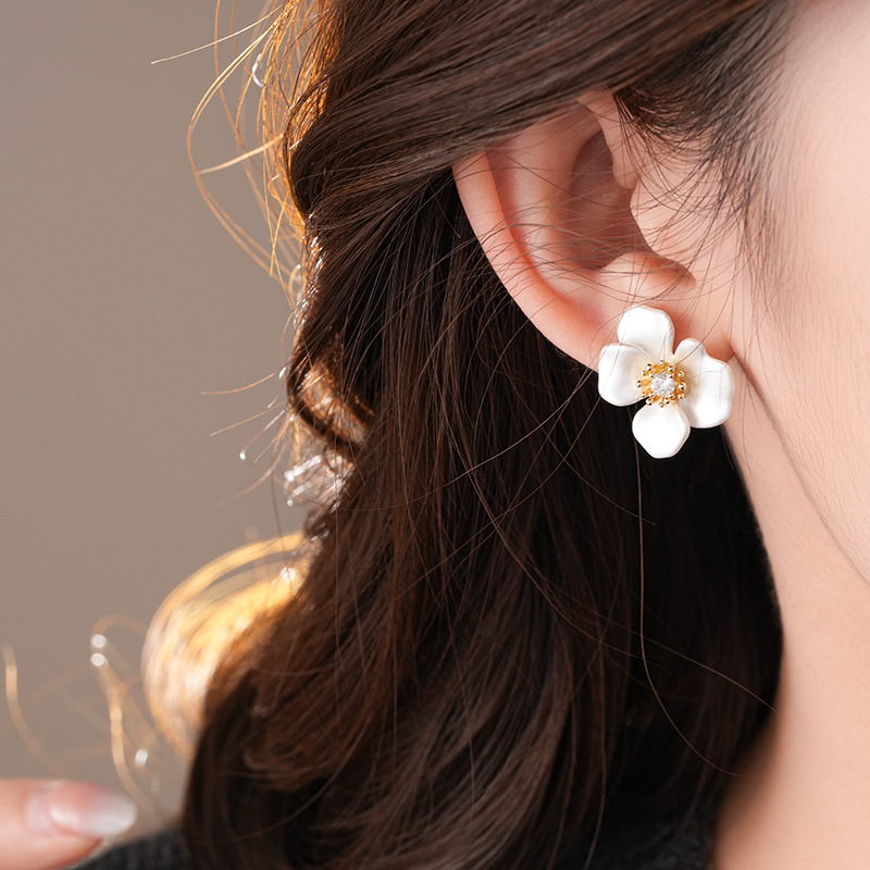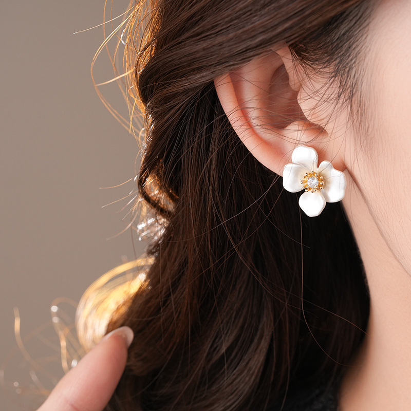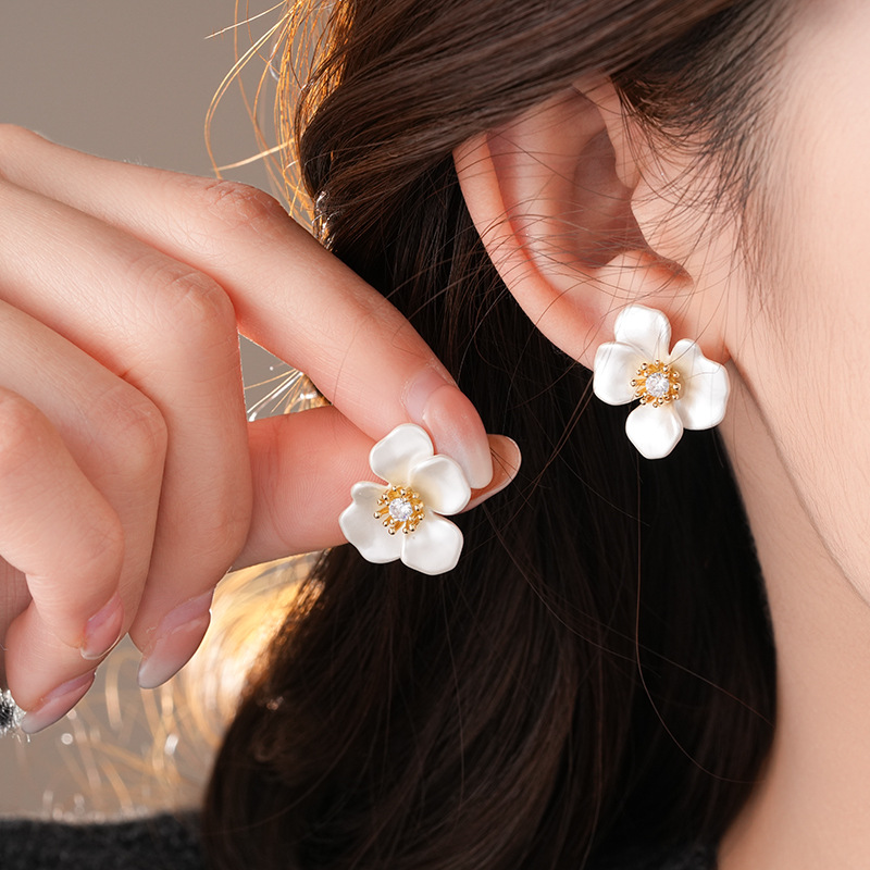 真金电镀银针锆石花朵耳钉法式优雅精致气质耳环轻奢高级感耳饰女
