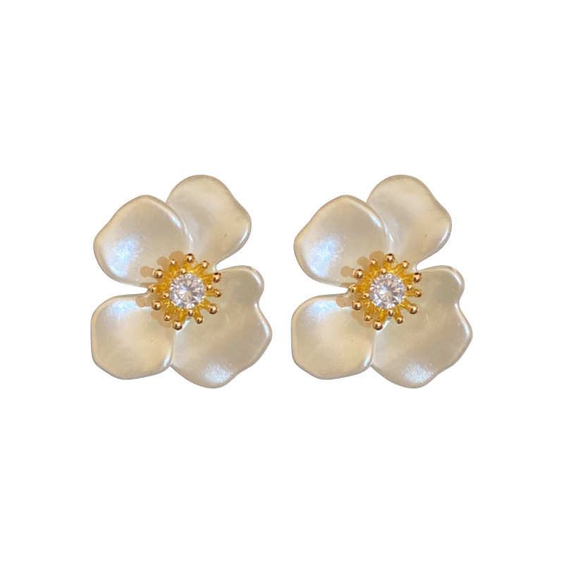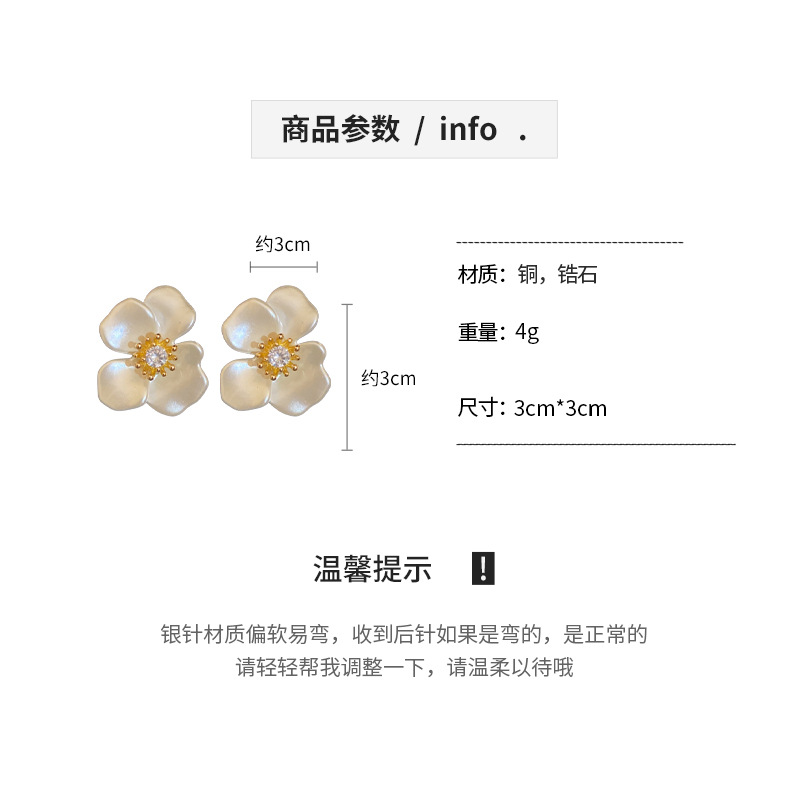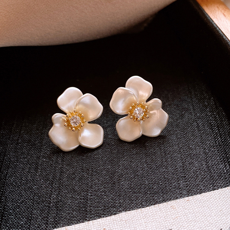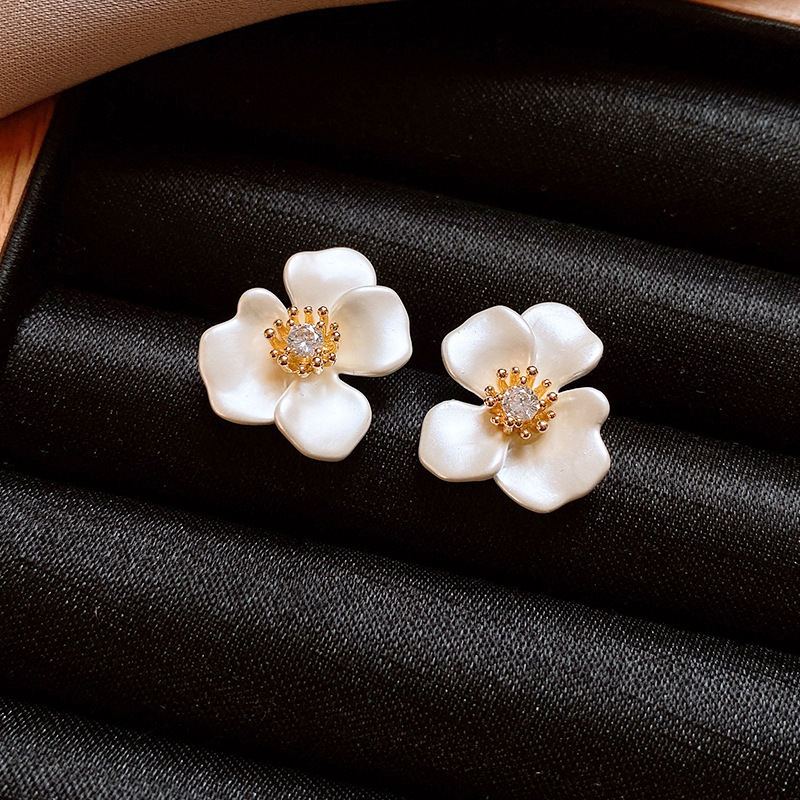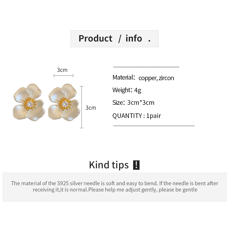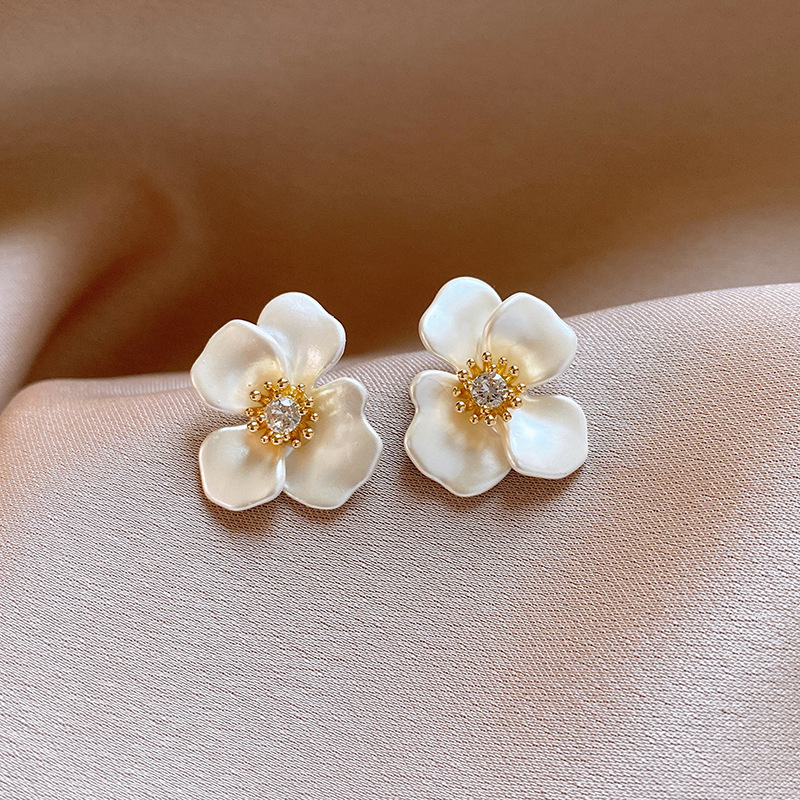 真金电镀银针锆石花朵耳钉法式优雅精致气质耳环轻奢高级感耳饰女