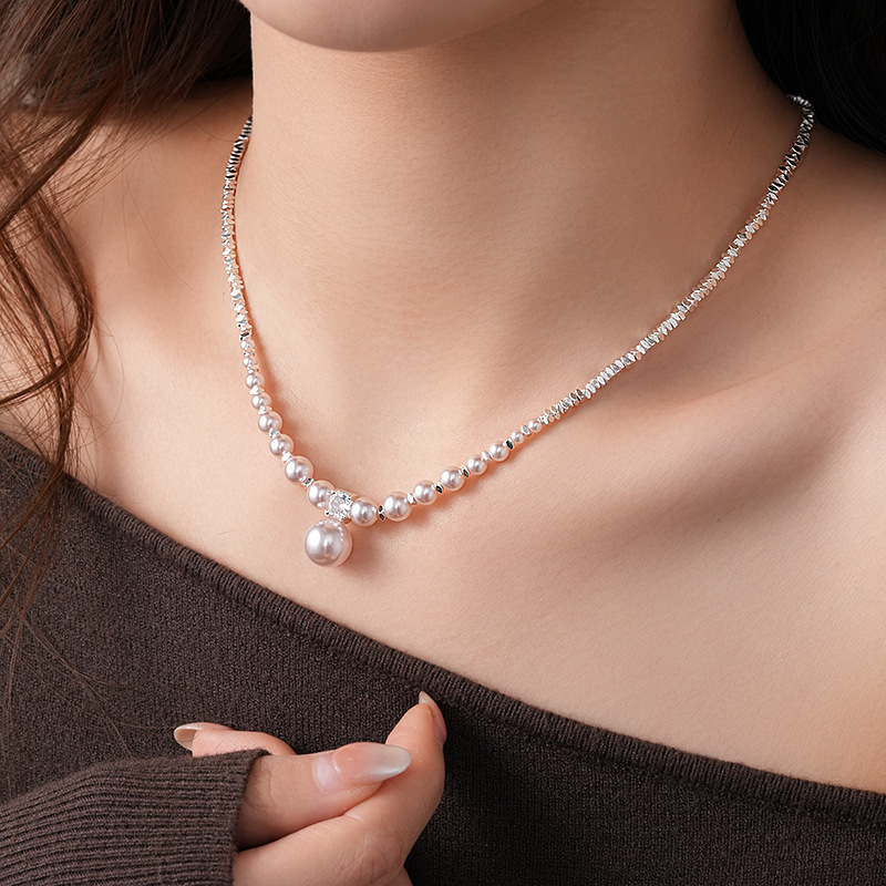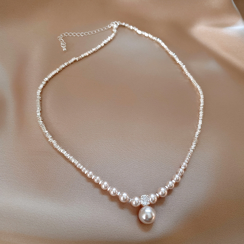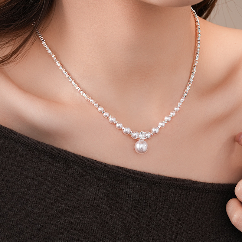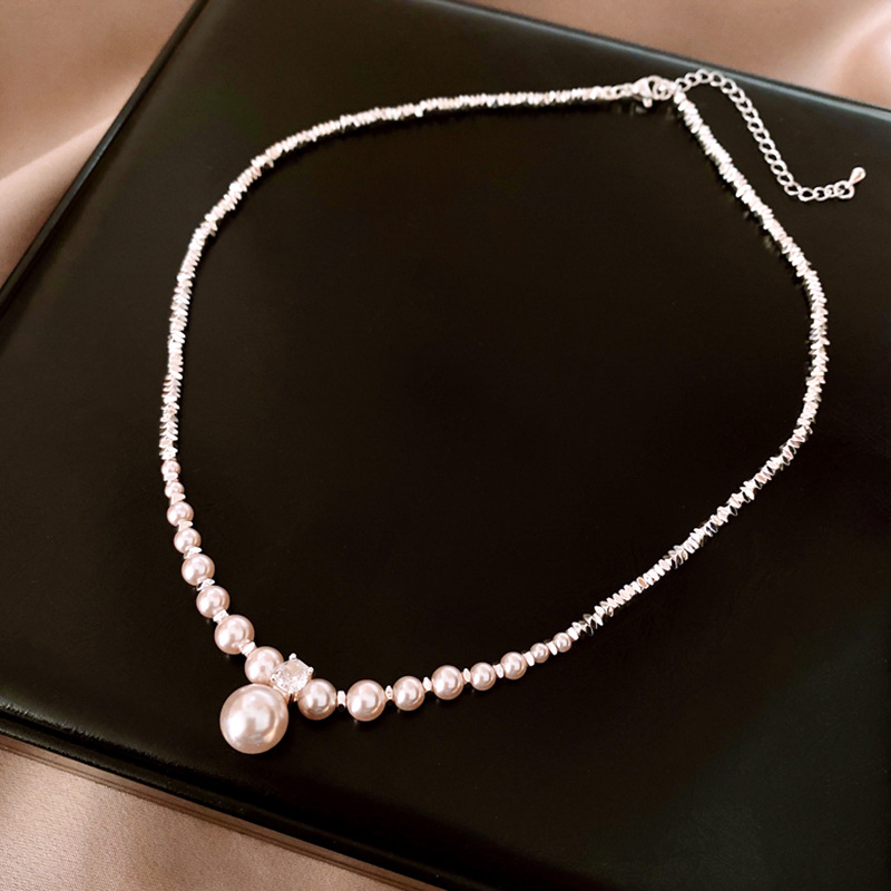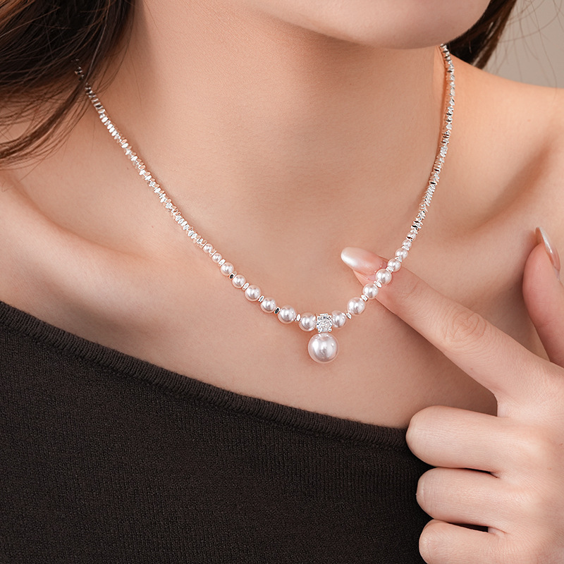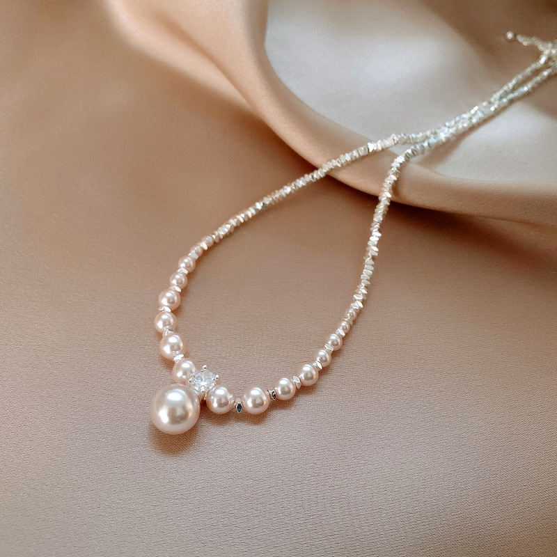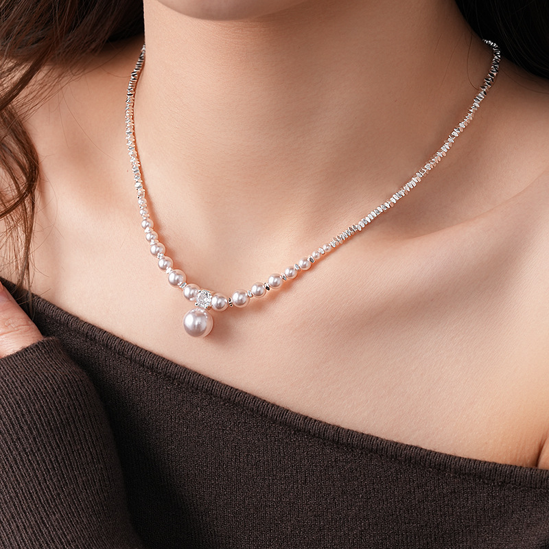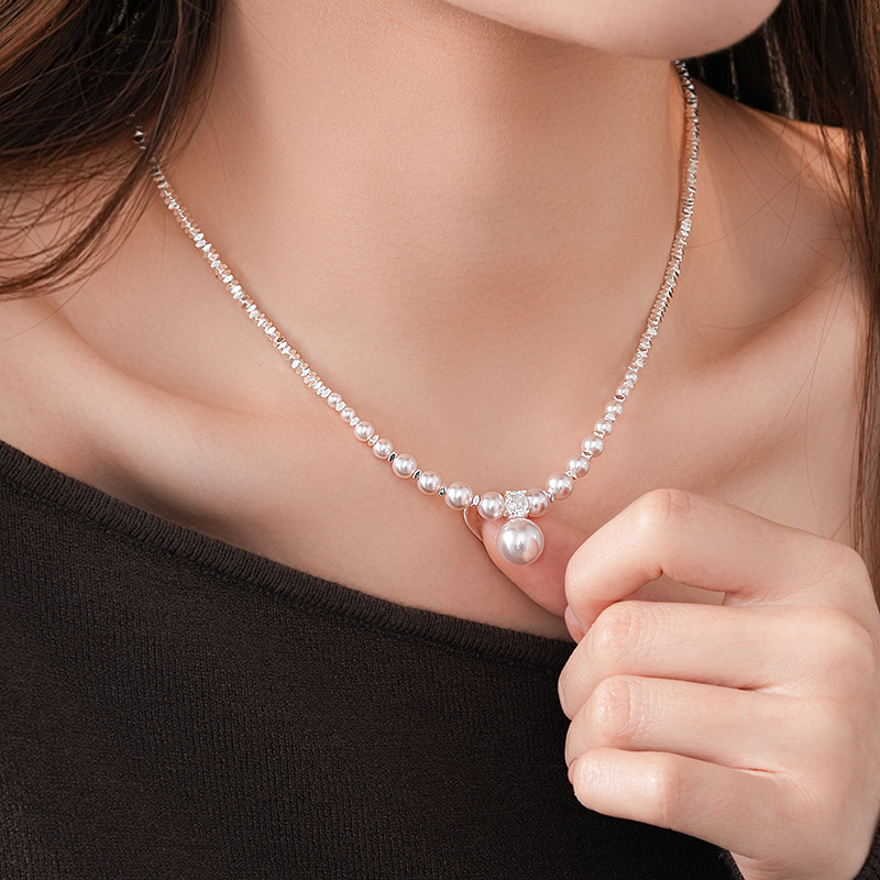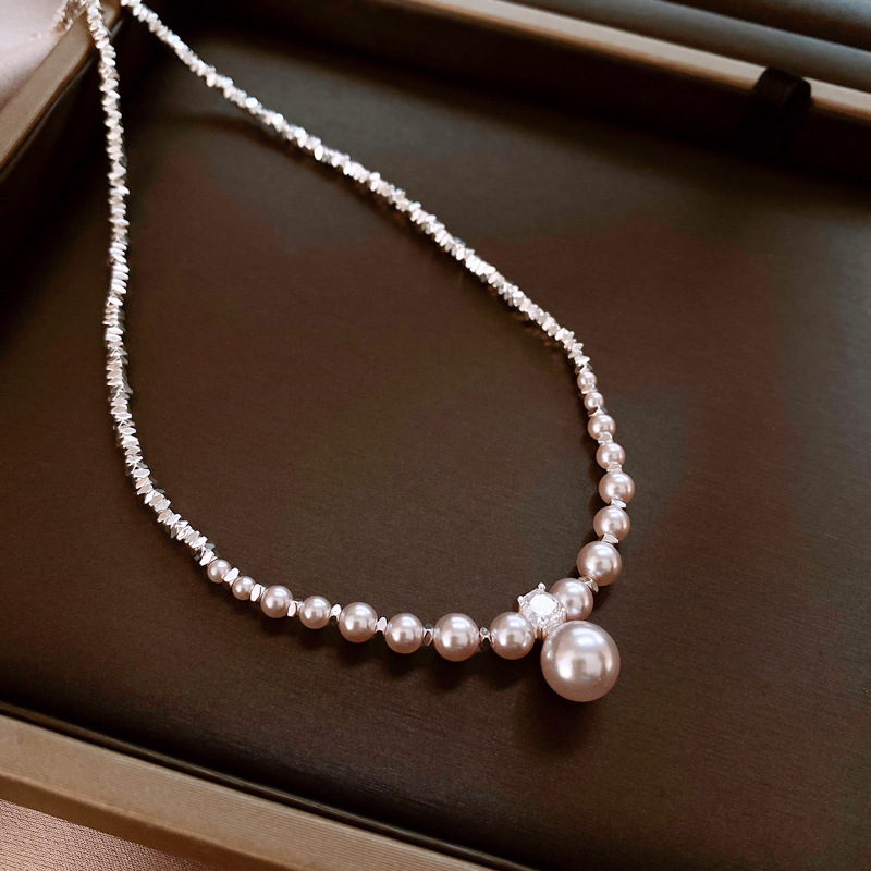 法式复古锆石碎银珍珠项链气质小众高级感锁骨链轻奢百搭项饰女