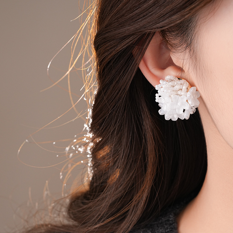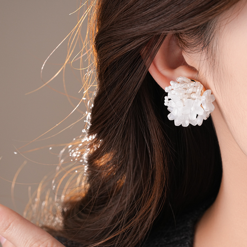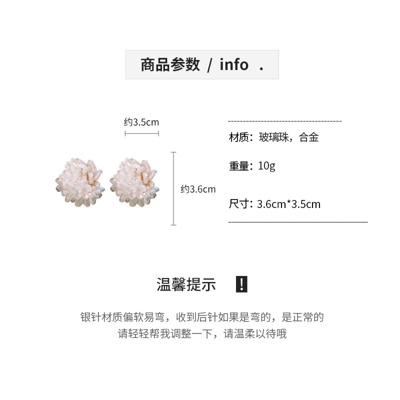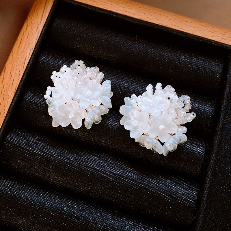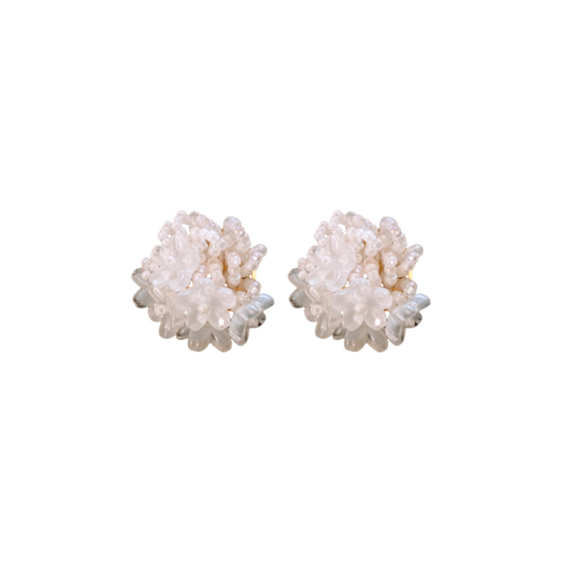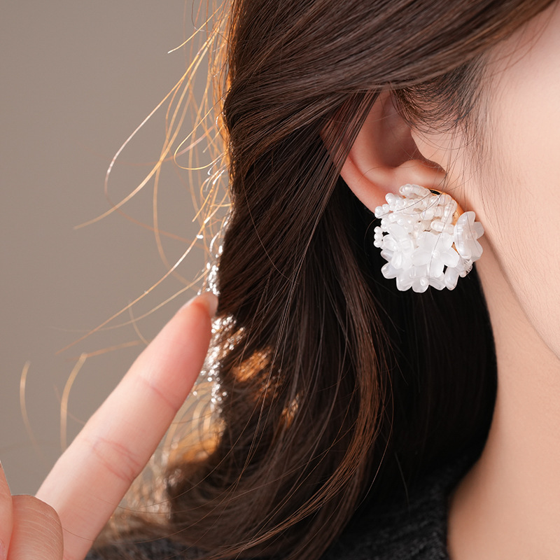 银针小清新米珠编织花朵耳钉夸张个性小众耳环轻奢高级感耳饰批发
