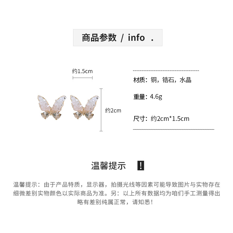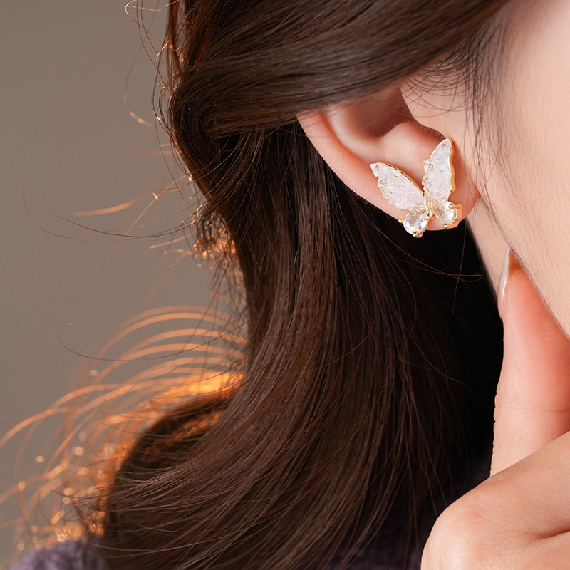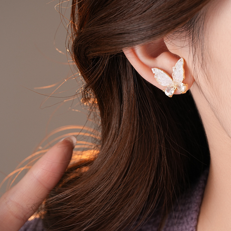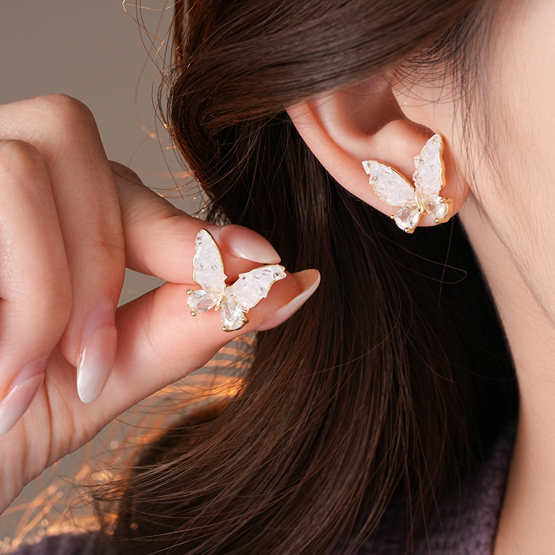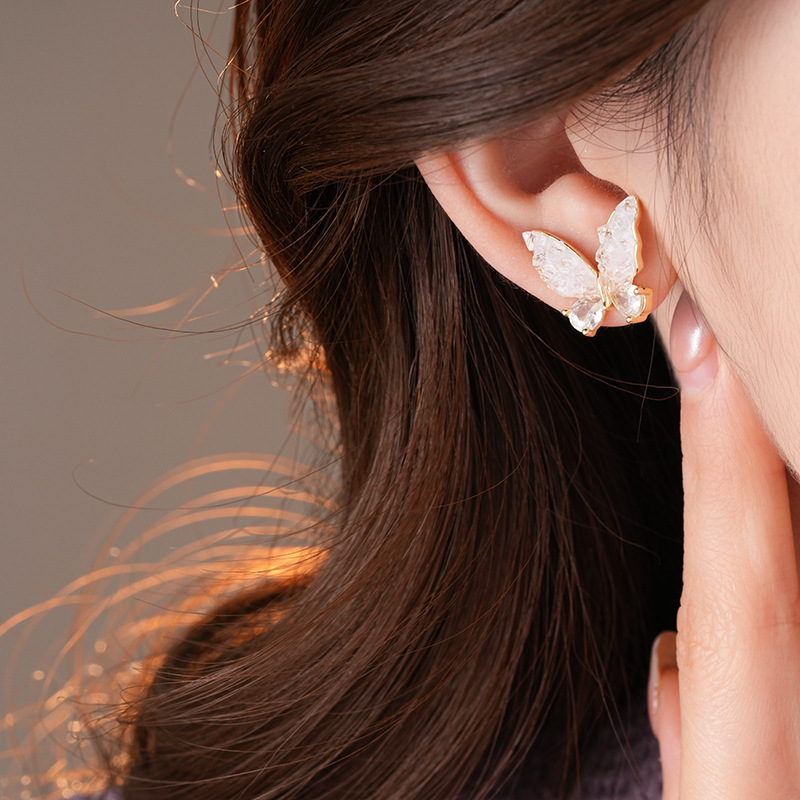 14k 真金电镀锆石水晶蝴蝶耳钉女个性气质耳环耳饰小众高级感饰品