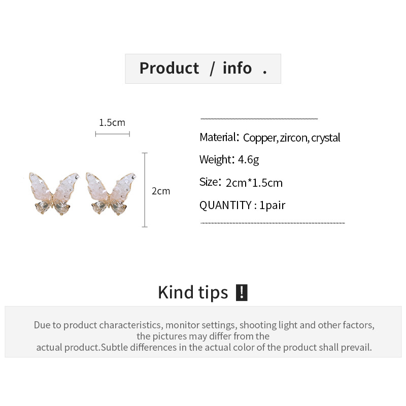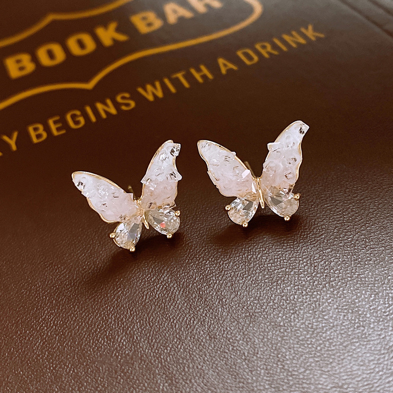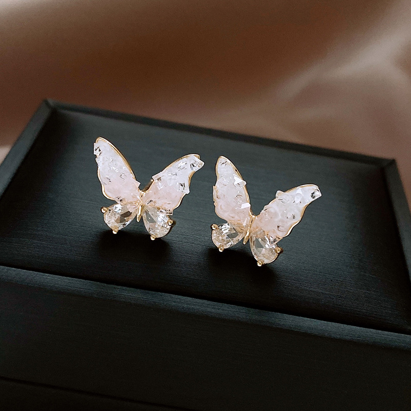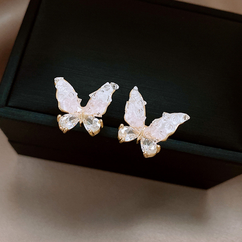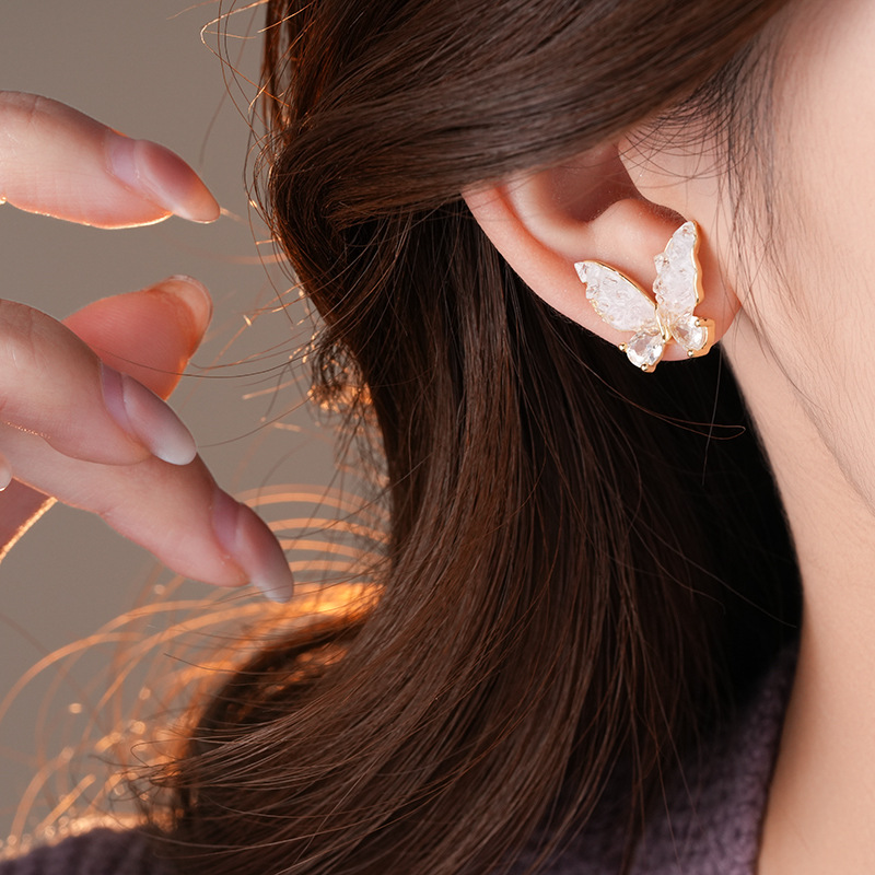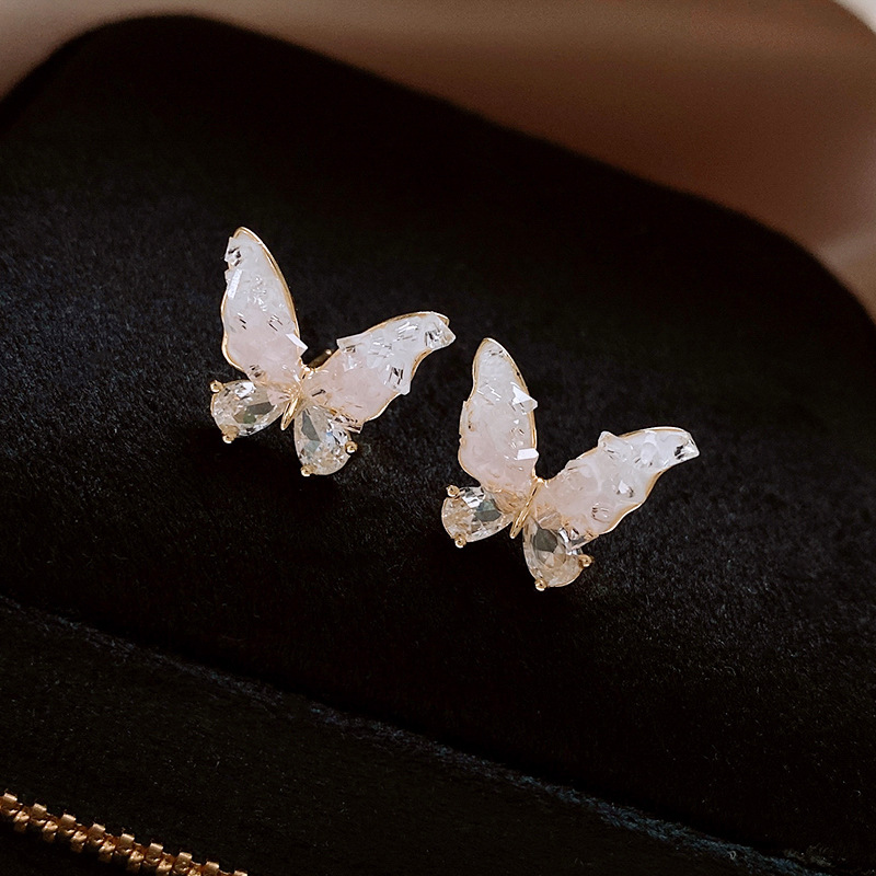 14k 真金电镀锆石水晶蝴蝶耳钉女个性气质耳环耳饰小众高级感饰品