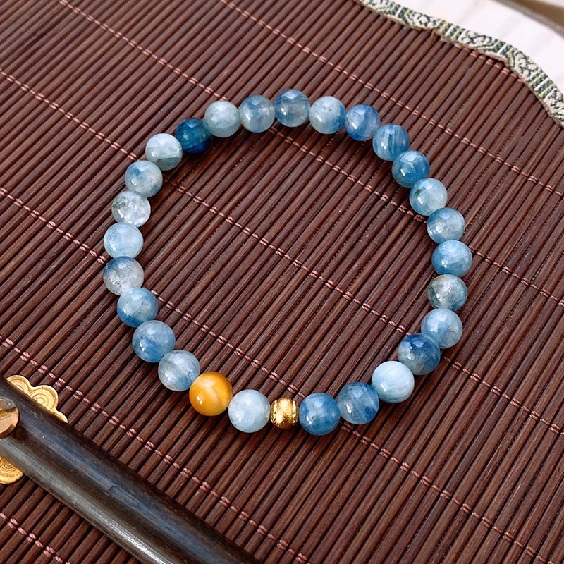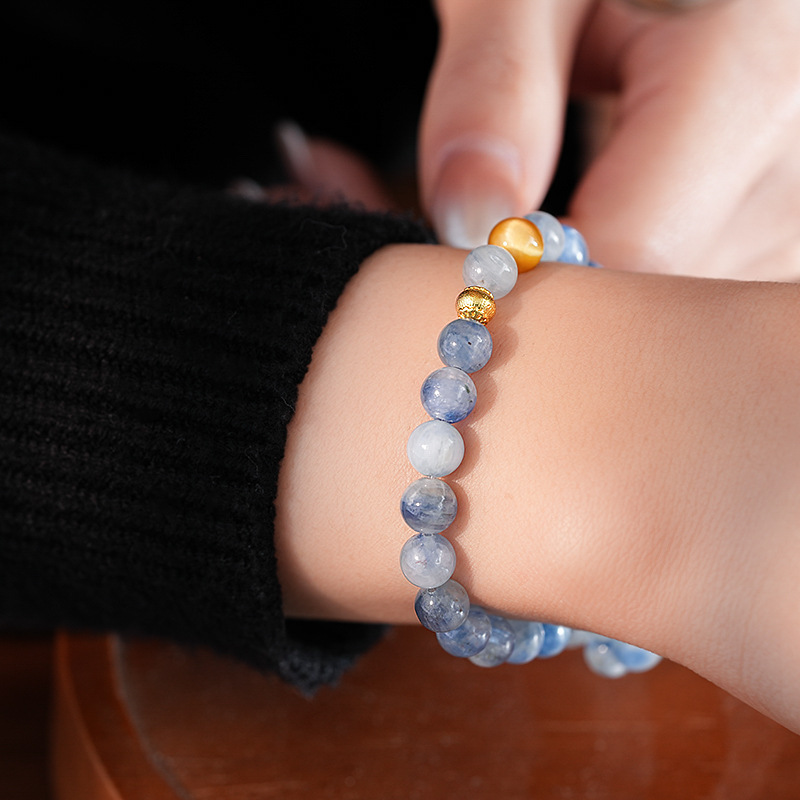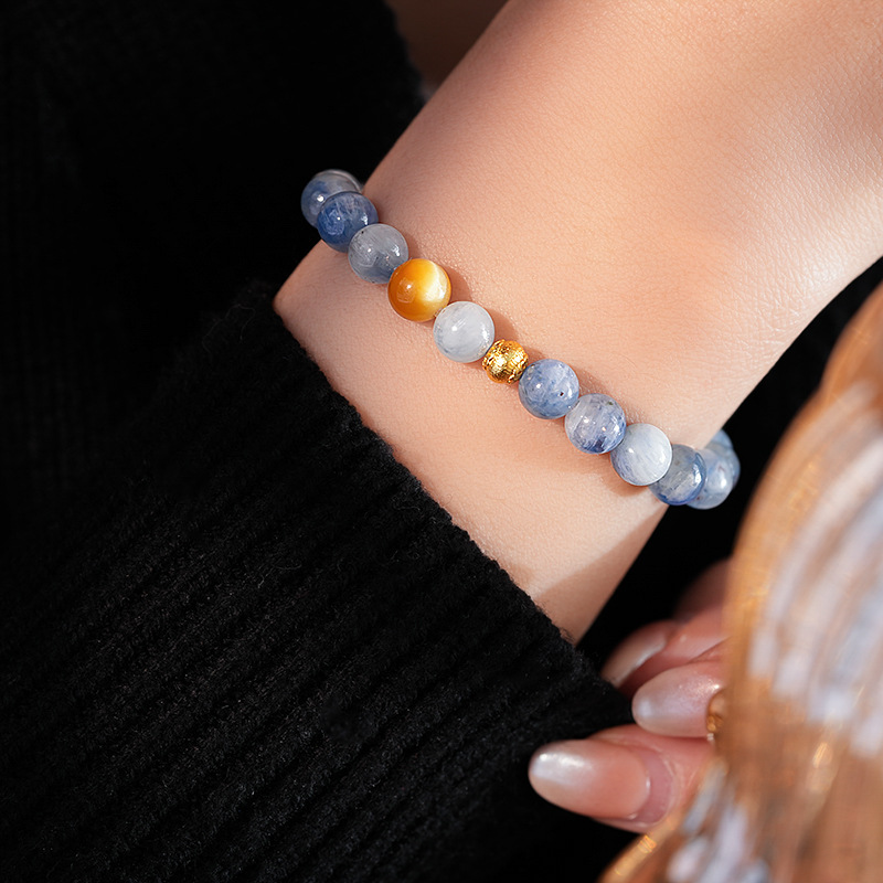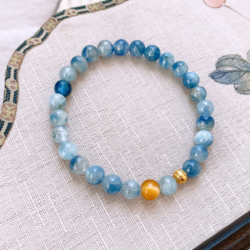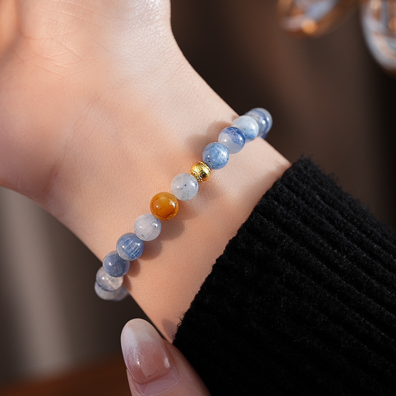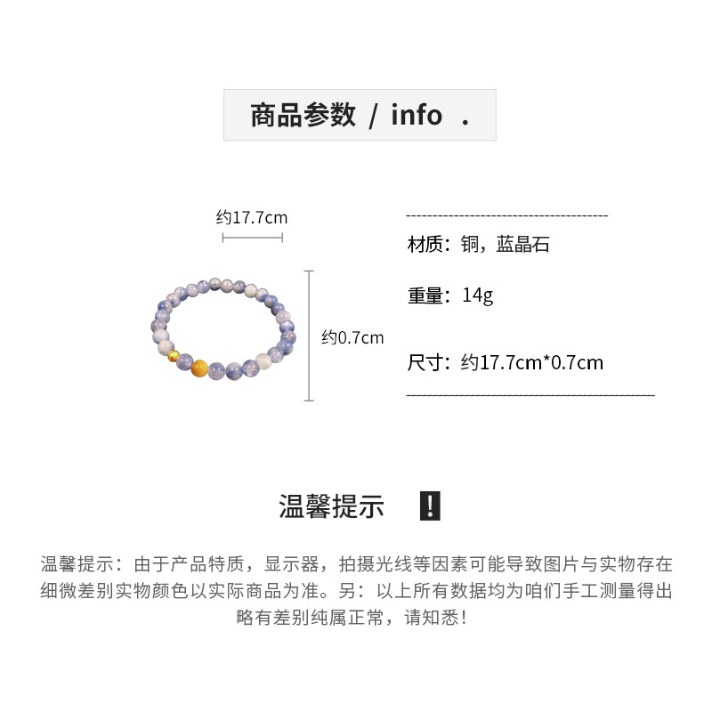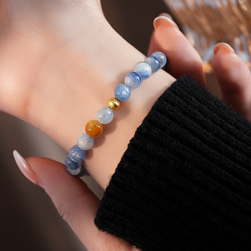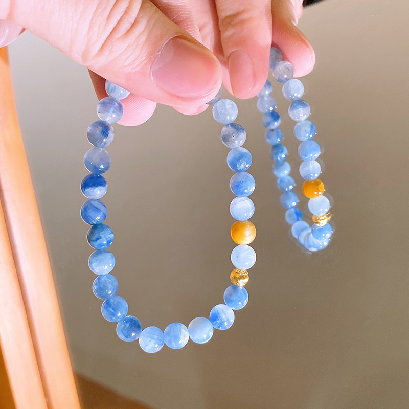 天然蓝晶石圆球灯笼水晶手链高级感手串国潮复古轻奢气质手饰批发