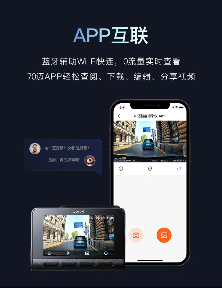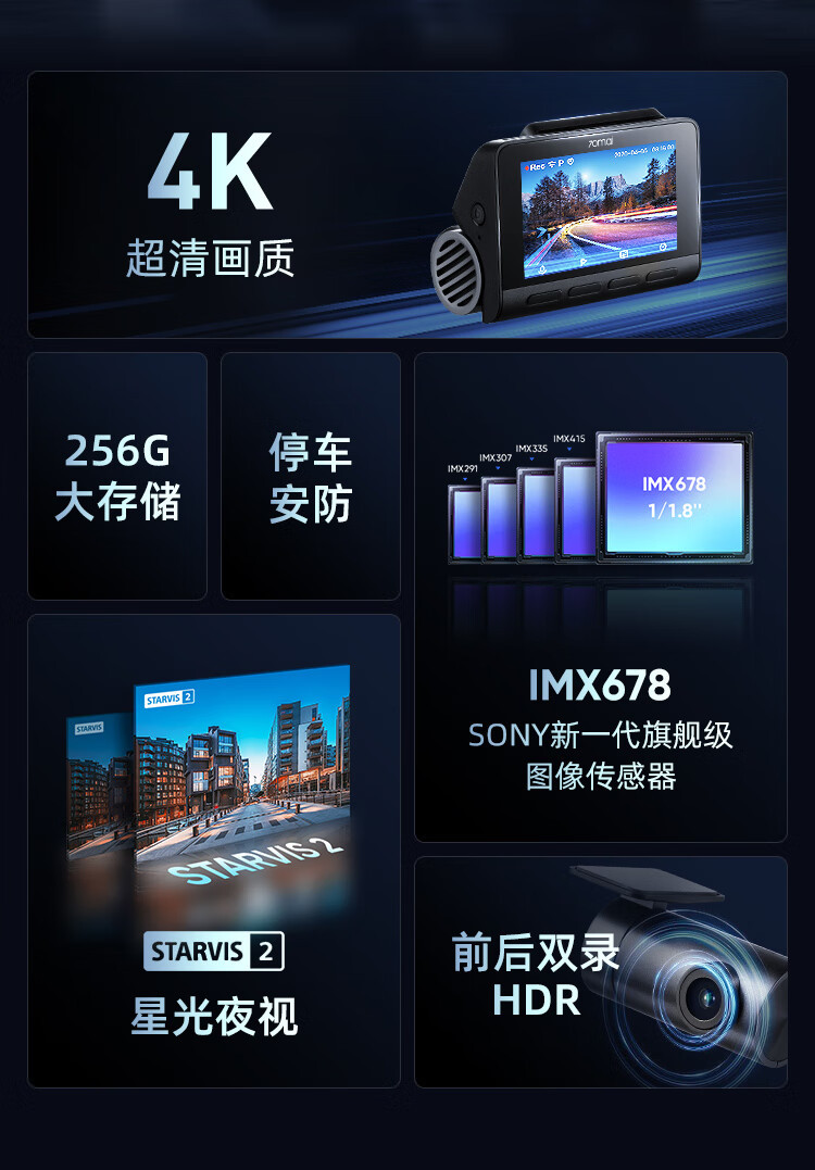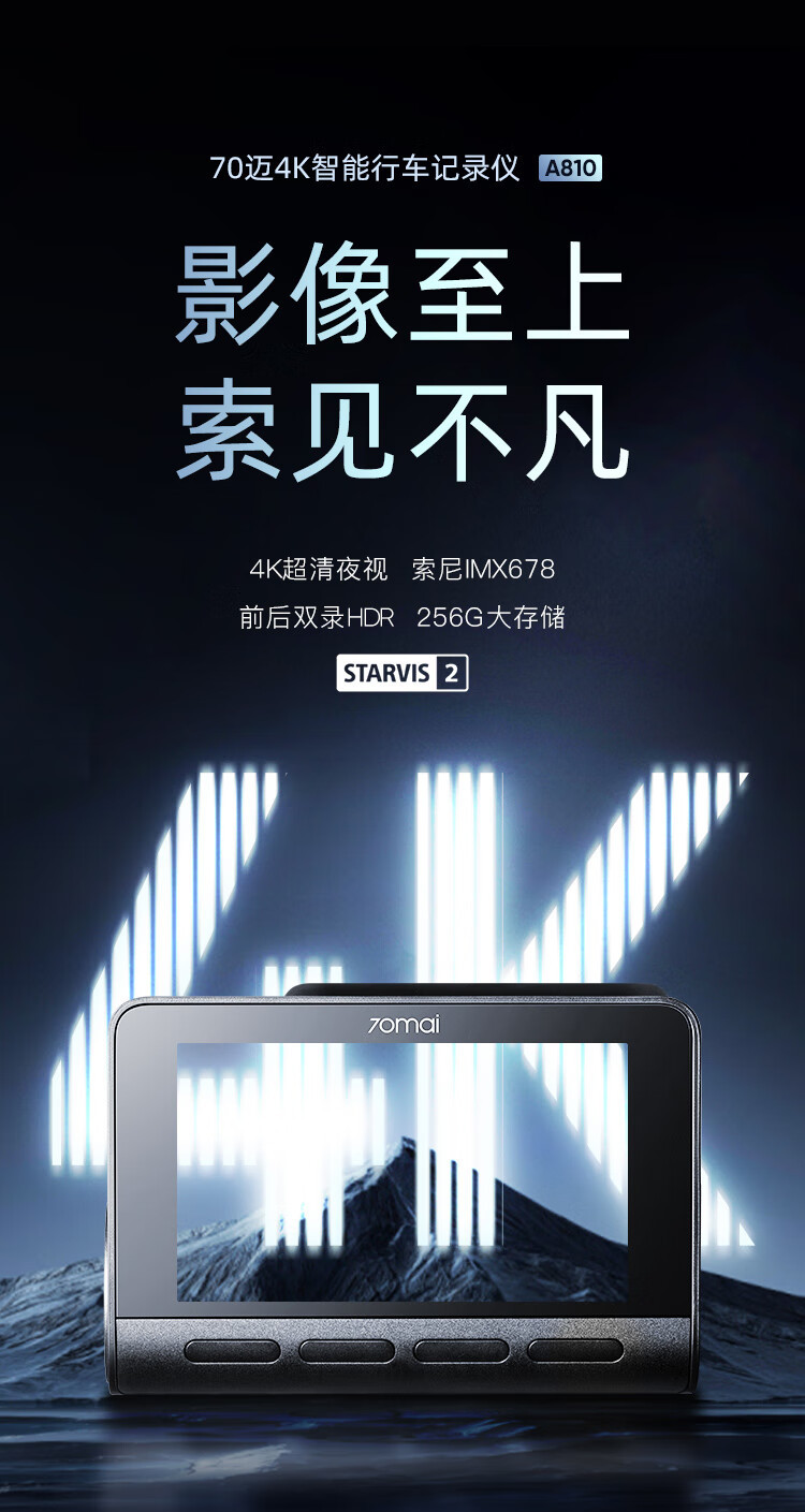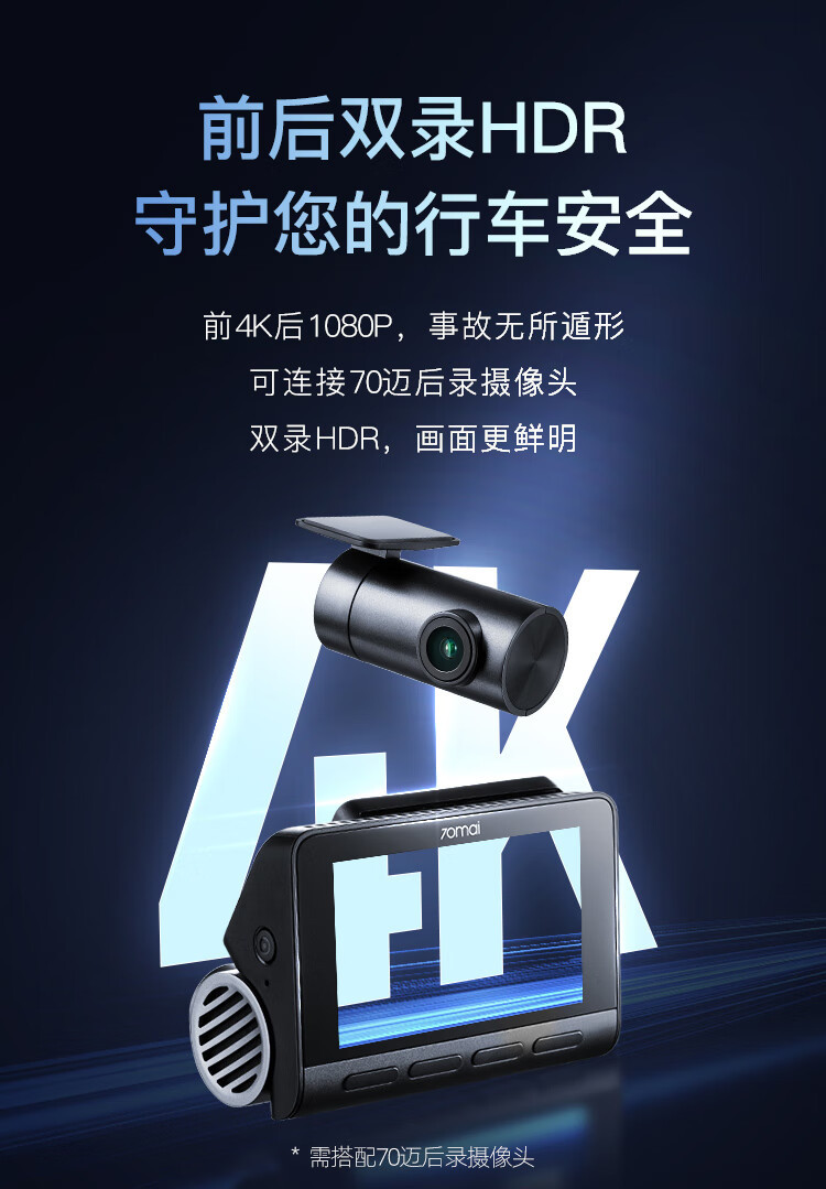 70mai超高清4K夜视双摄行车记录仪70迈行车记录仪DVR前后双录A810