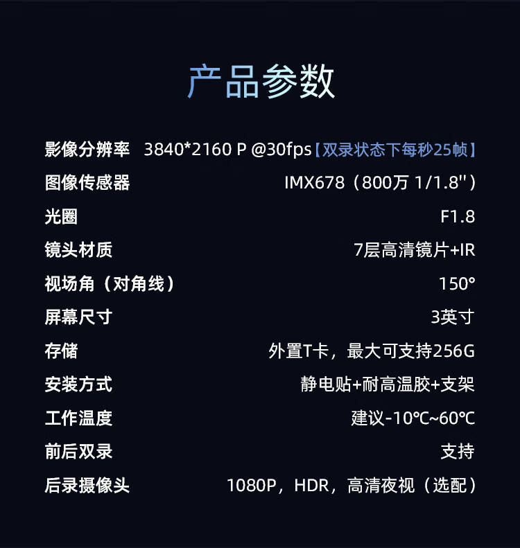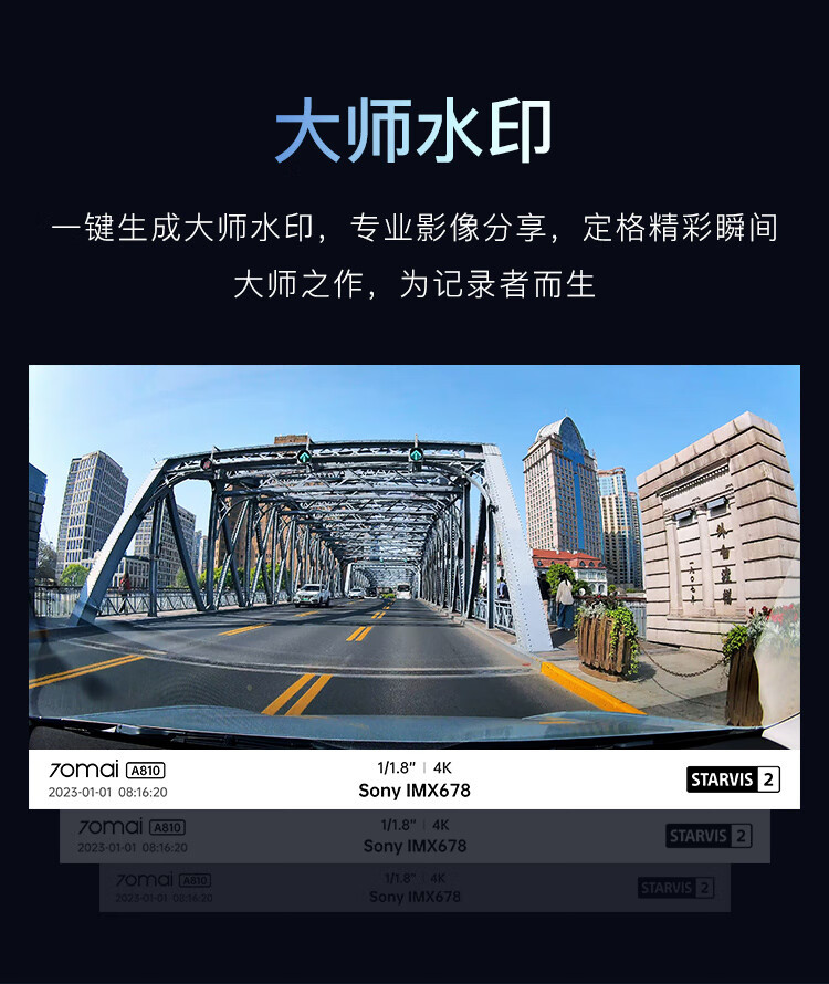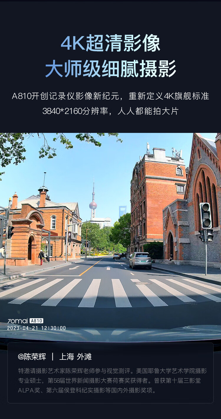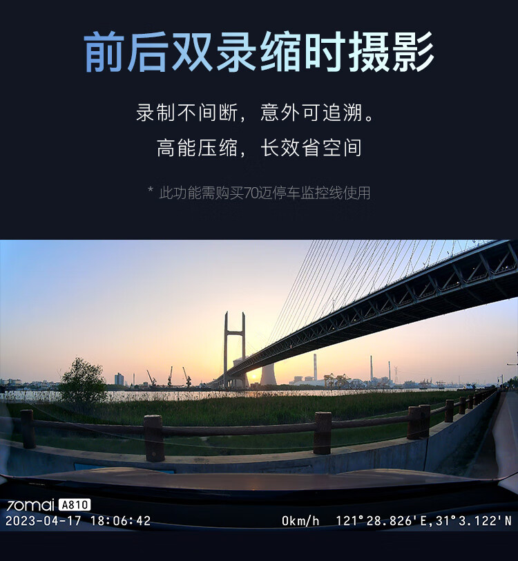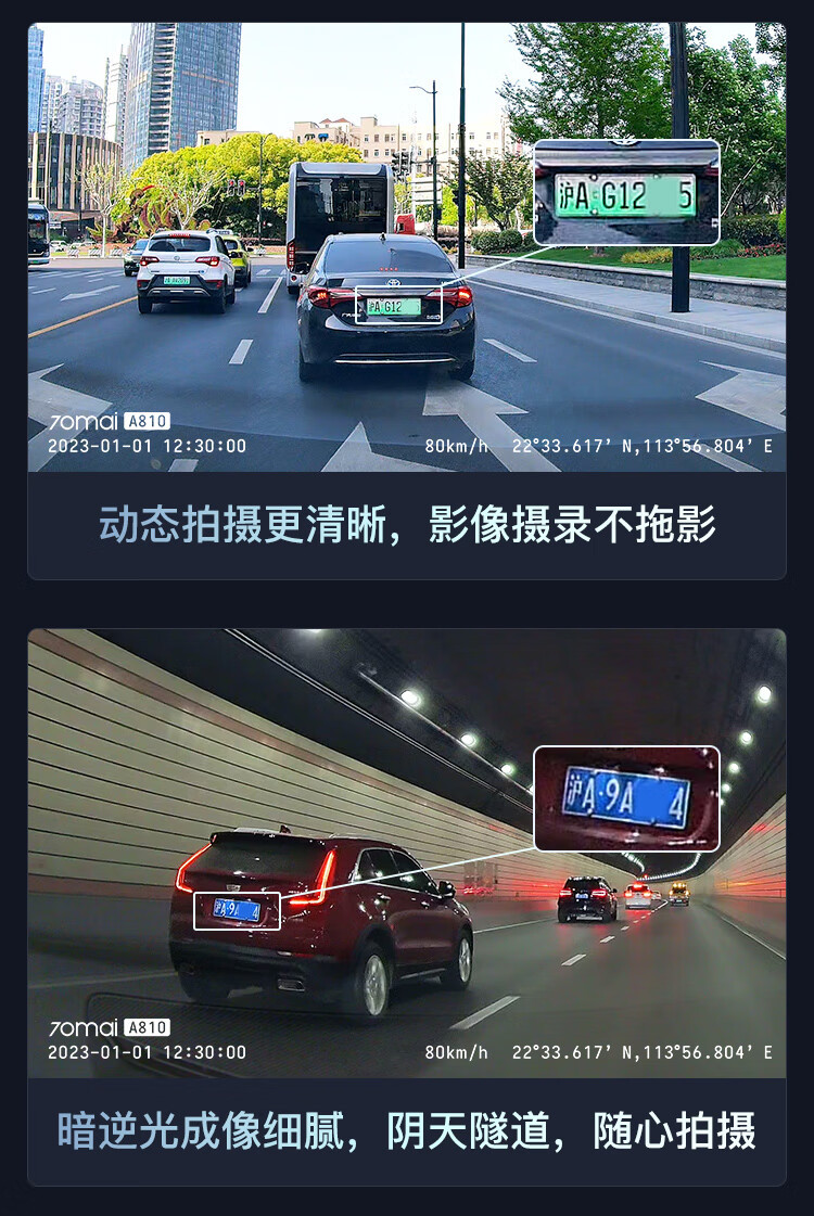 70mai超高清4K夜视双摄行车记录仪70迈行车记录仪DVR前后双录A810