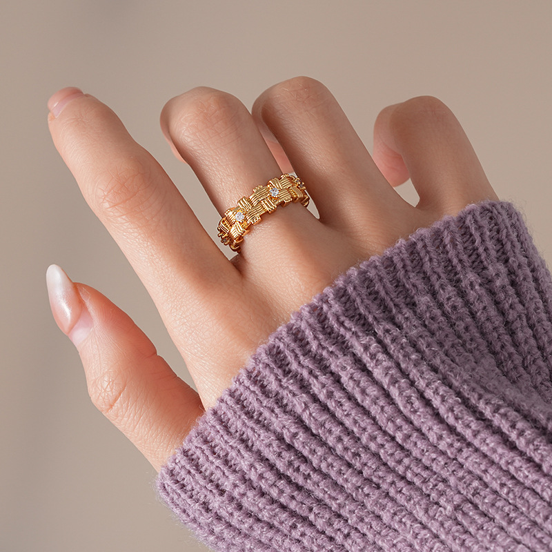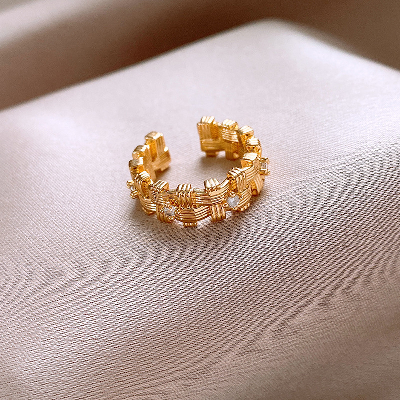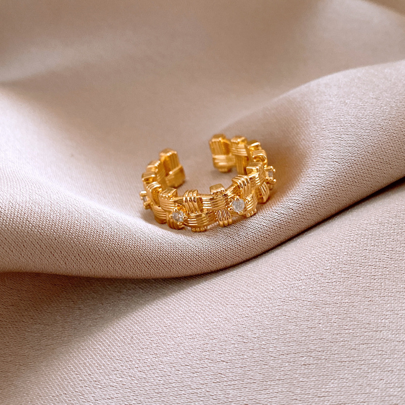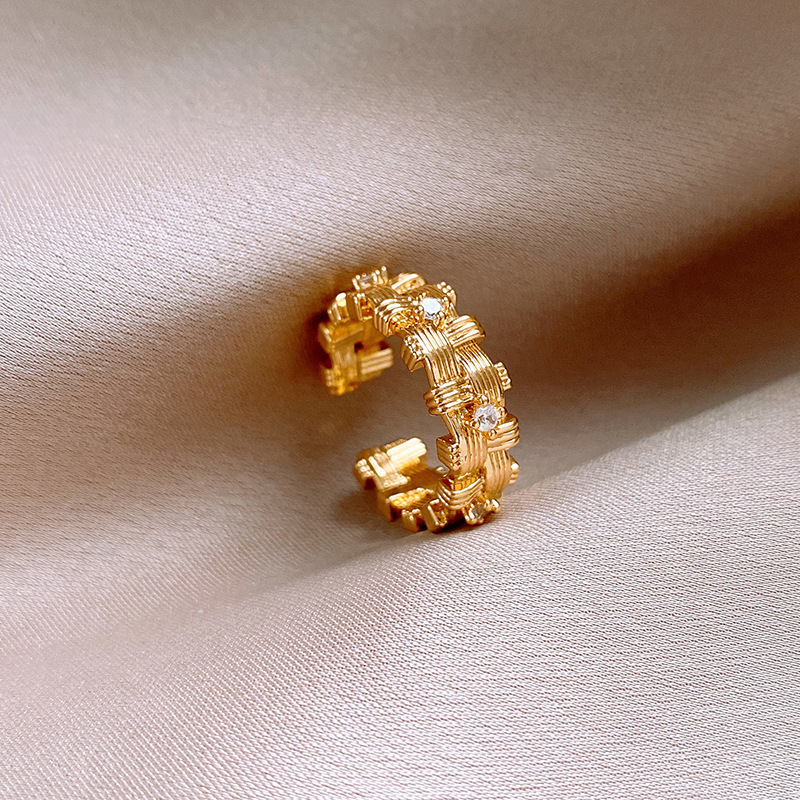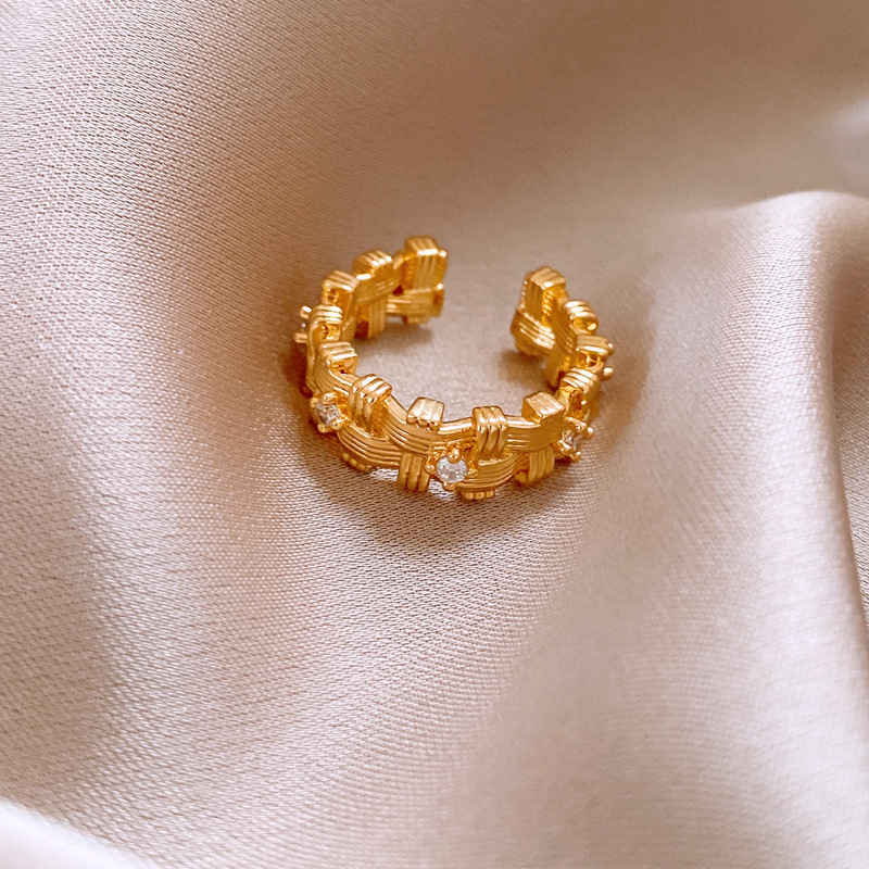 18k 真金电镀锆石不规则编织开口戒指新款高级感指环小众食指戒女