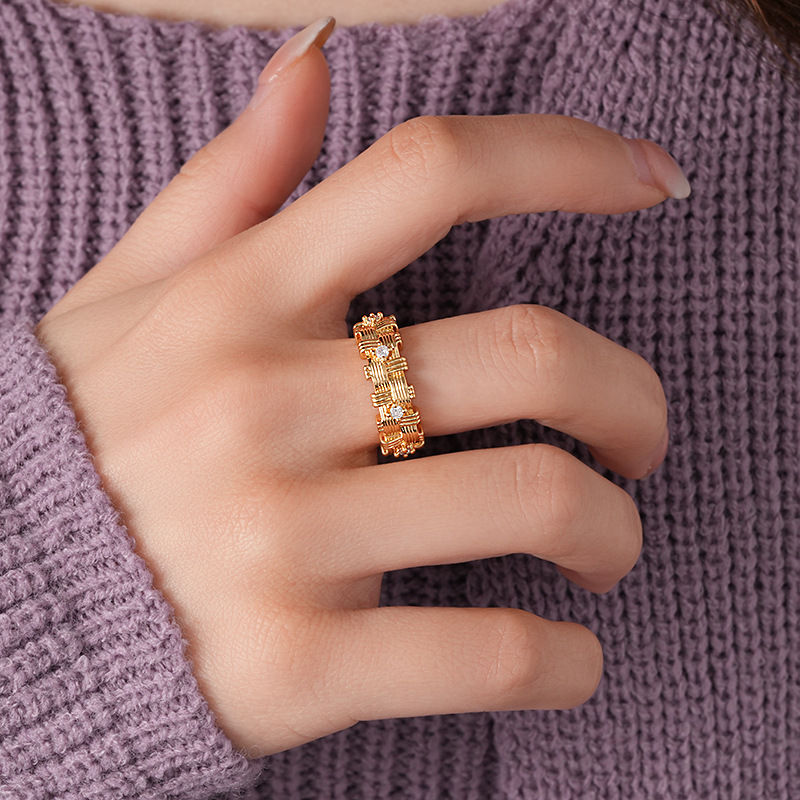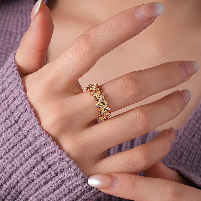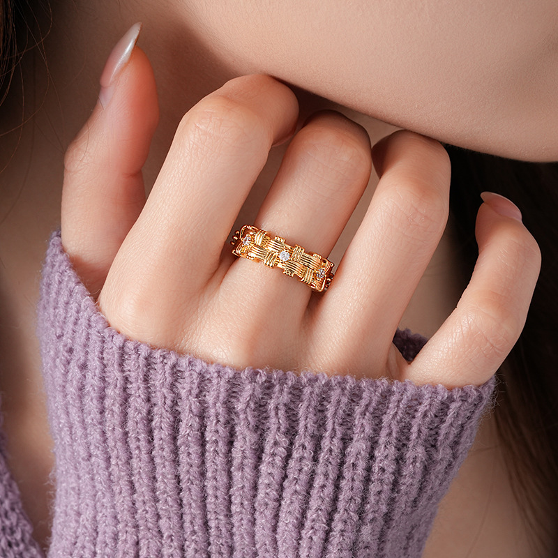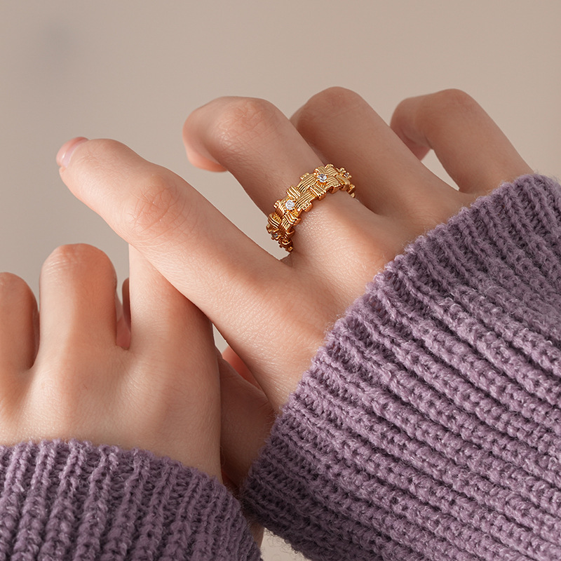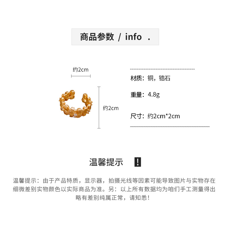 18k 真金电镀锆石不规则编织开口戒指新款高级感指环小众食指戒女