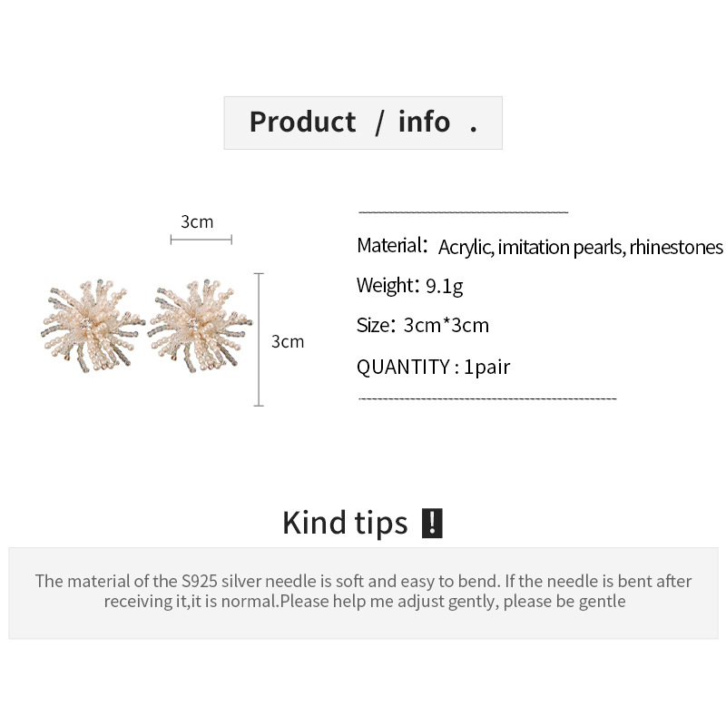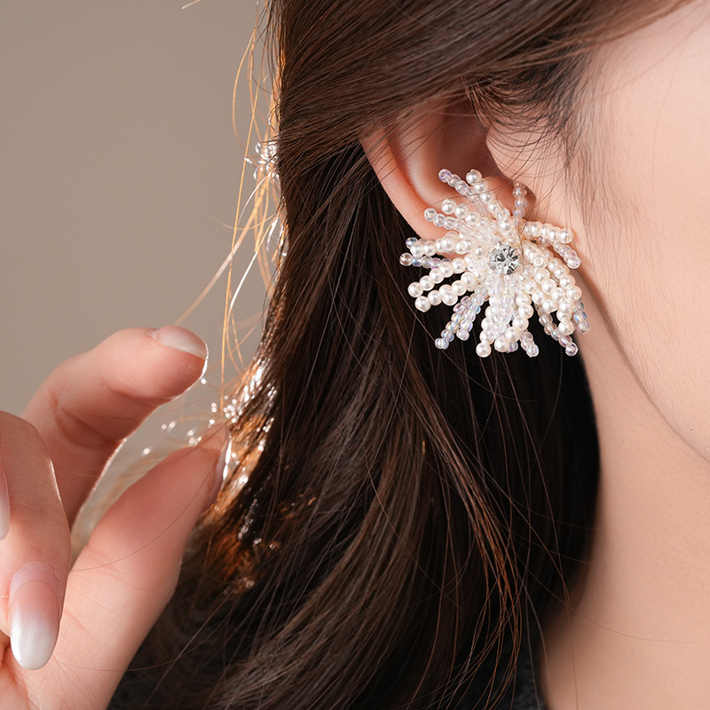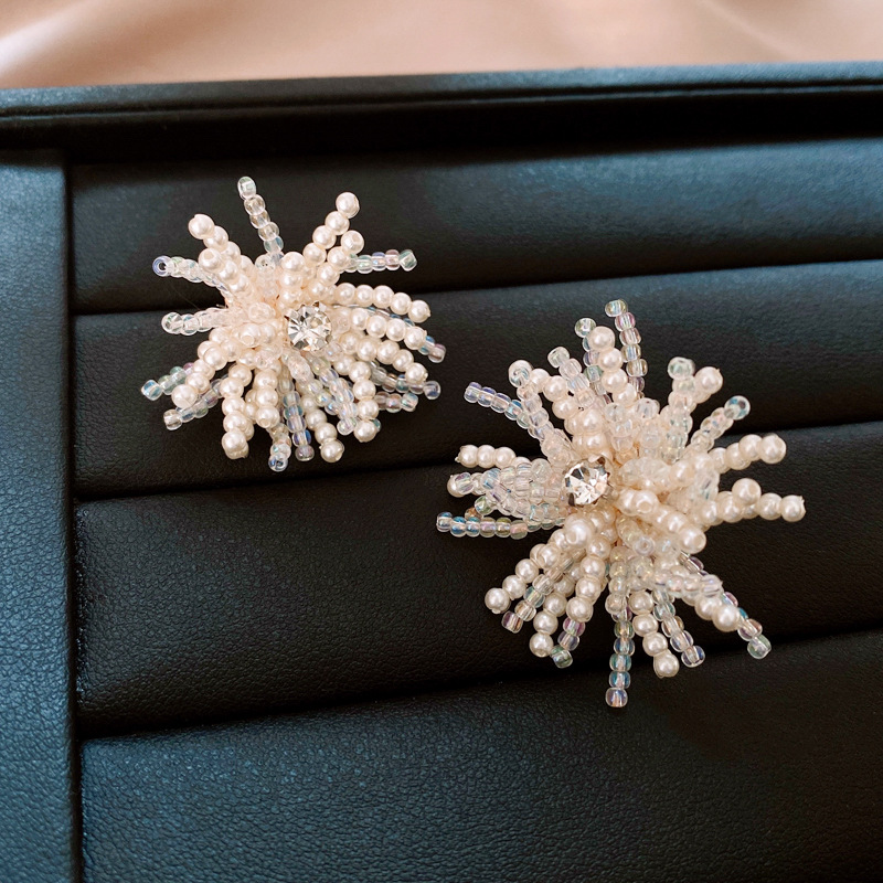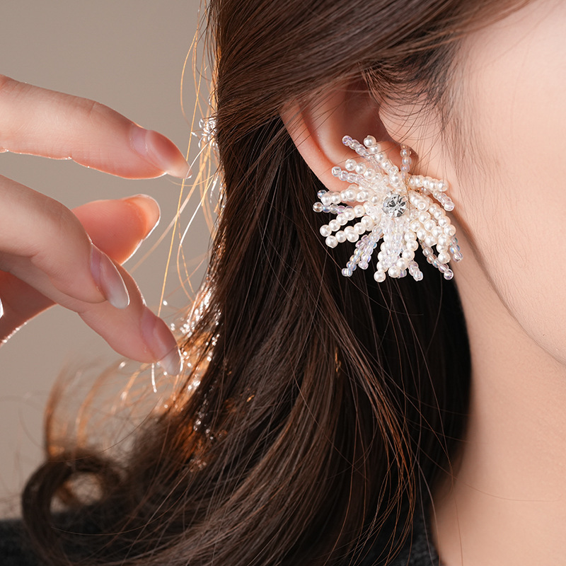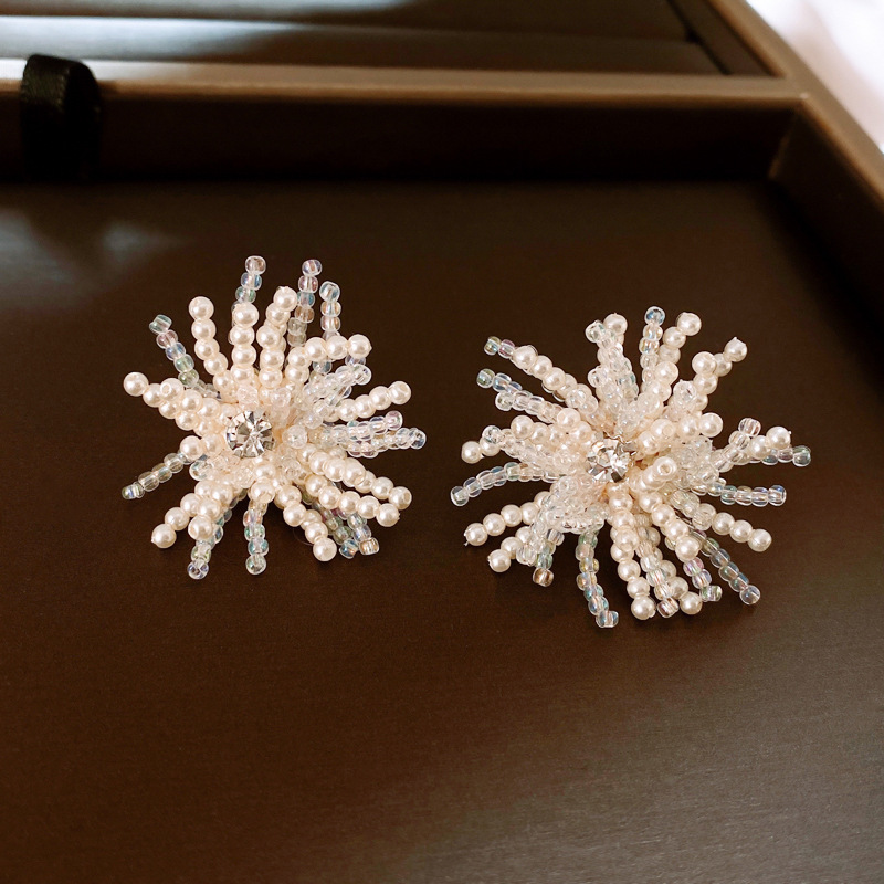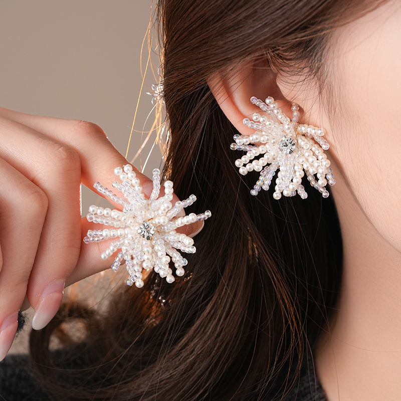 银针法式复古镶钻烟花珍珠耳钉小众个性时尚耳环轻奢高级感耳饰女