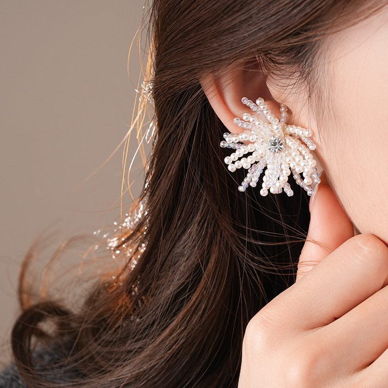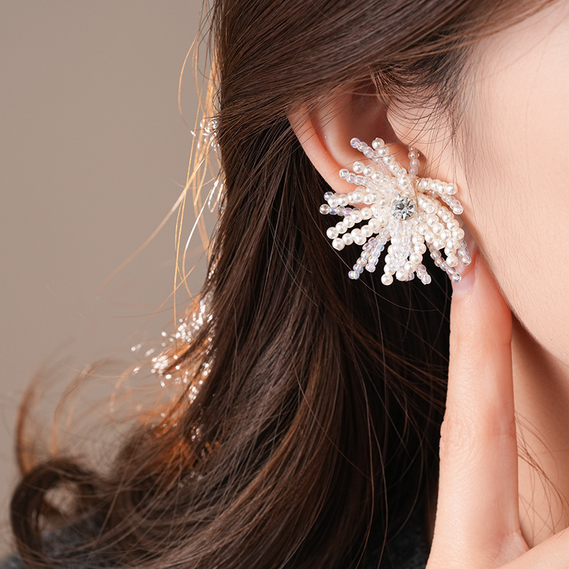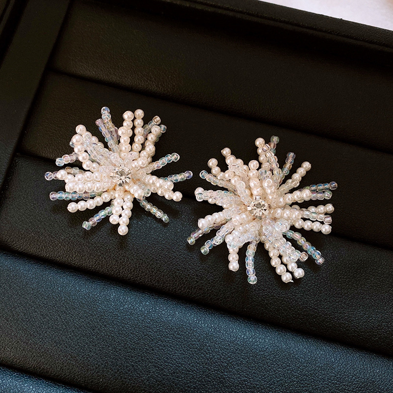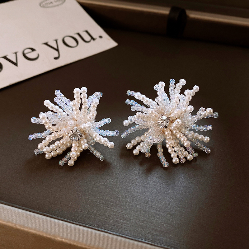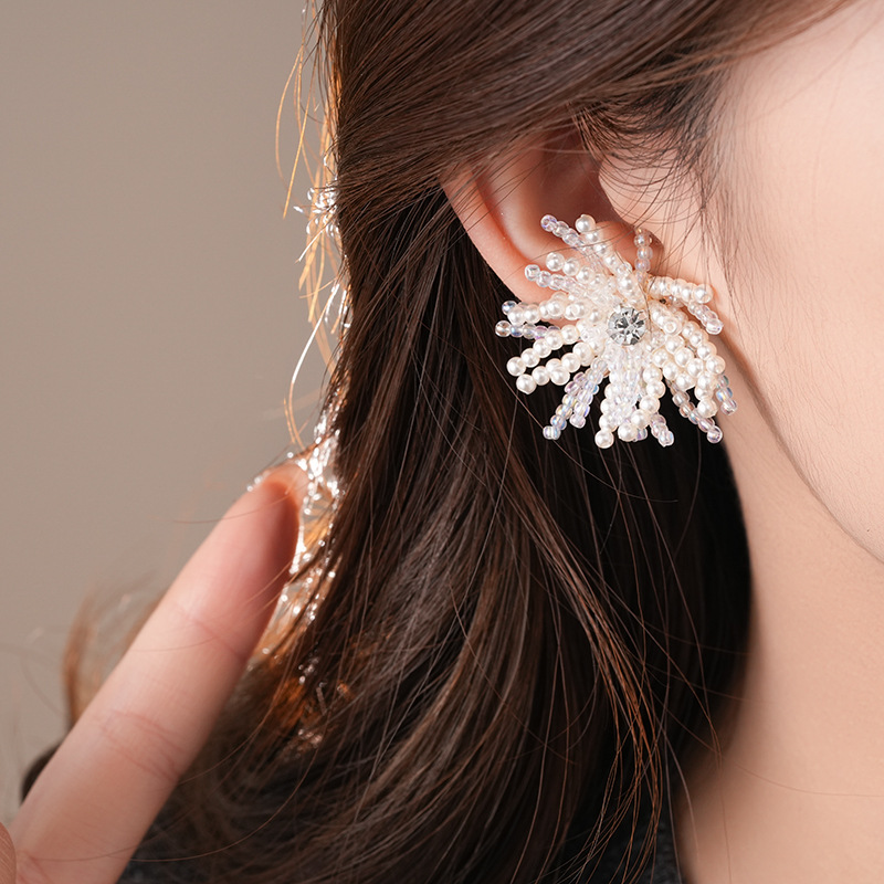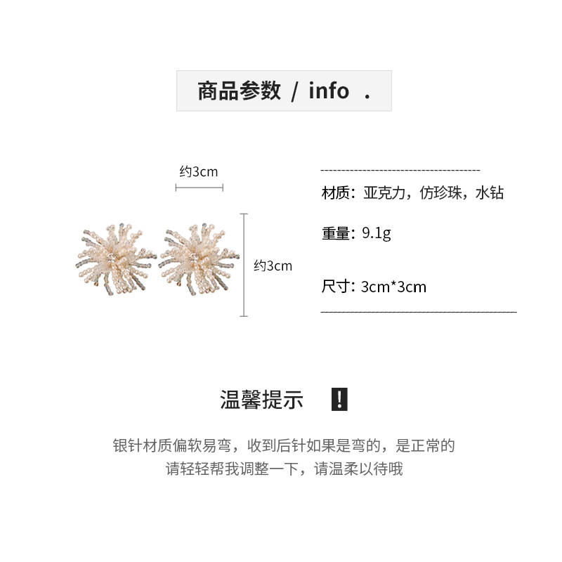 银针法式复古镶钻烟花珍珠耳钉小众个性时尚耳环轻奢高级感耳饰女