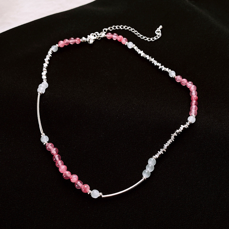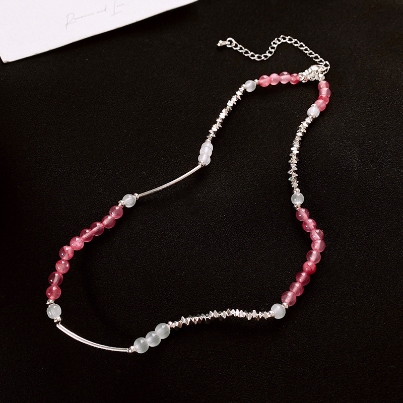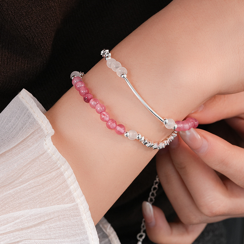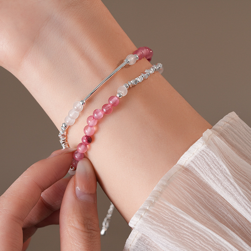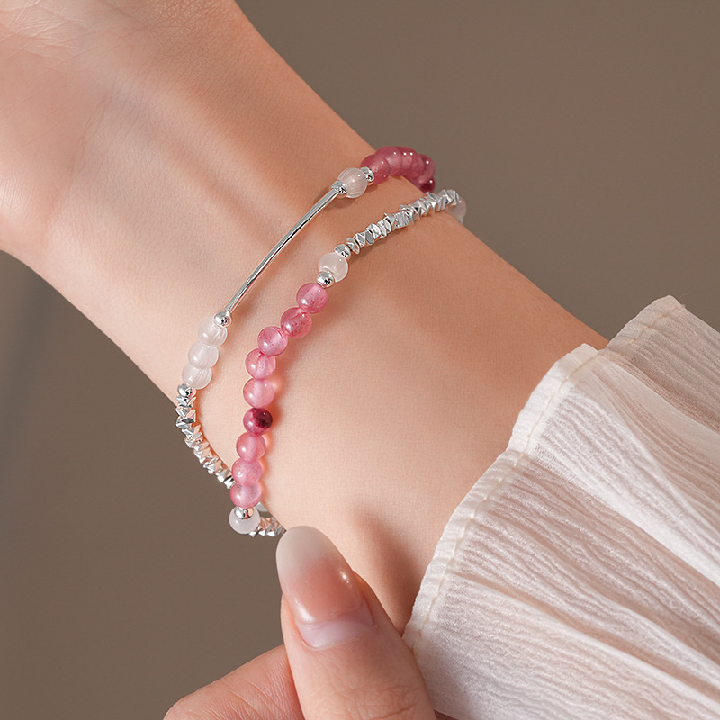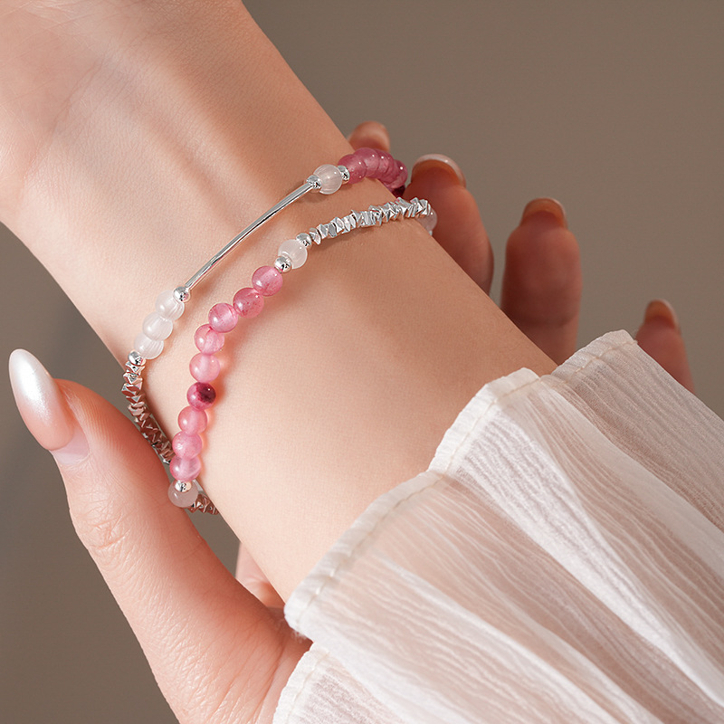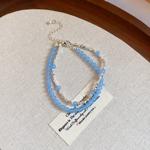 招桃花草莓晶海蓝宝碎银手链简约小清新甜美手串轻奢高级感手饰女