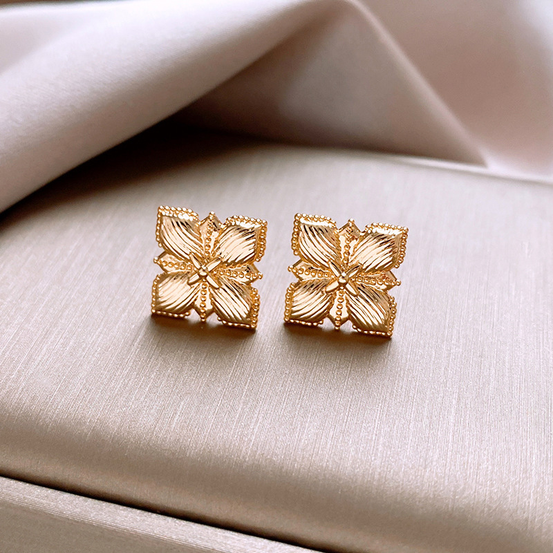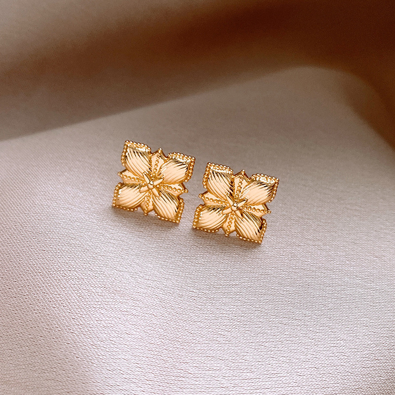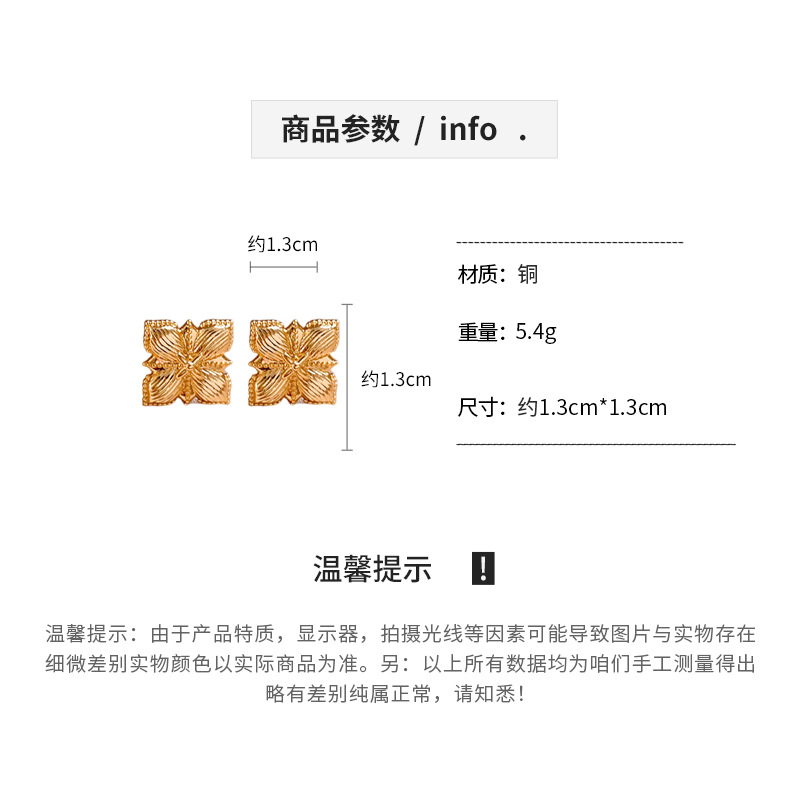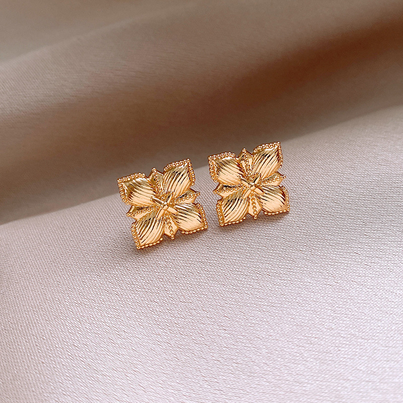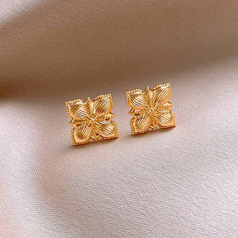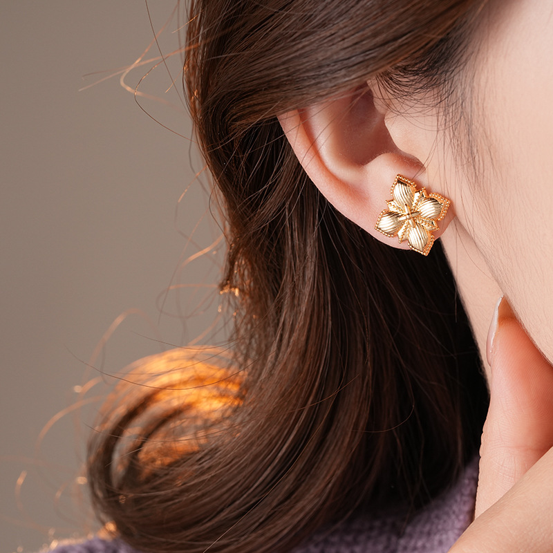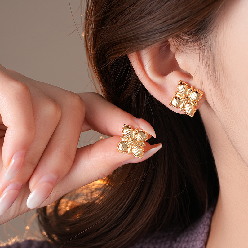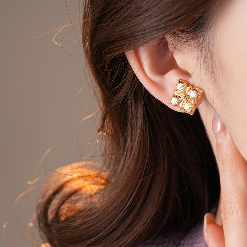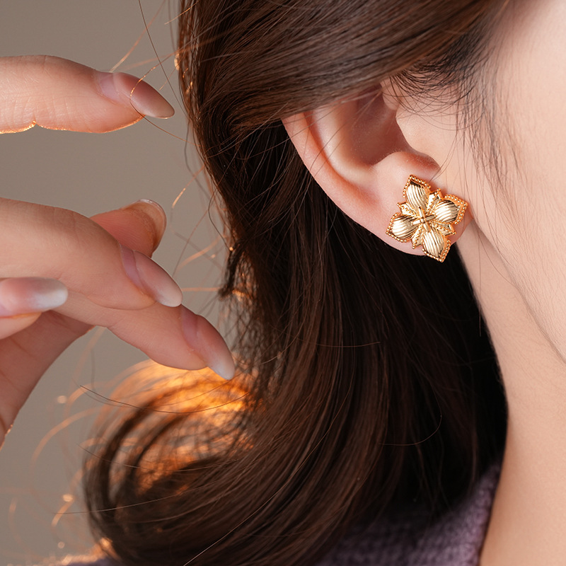24k 真金电镀条纹幸运草耳钉轻奢高级感耳饰小众时尚通勤耳环饰品