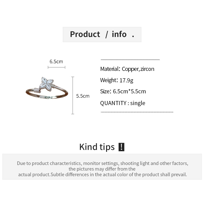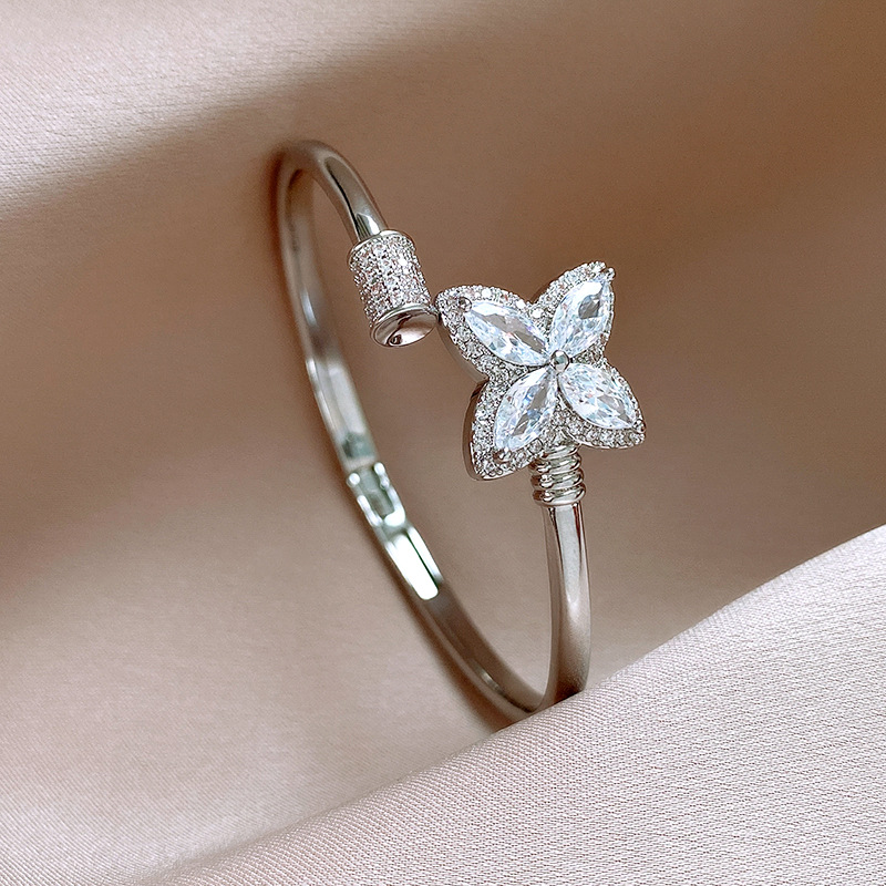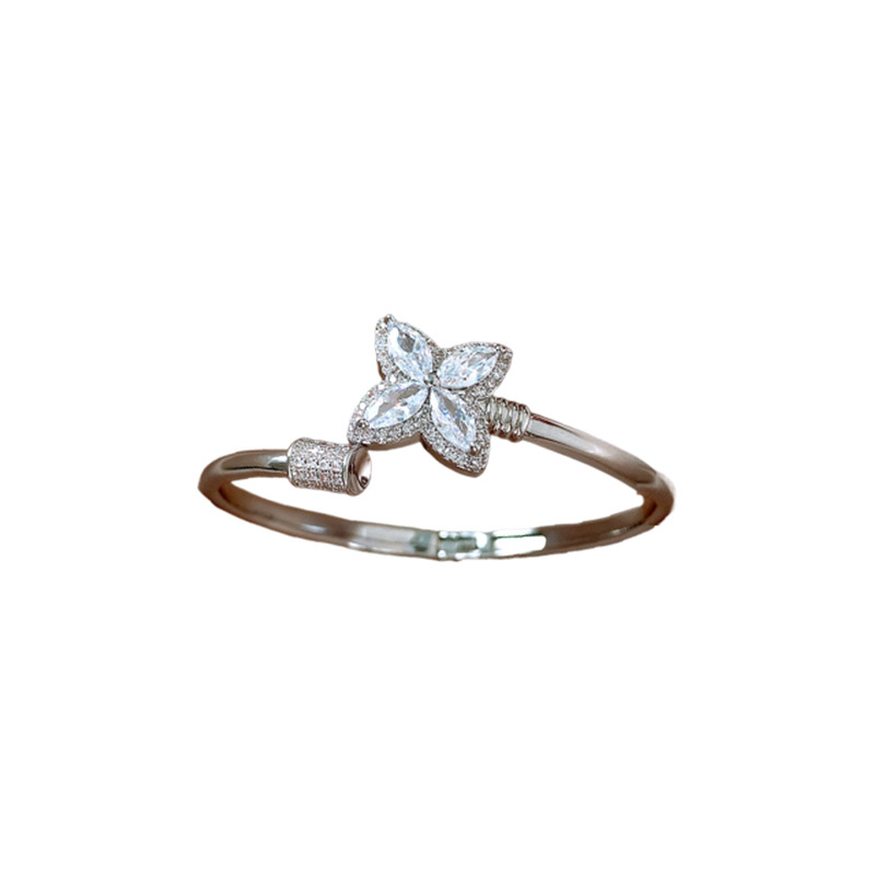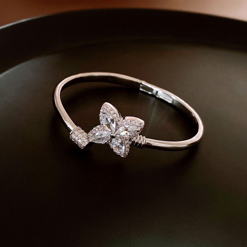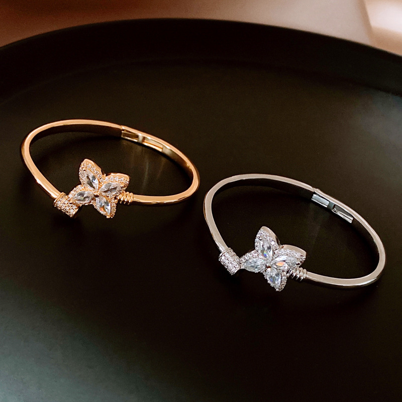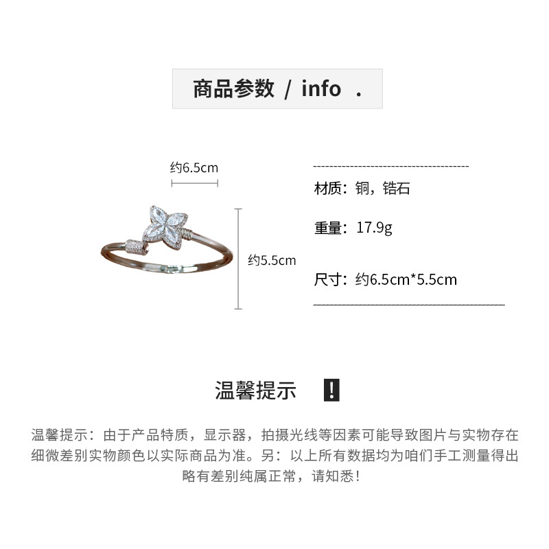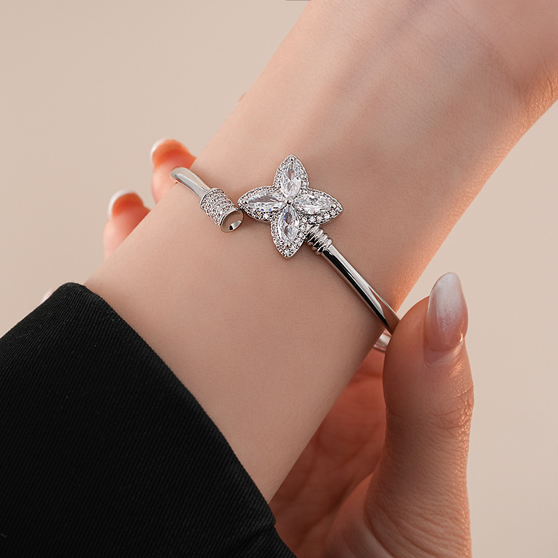 18k真金电镀锆石幸运草花朵开口手镯简约小众手环轻奢高级感饰品
