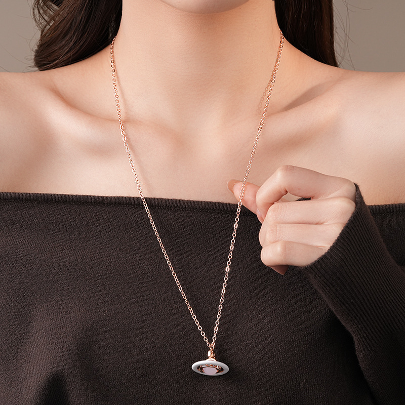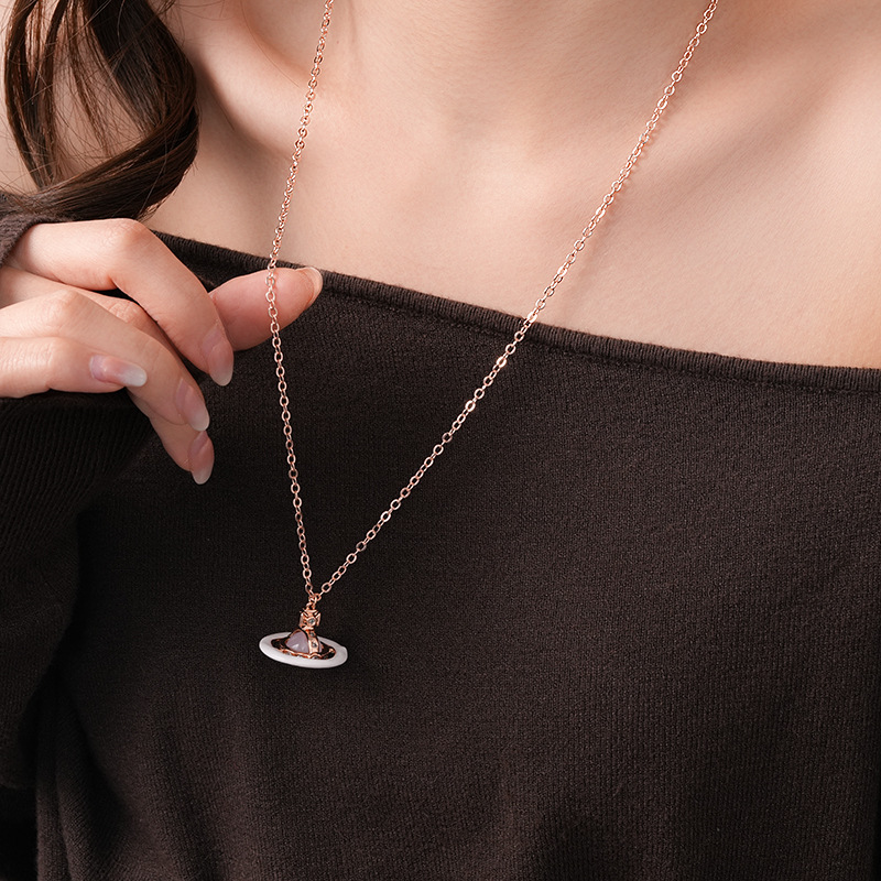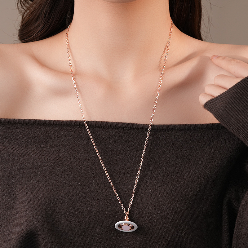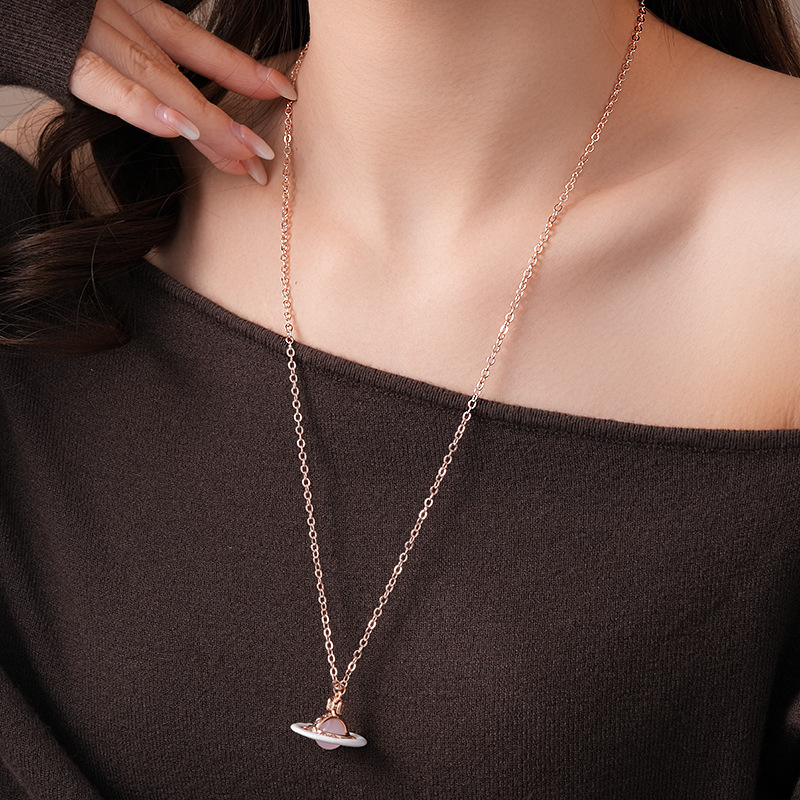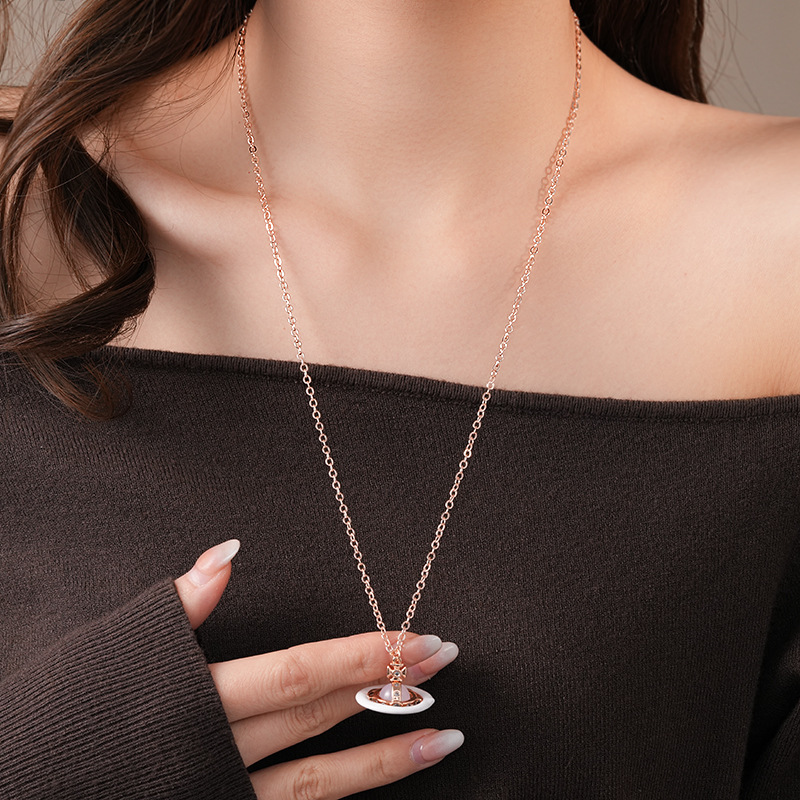 韩国时尚滴油土星项链个性小众长款毛衣链复古轻奢高级感项饰批发