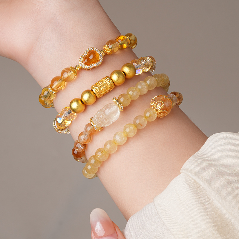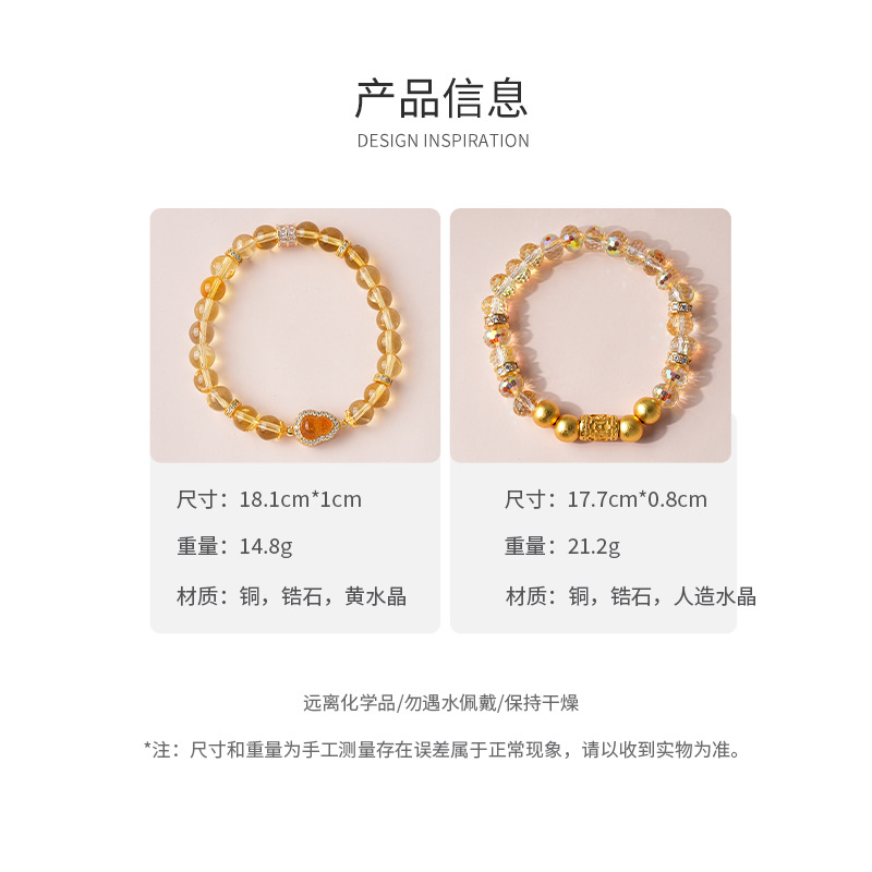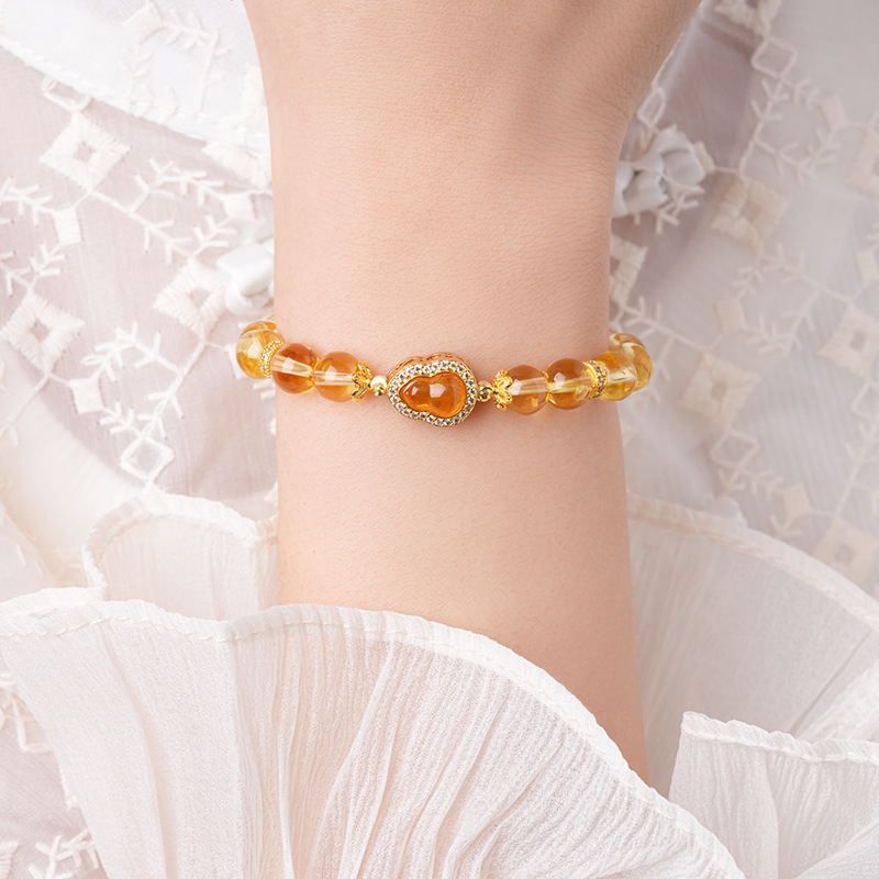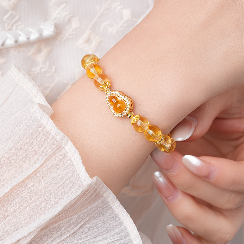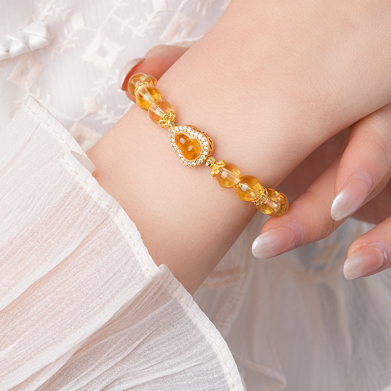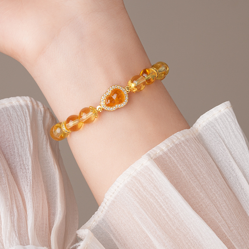 黄水晶锆石葫芦花朵圆球手链复古时尚轻奢高级感手串百搭精致手饰
