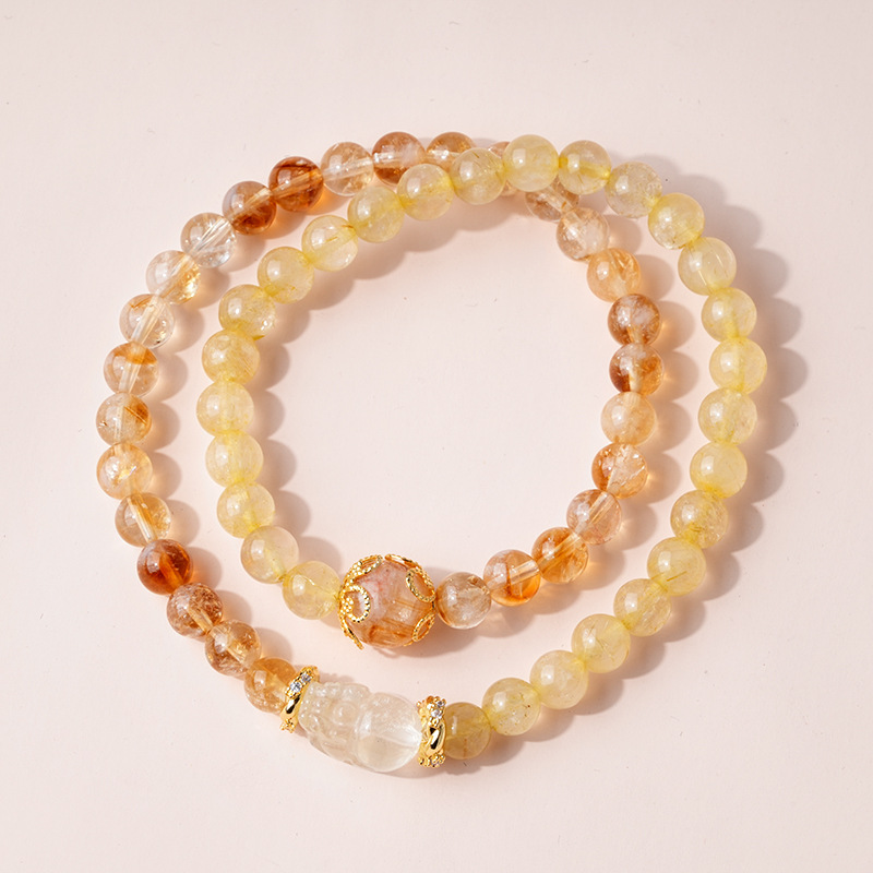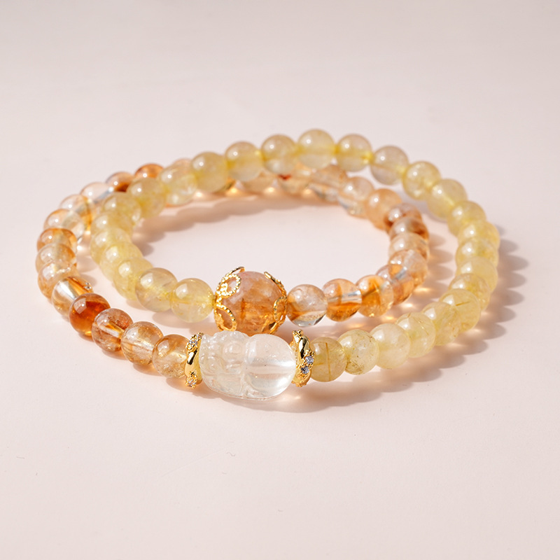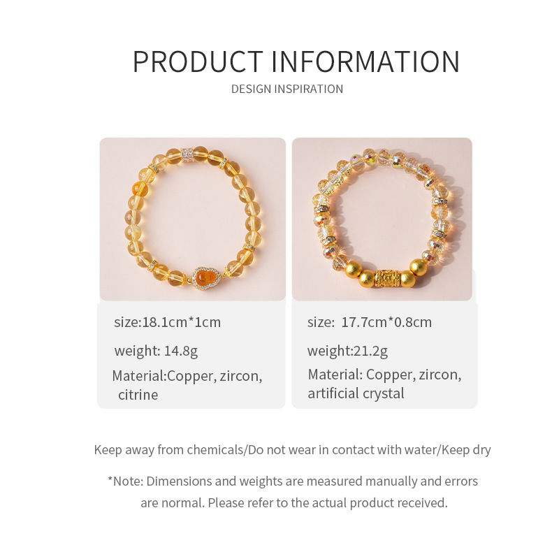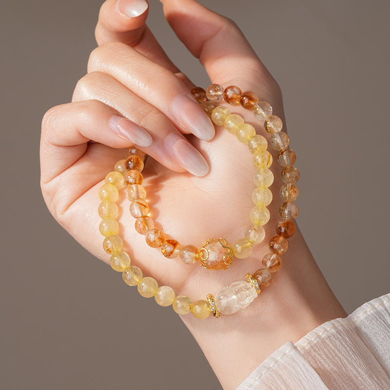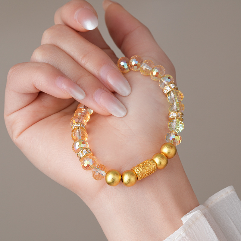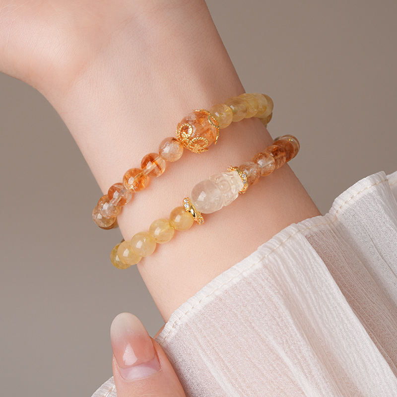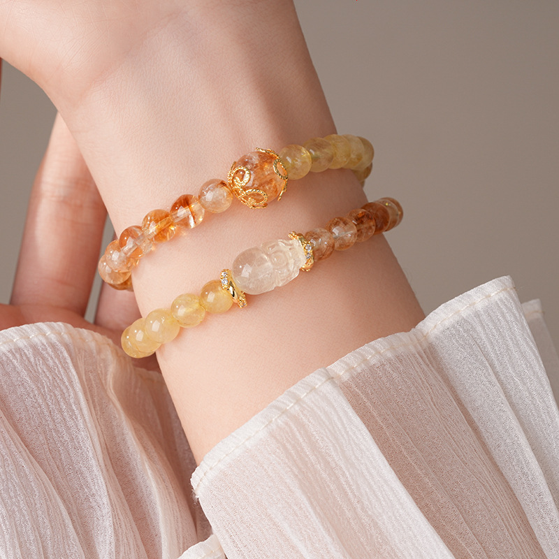 黄水晶锆石葫芦花朵圆球手链复古时尚轻奢高级感手串百搭精致手饰