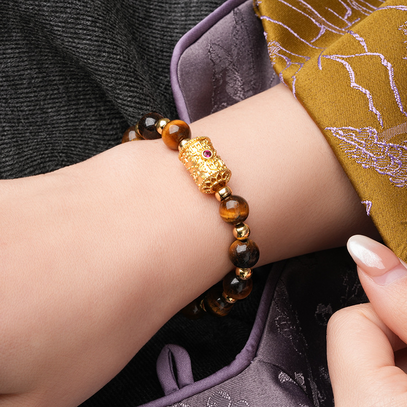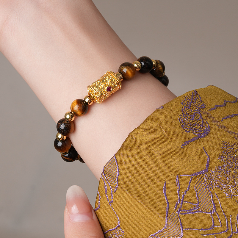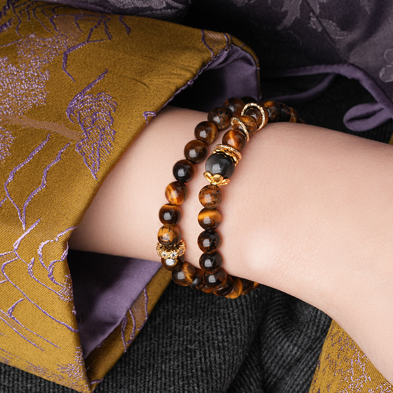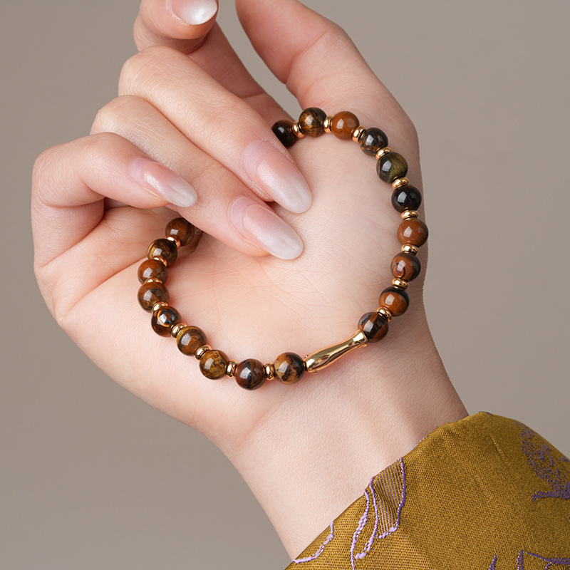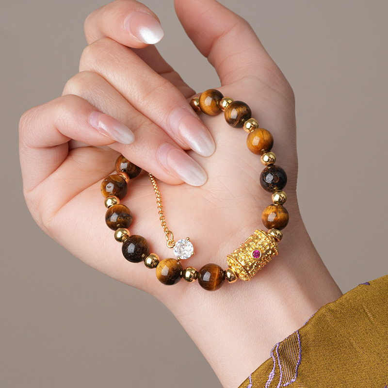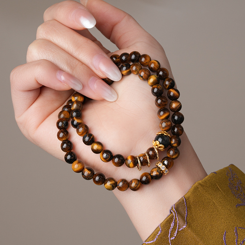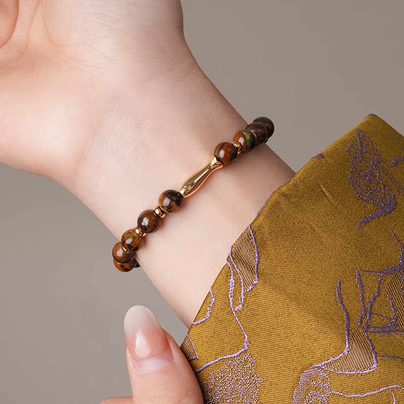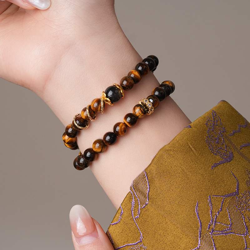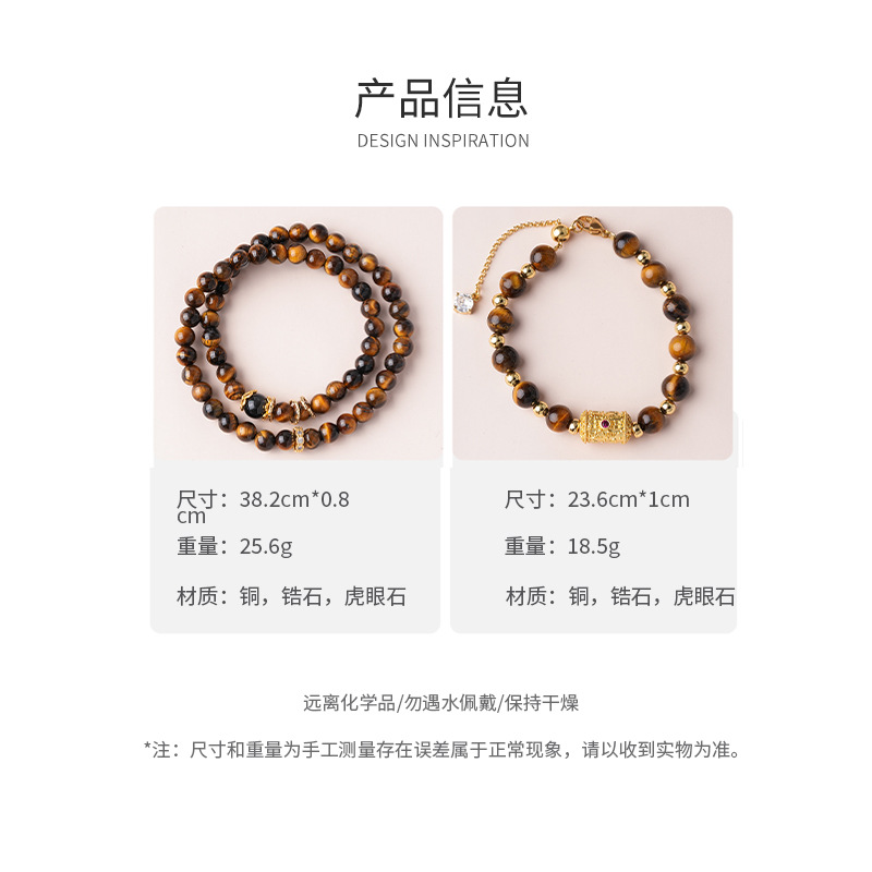 美拉德锆石花朵虎眼石可叠戴式手链复古小众设计手串气质百搭手饰