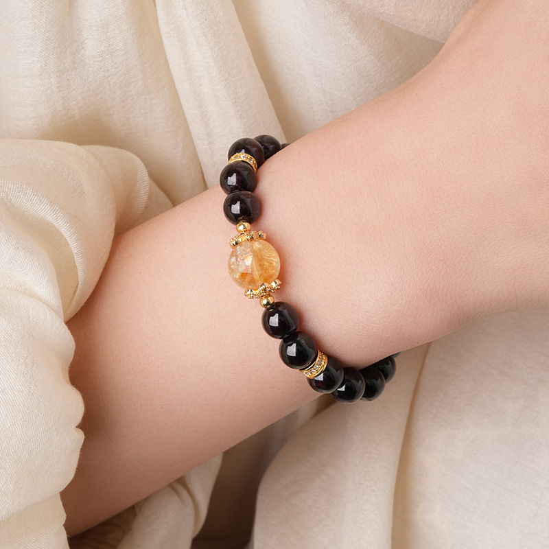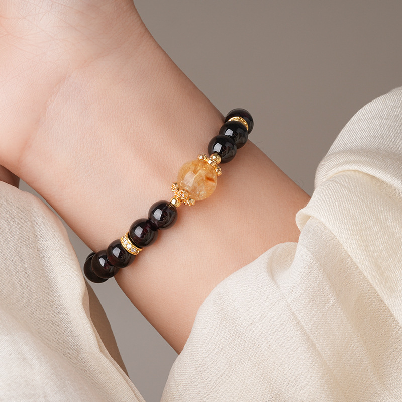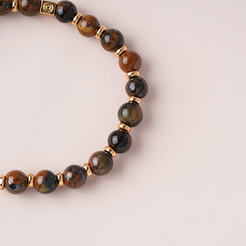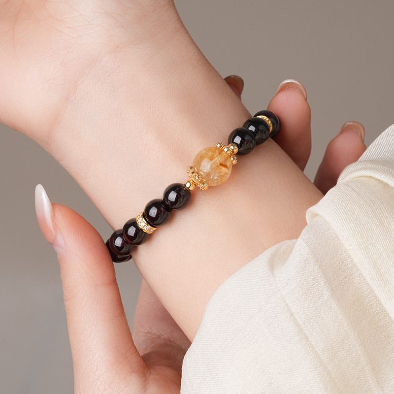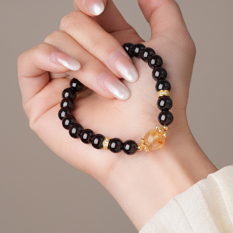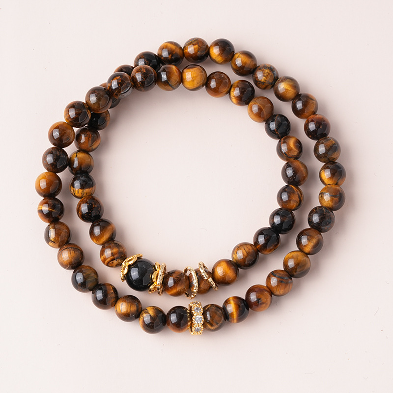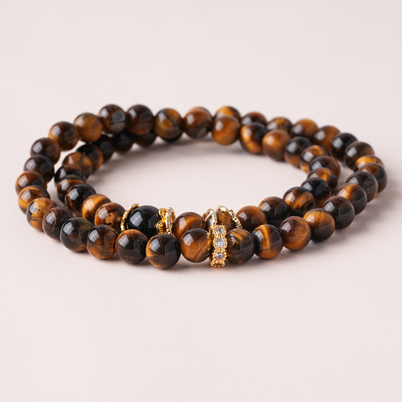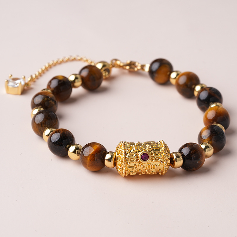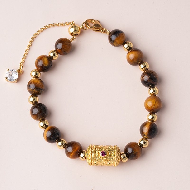 美拉德锆石花朵虎眼石可叠戴式手链复古小众设计手串气质百搭手饰
