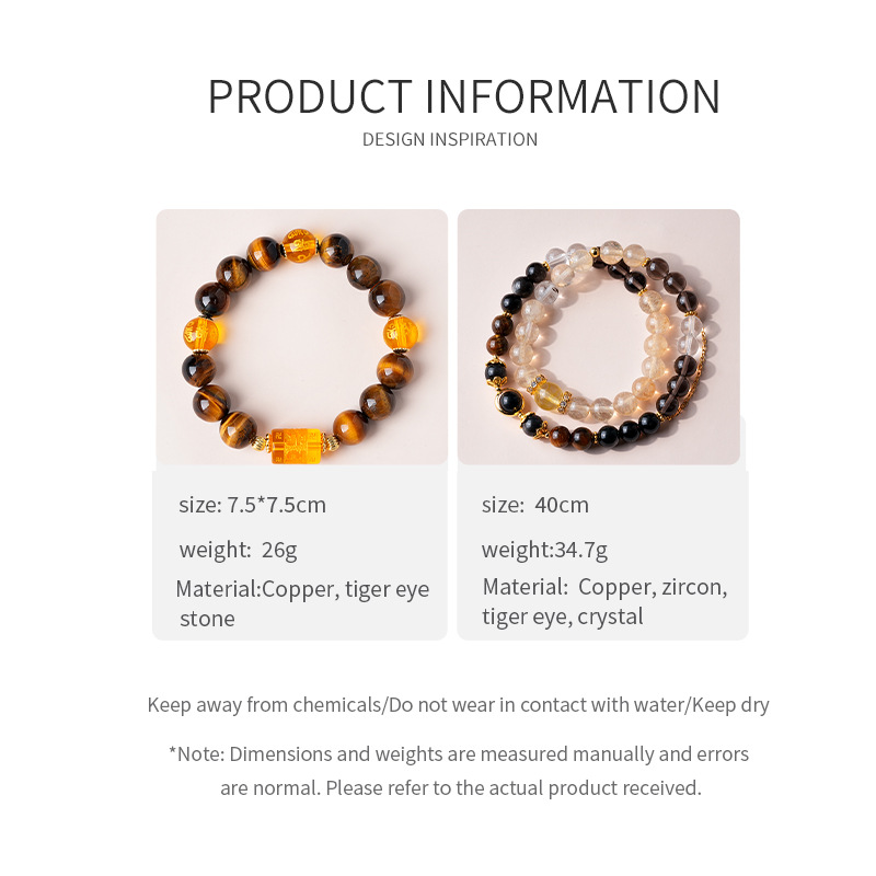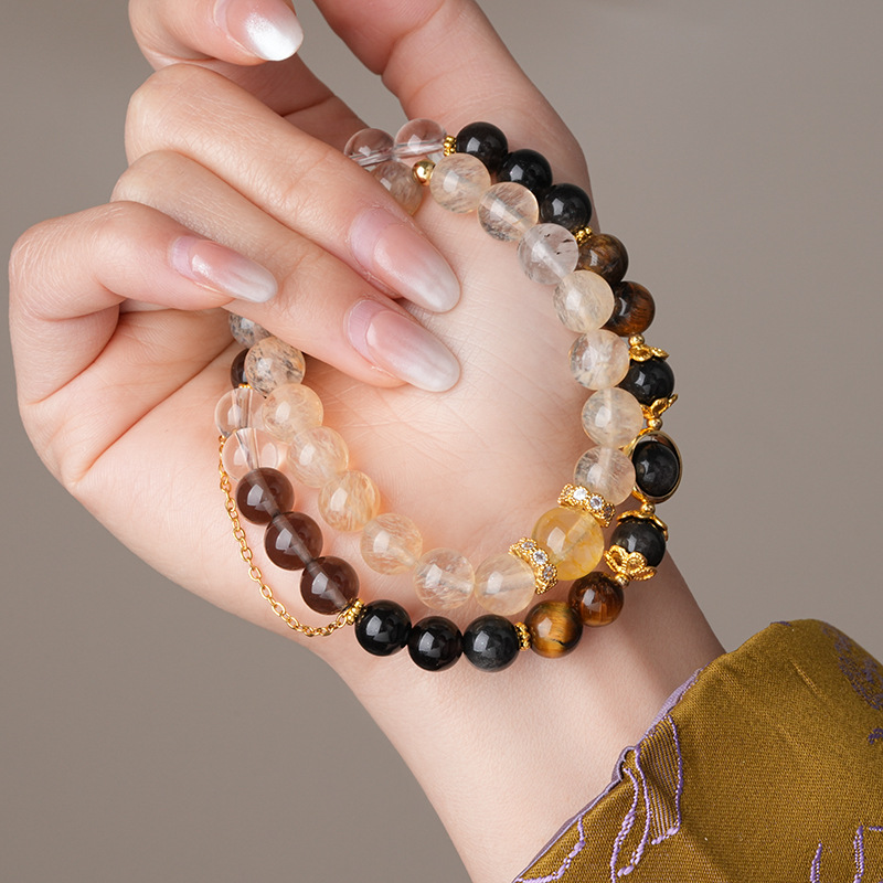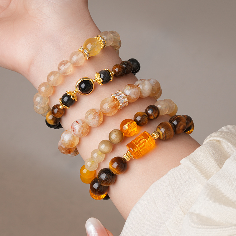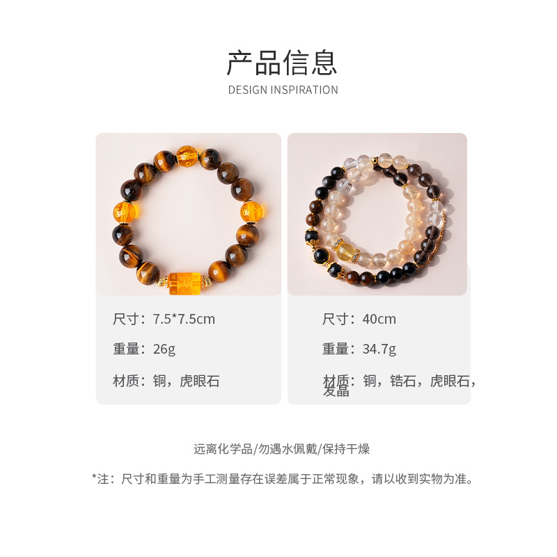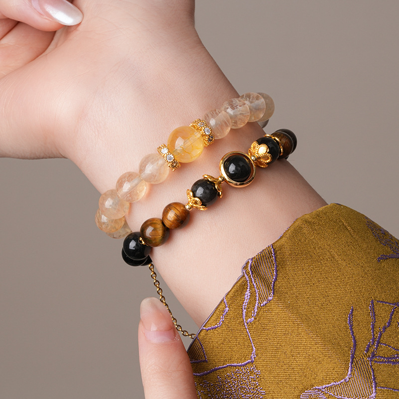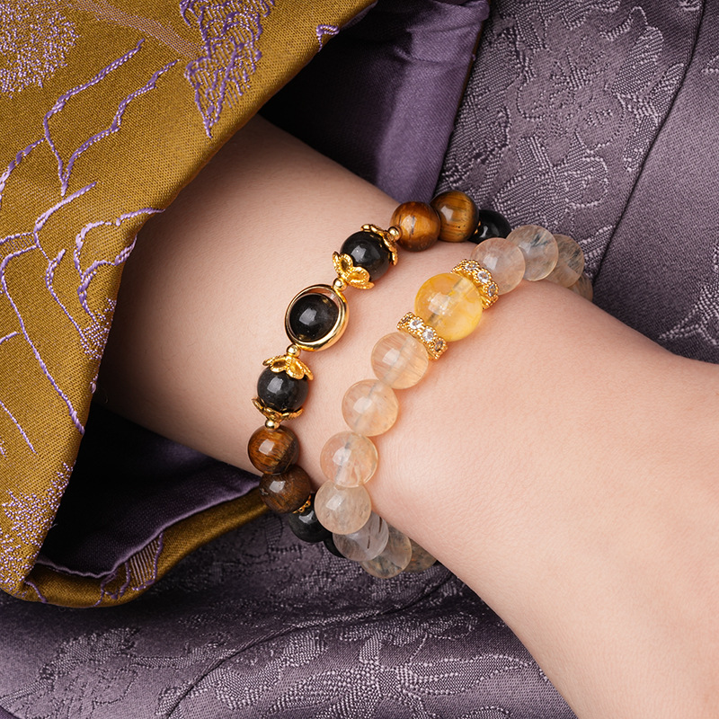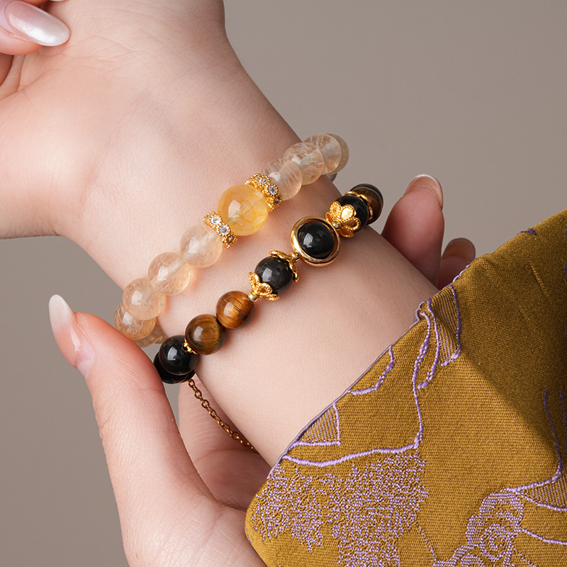 美拉德虎眼石发晶水晶手链复古高级感精致手串个性通勤百搭手饰女