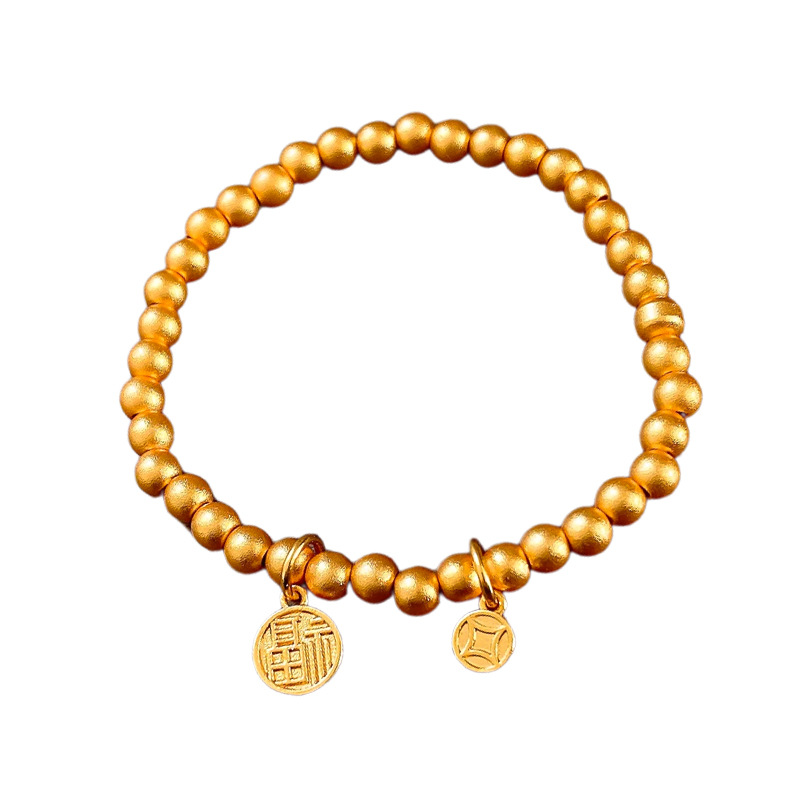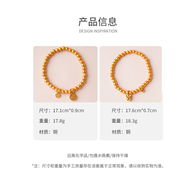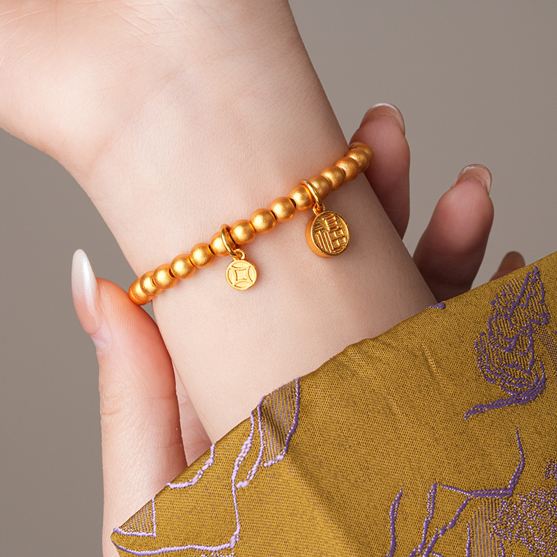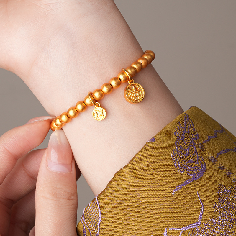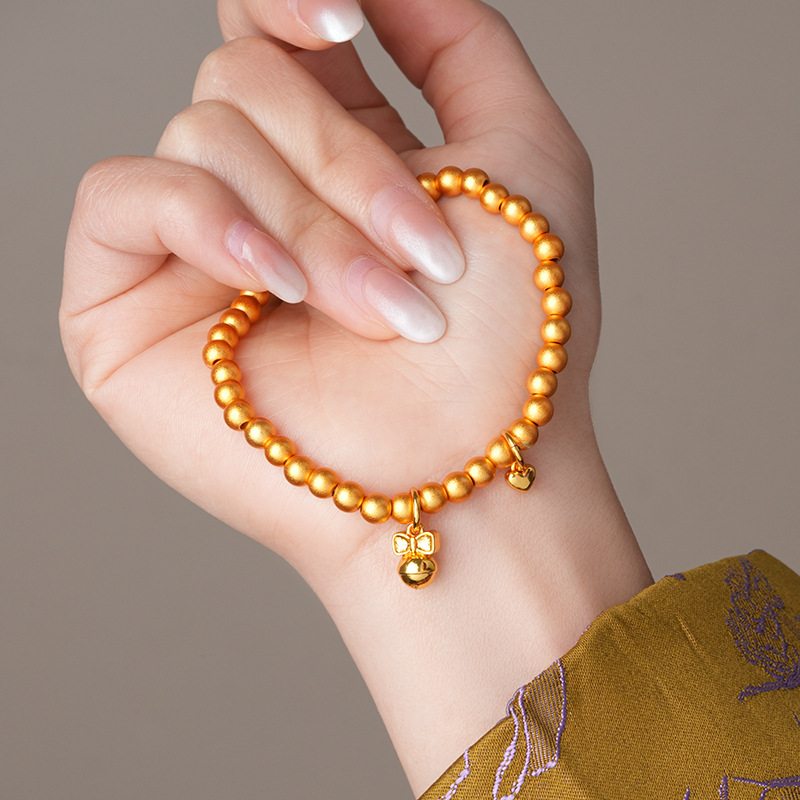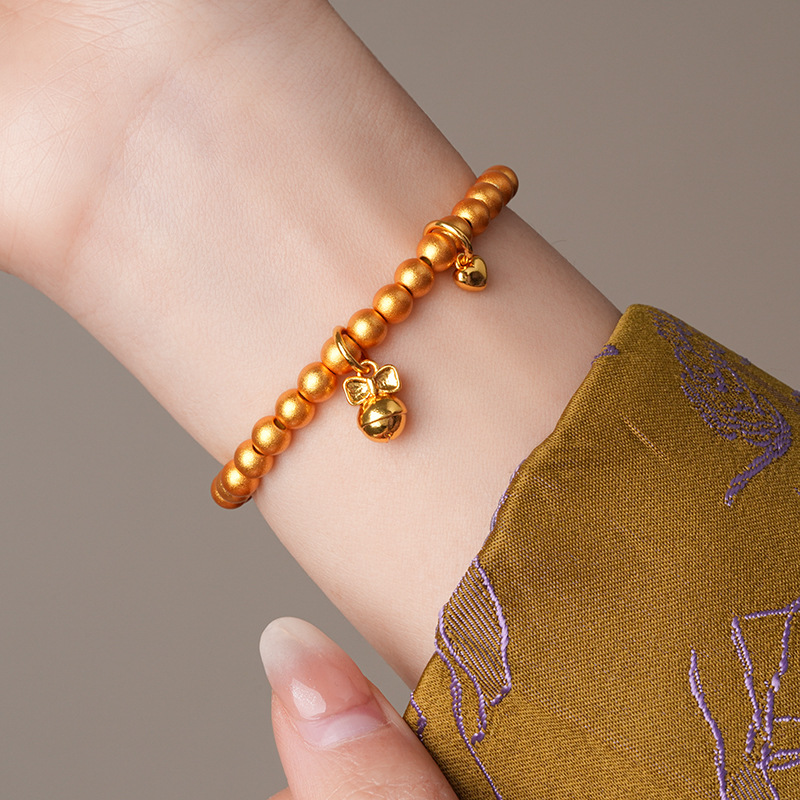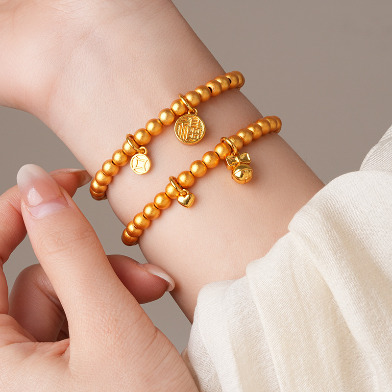 真金电镀福字蝴蝶结铃铛爱心手链复古高级感手串新中式百搭手饰女