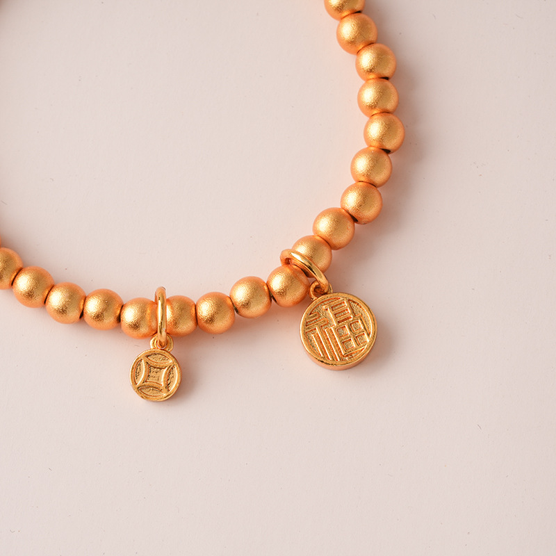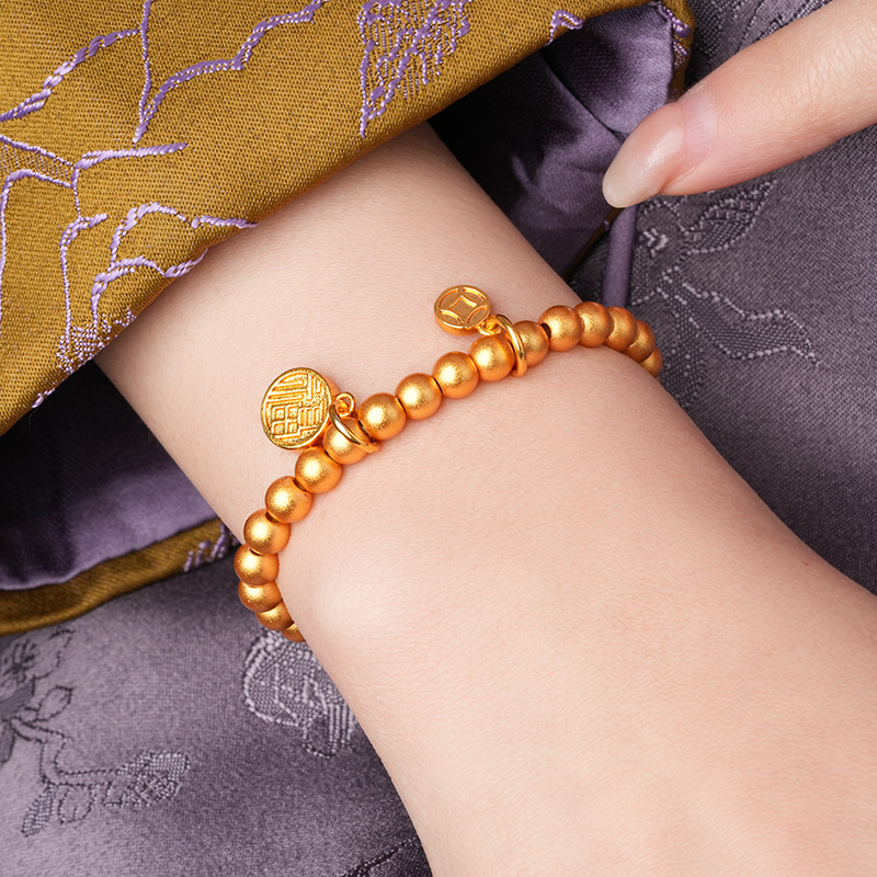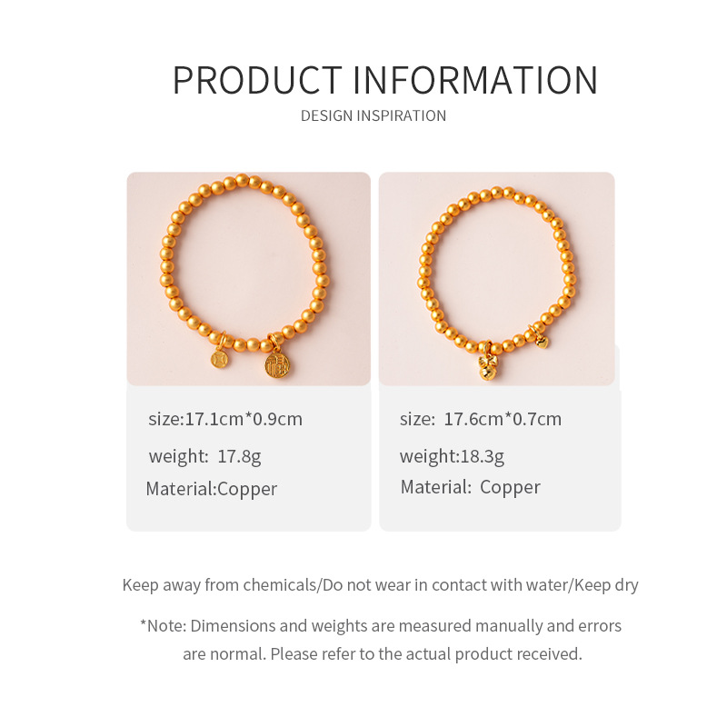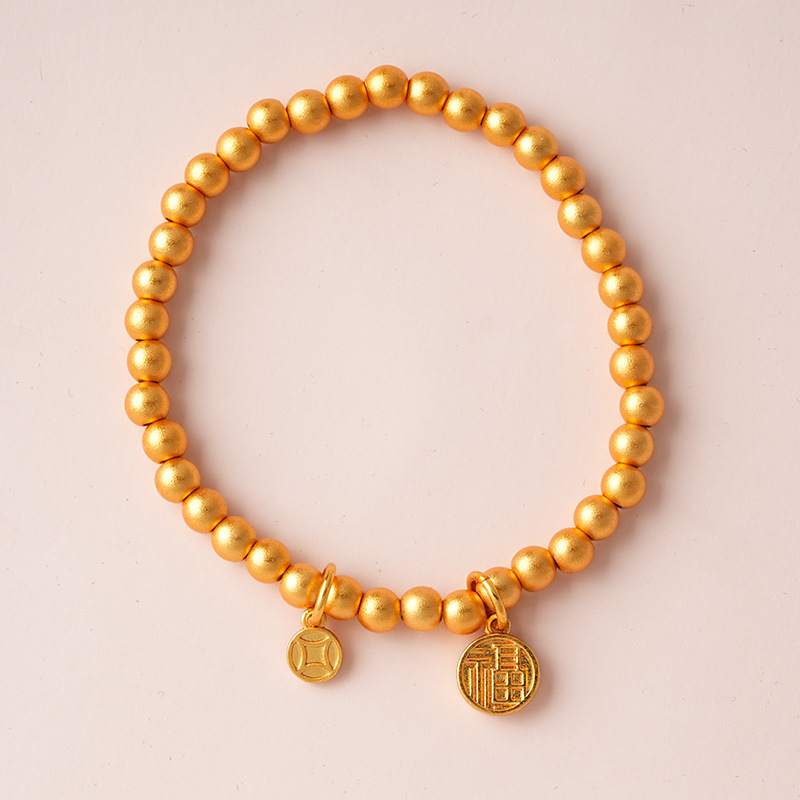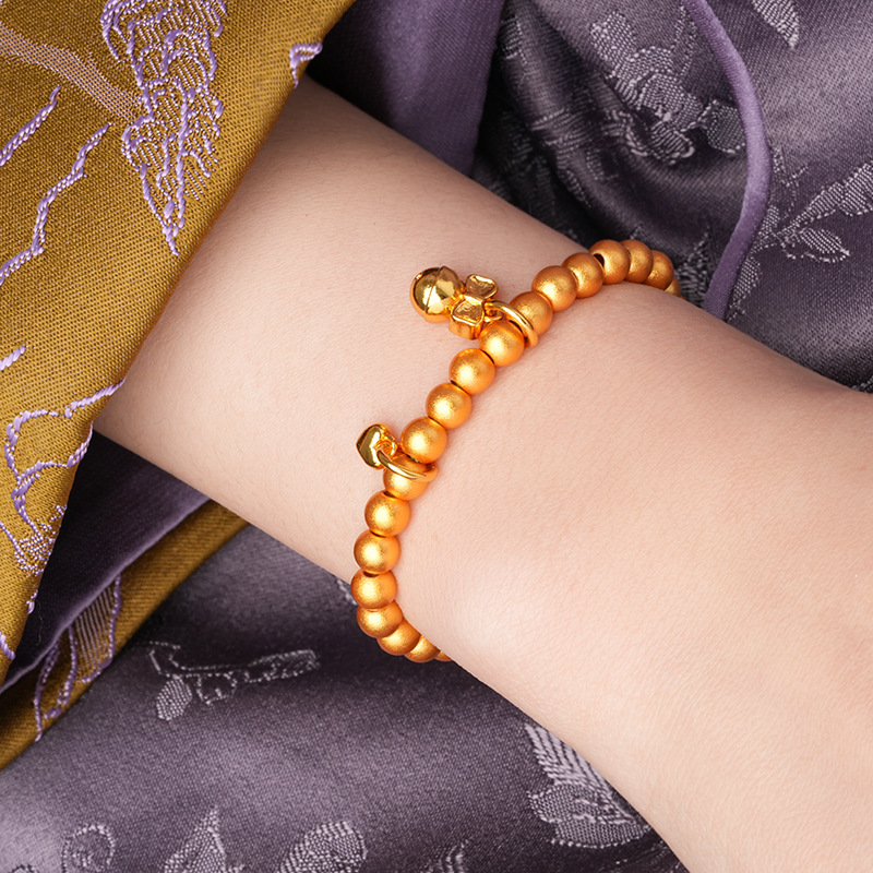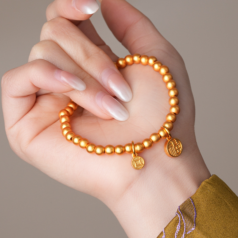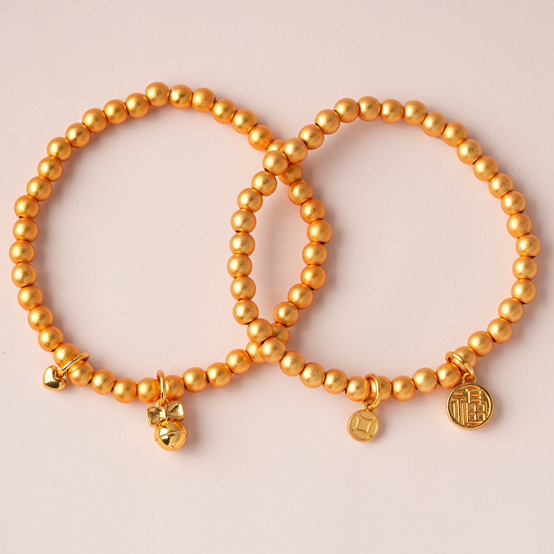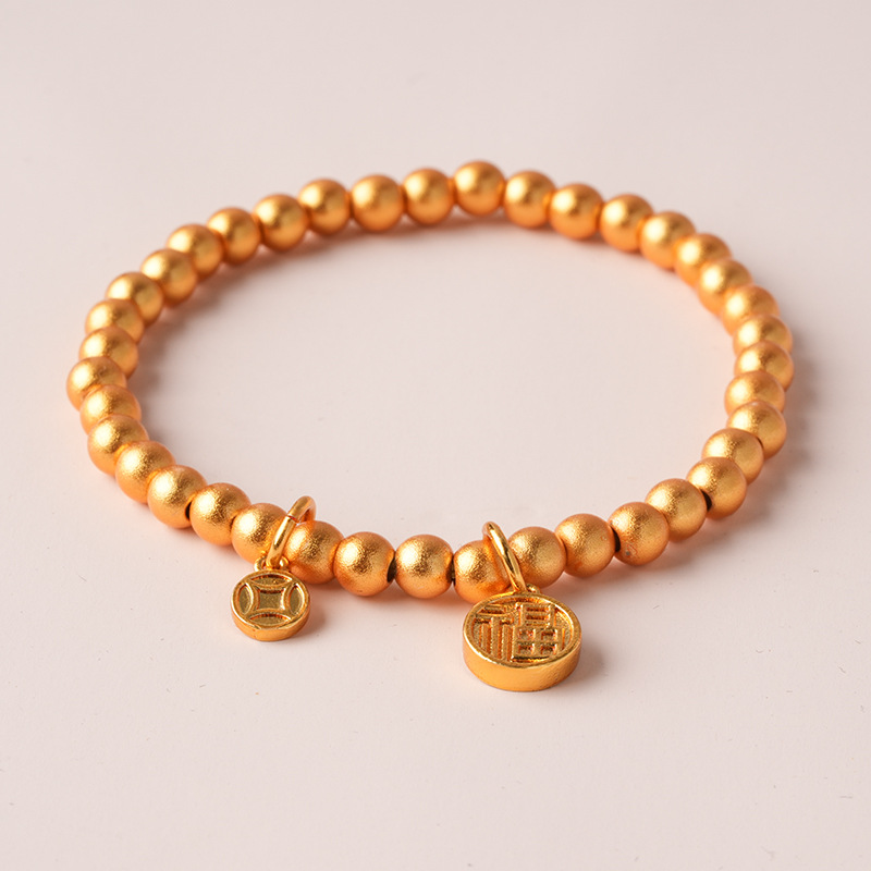 真金电镀福字蝴蝶结铃铛爱心手链复古高级感手串新中式百搭手饰女