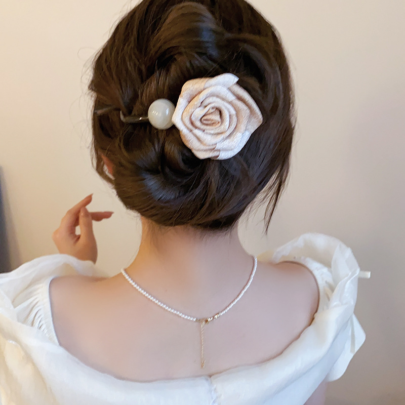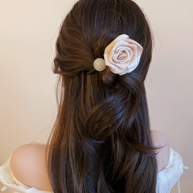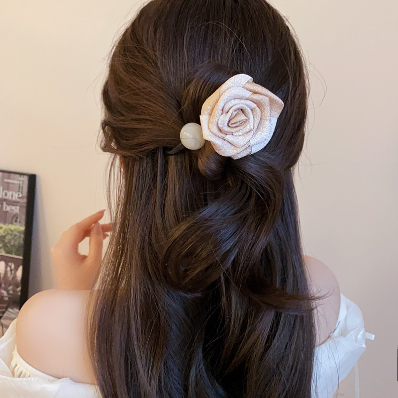 香槟色干枯玫瑰花扭扭夹发夹女后脑勺盘发发卡头饰个性时尚饰品女