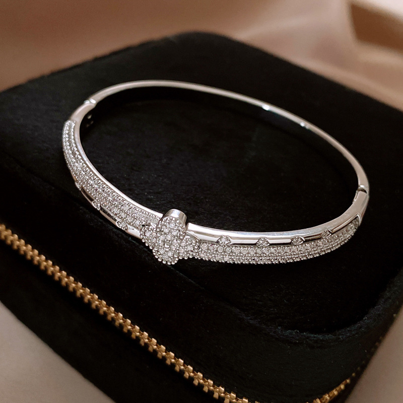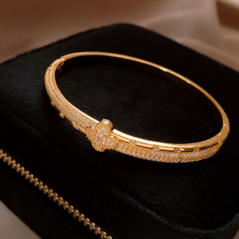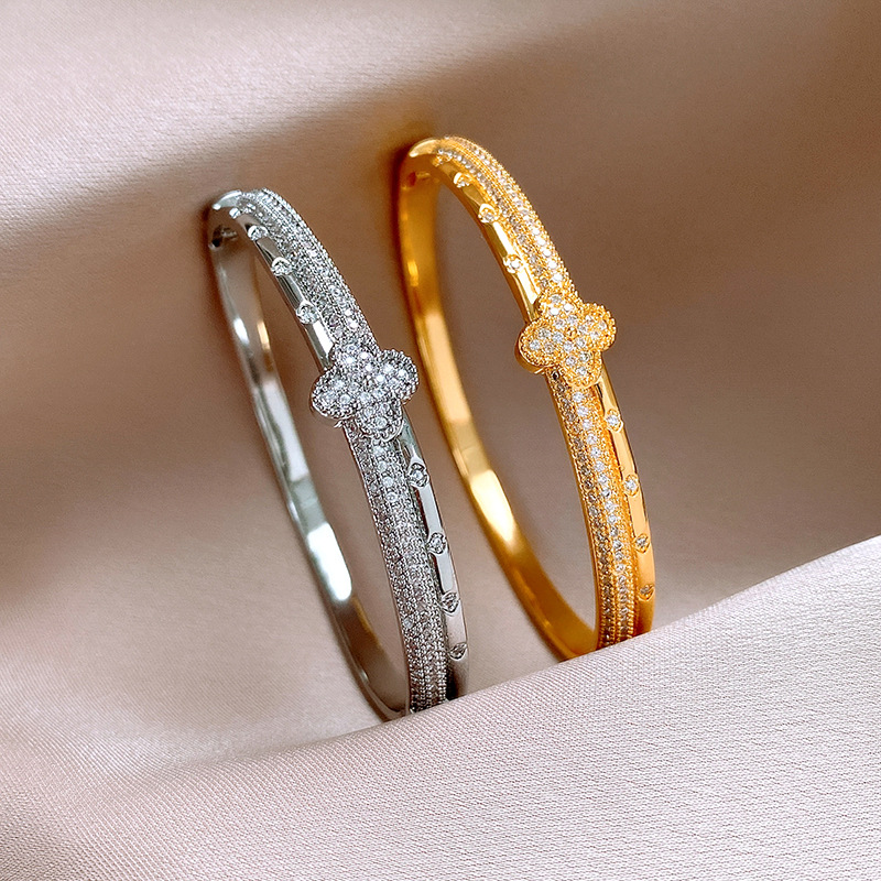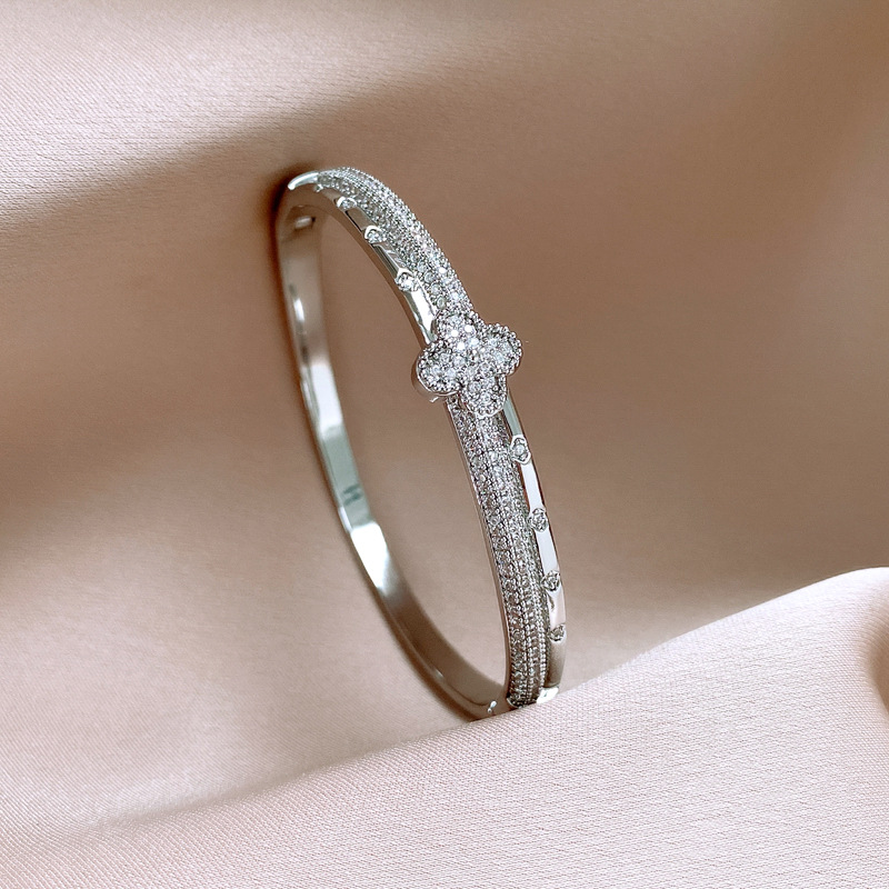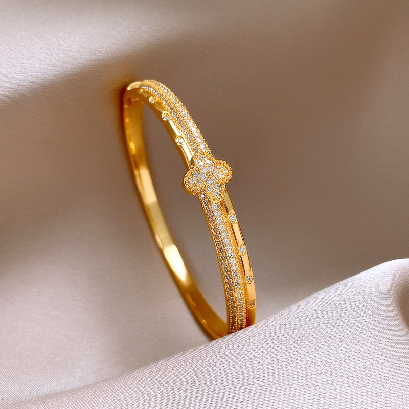 18k真金电镀微镶锆石幸运草花朵锆石手镯时尚高级感手环手饰饰品