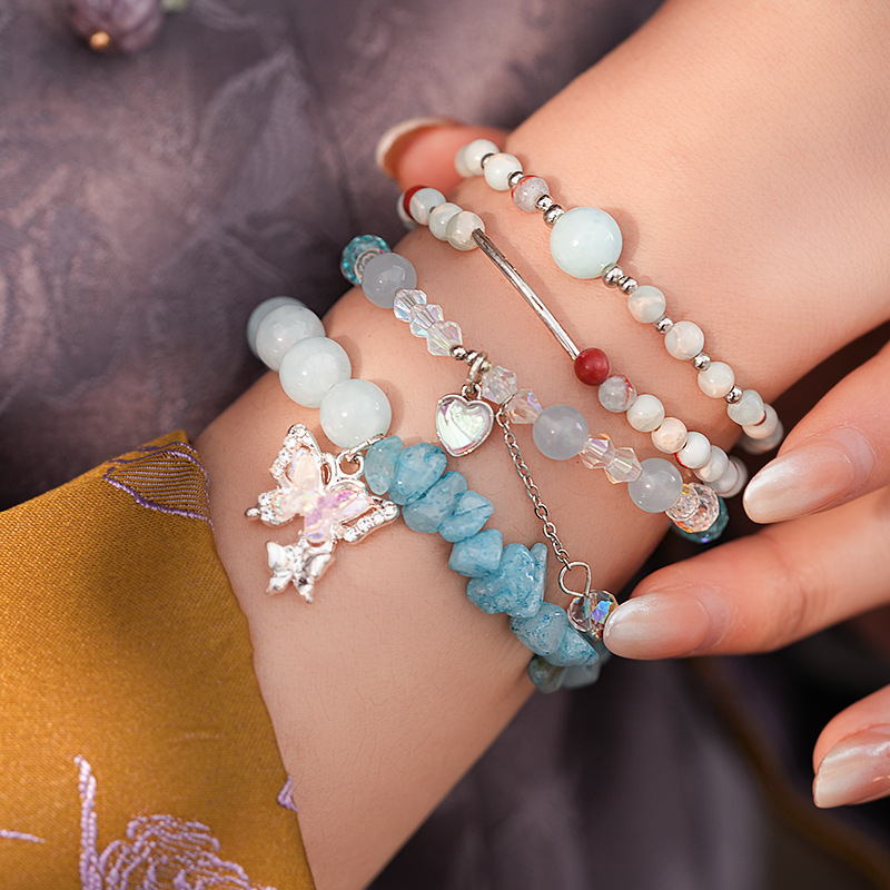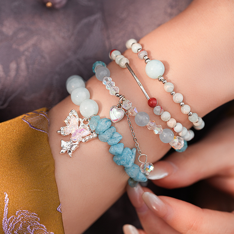 新中式爱心蝴蝶水晶手链复古高级感风手串时尚百搭几何小众手饰女
