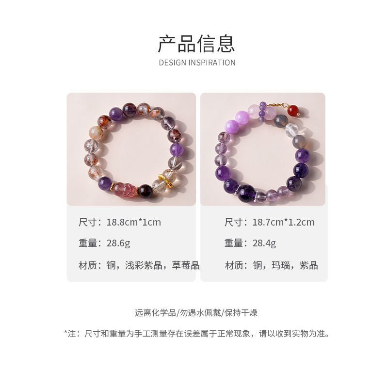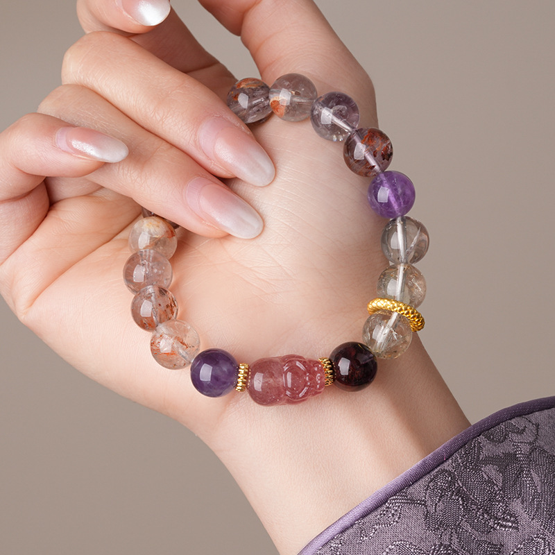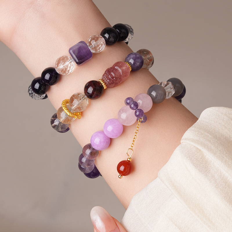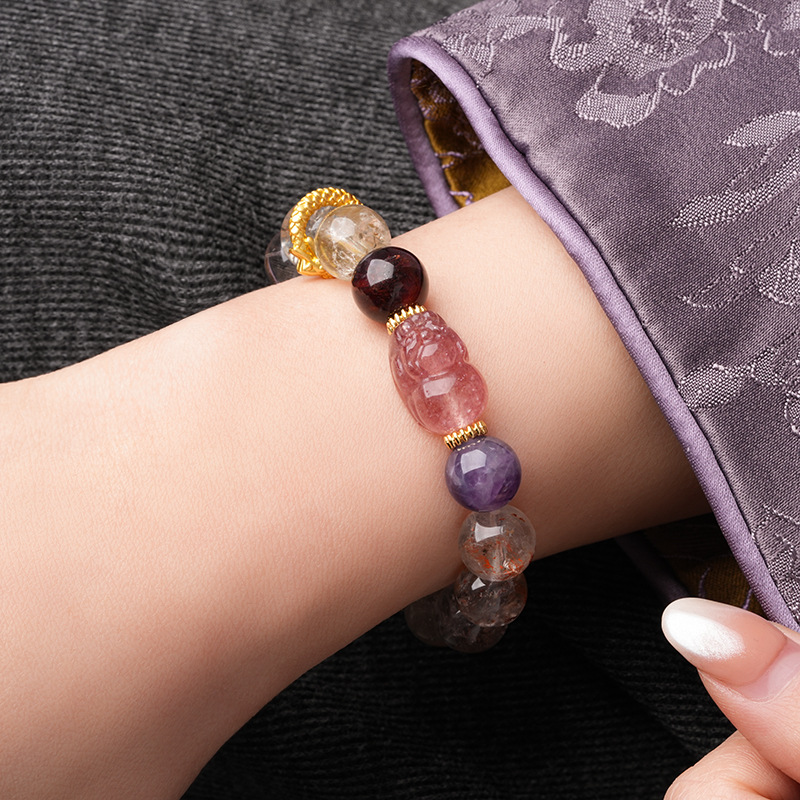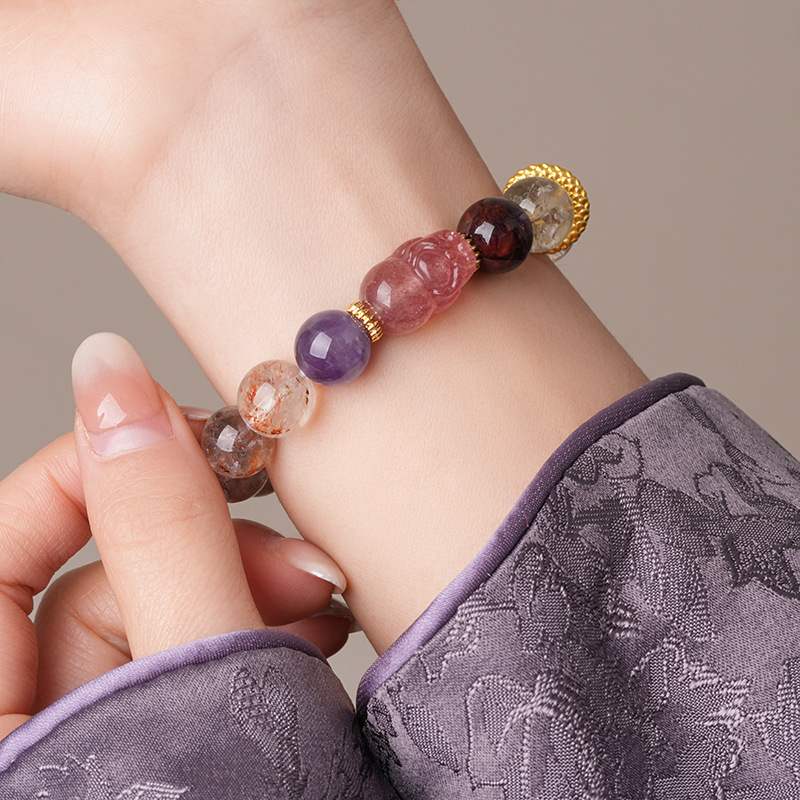 新中式貔貅灵蛇紫晶草莓晶圆球手链复古高级感手串气质优雅手饰女