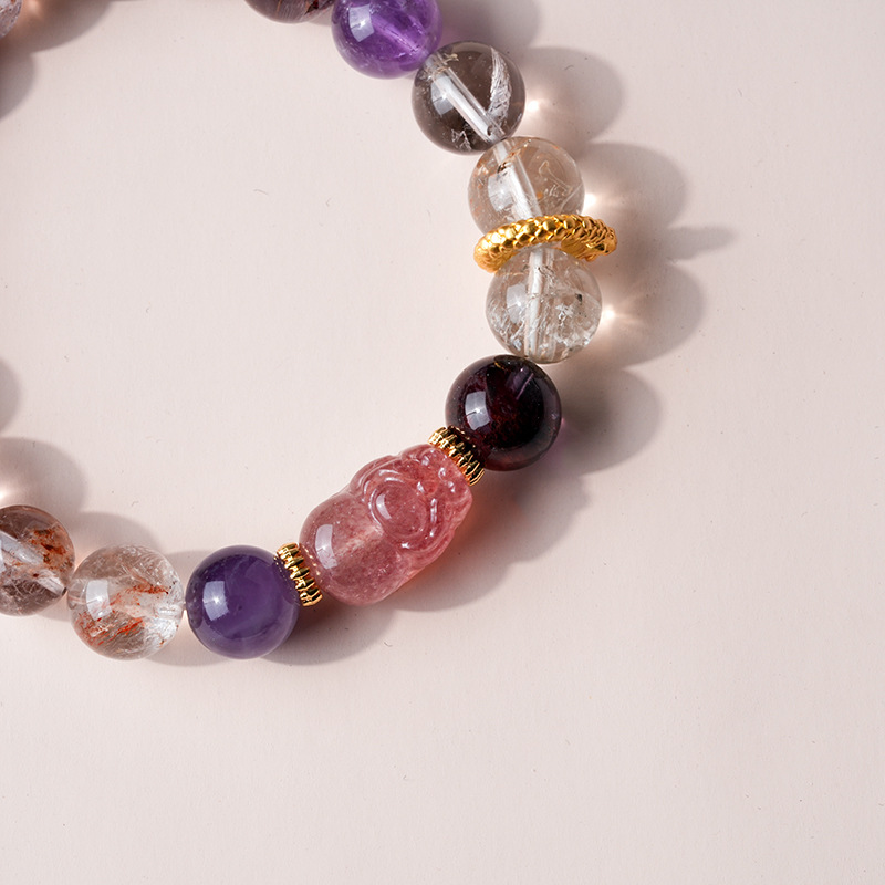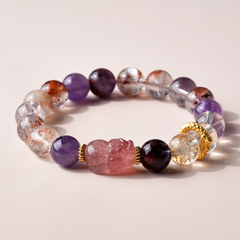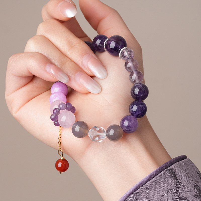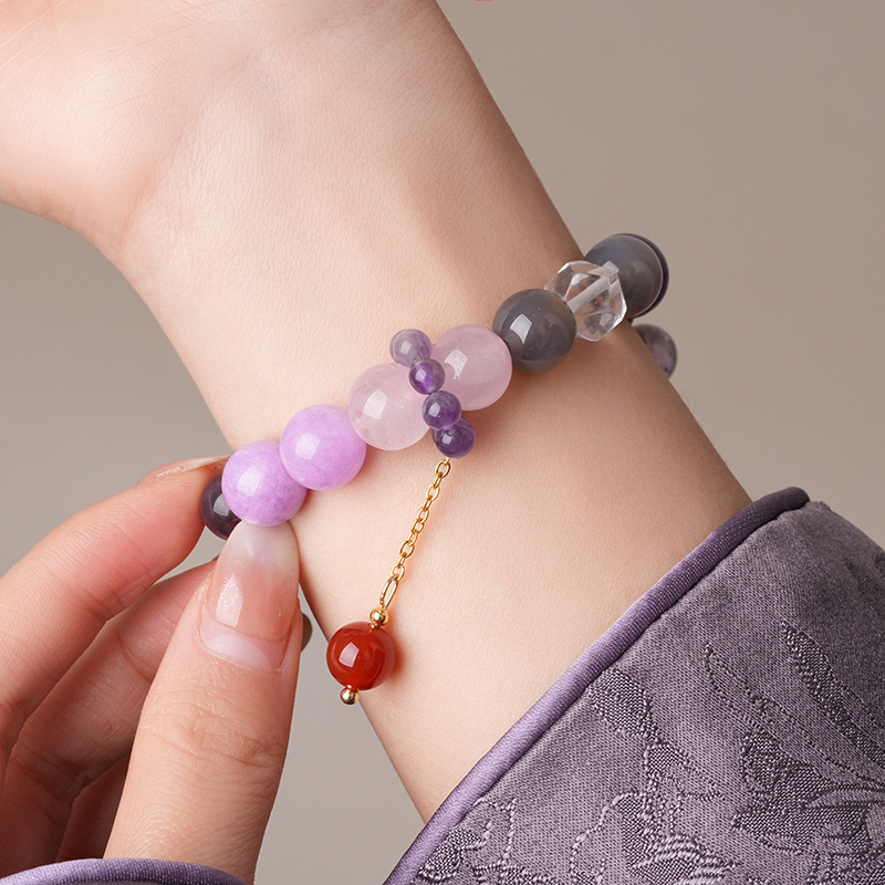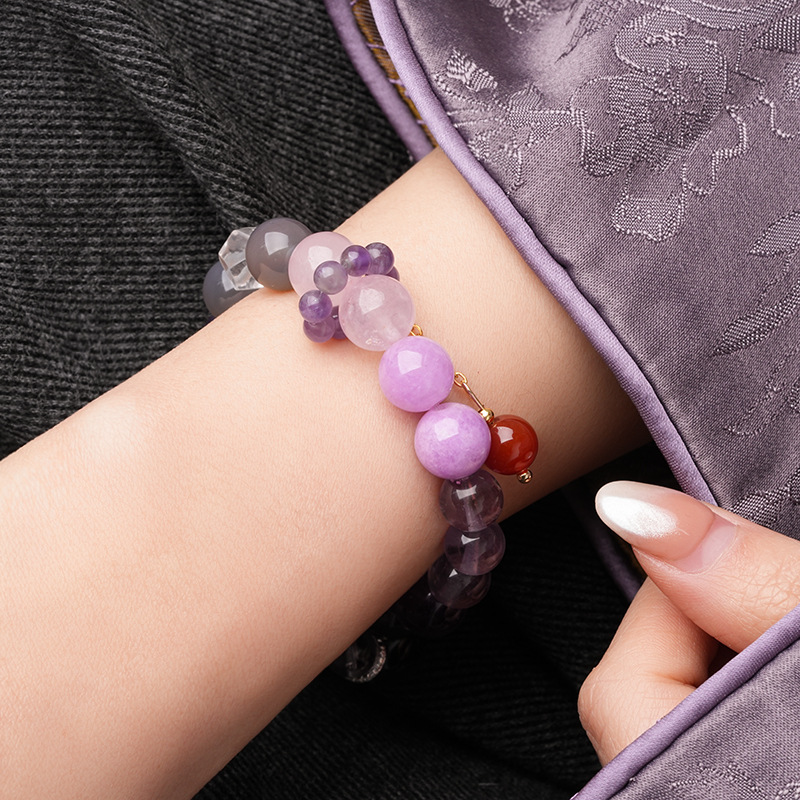 新中式貔貅灵蛇紫晶草莓晶圆球手链复古高级感手串气质优雅手饰女