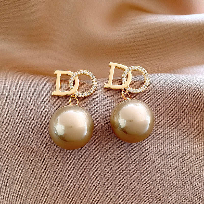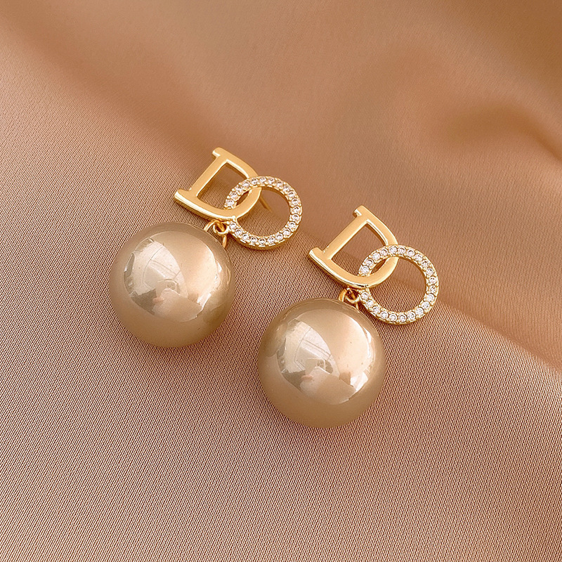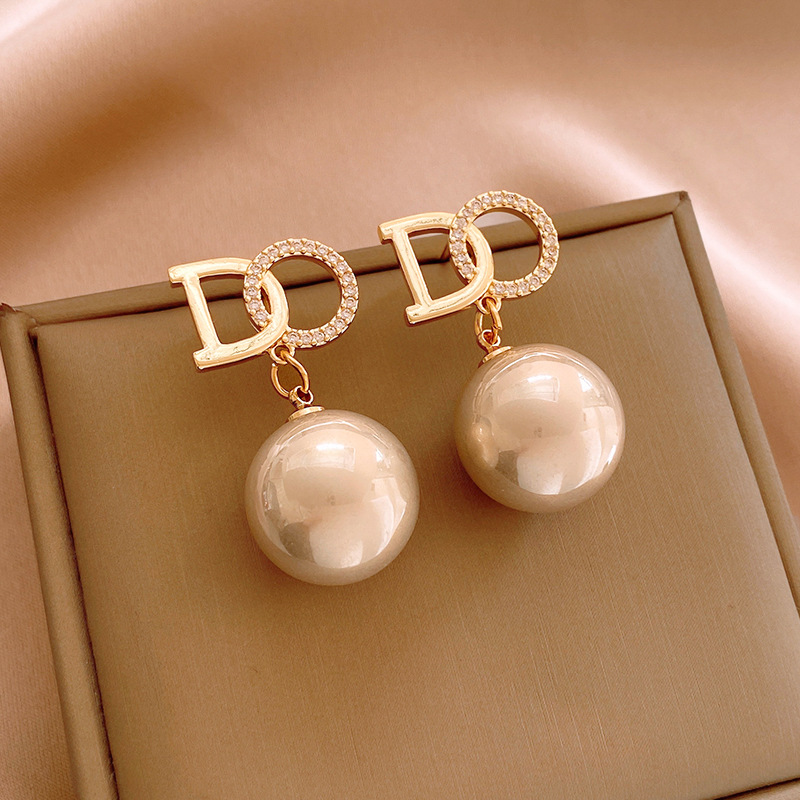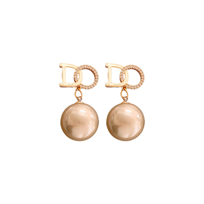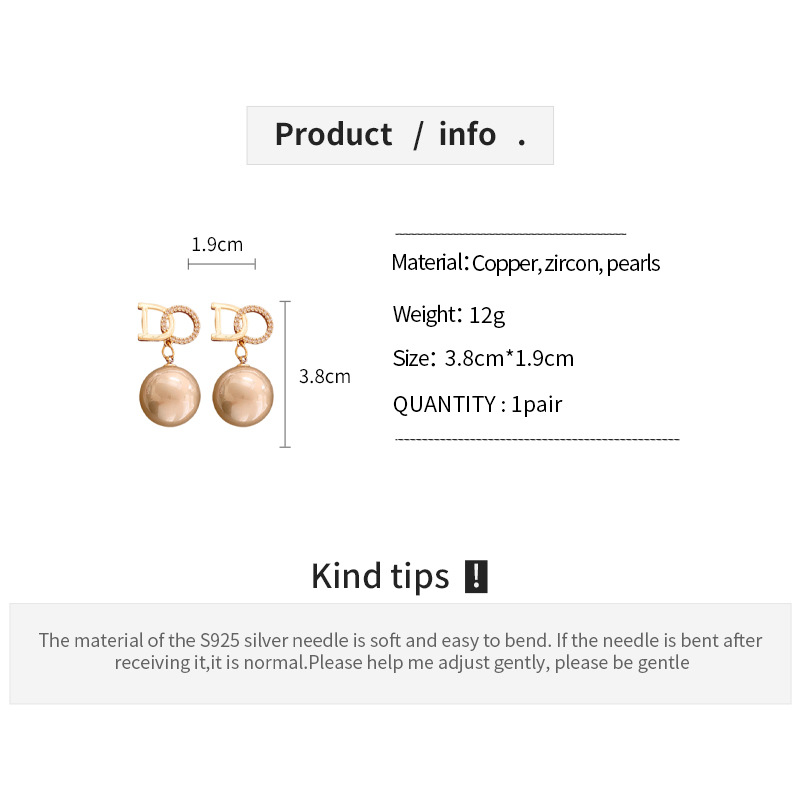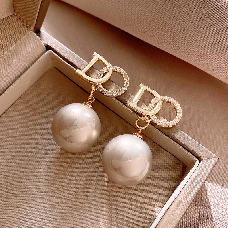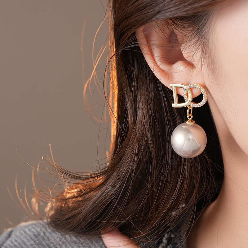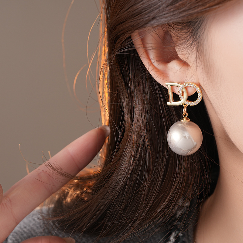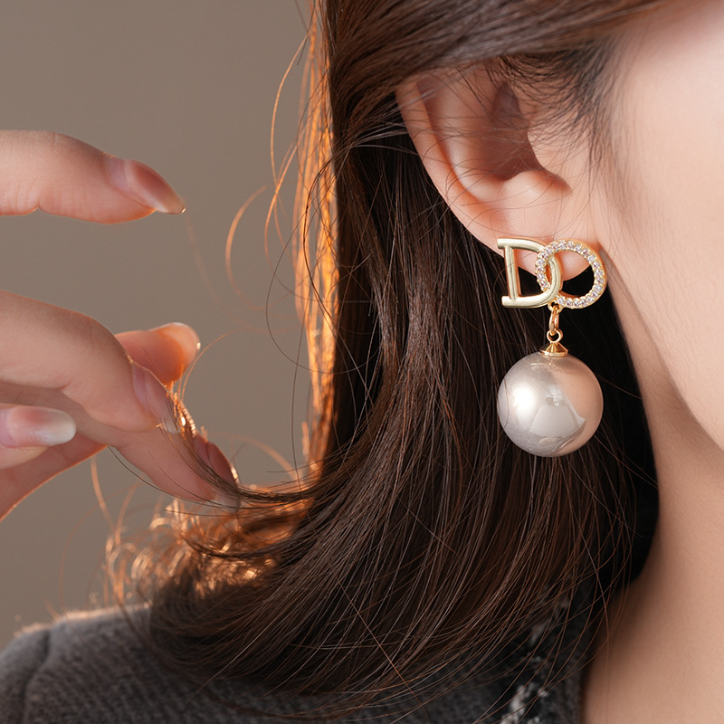 银针复古锆石字母珍珠耳钉时尚小众高级感耳环法式简约通勤耳饰女