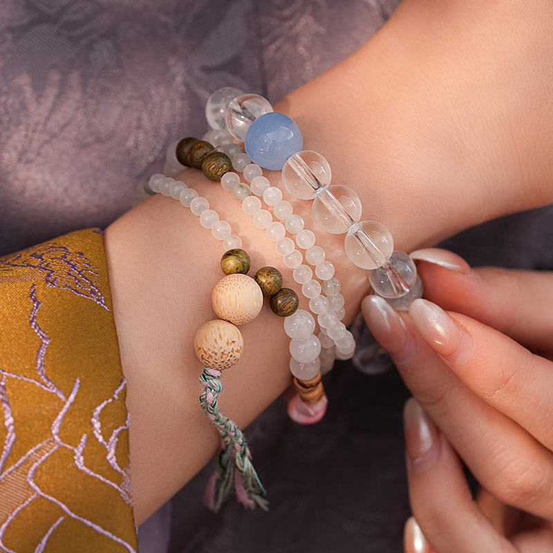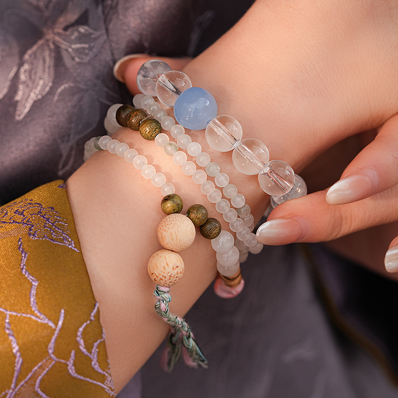 新中式木珠竹节水晶串珠叠戴手链高级感手串国潮气质百搭手饰批发