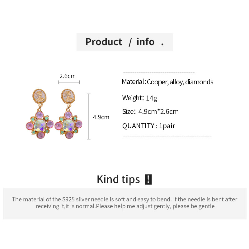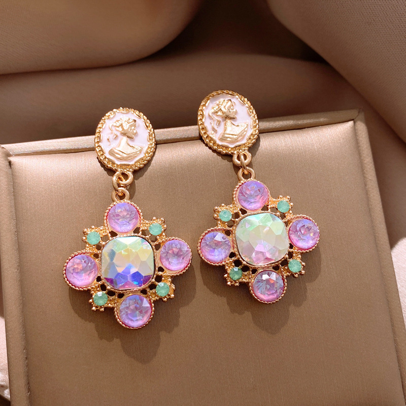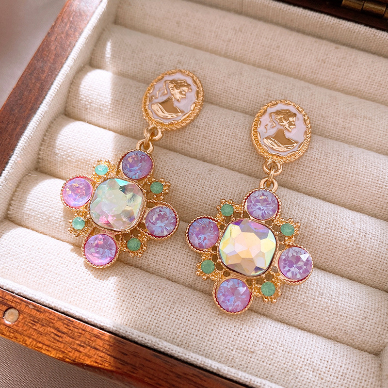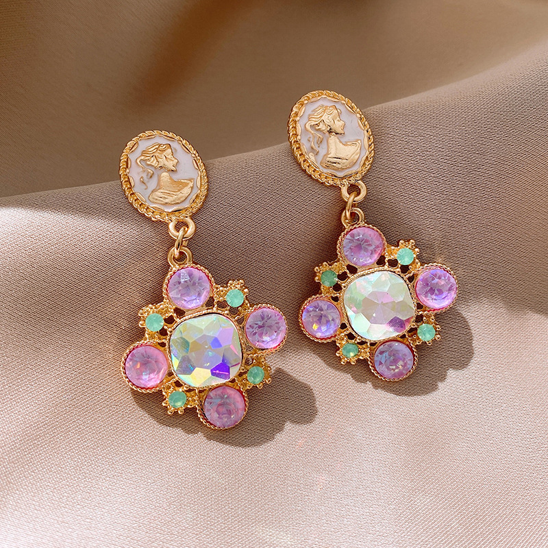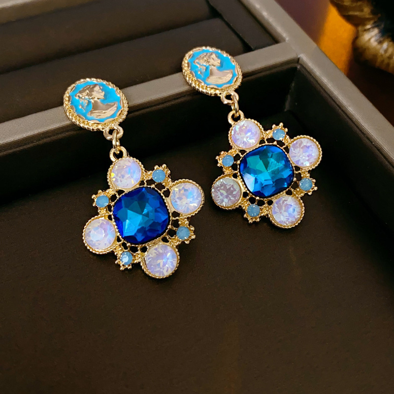 银针欧美夸张镶钻花朵耳钉轻奢高级感耳环复古个性小众气质耳饰女