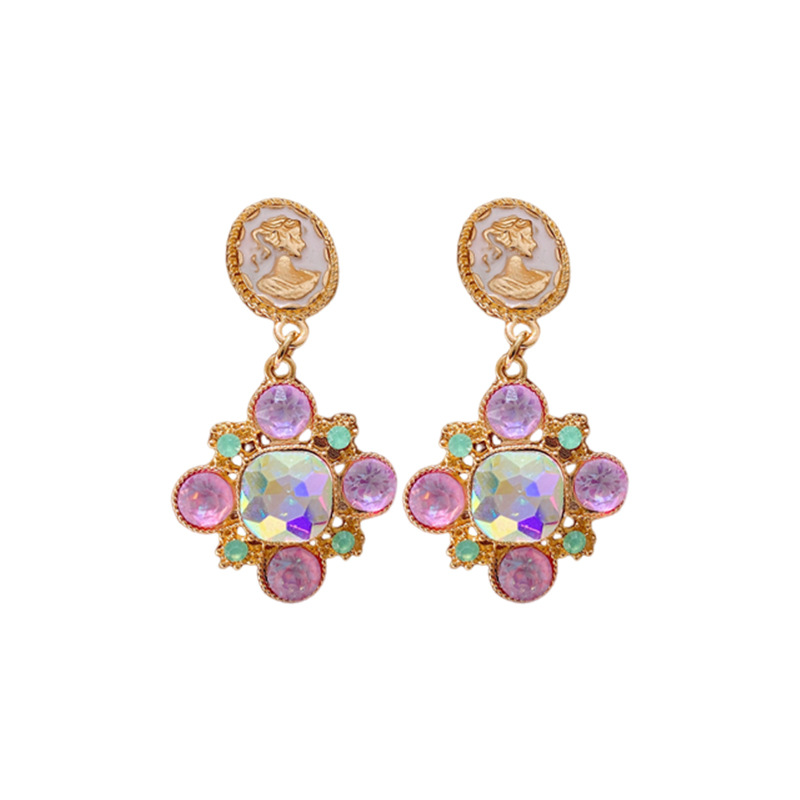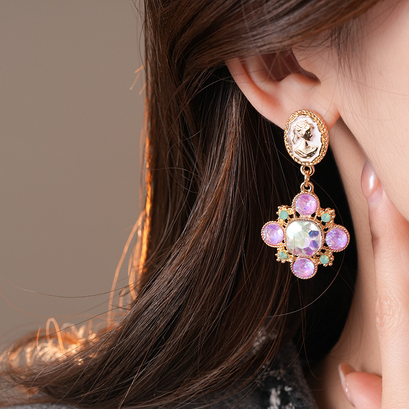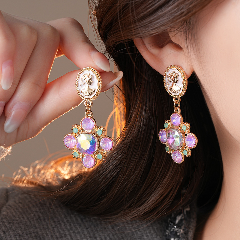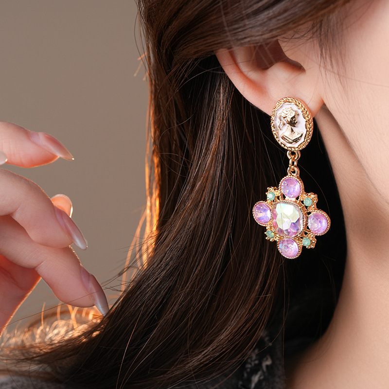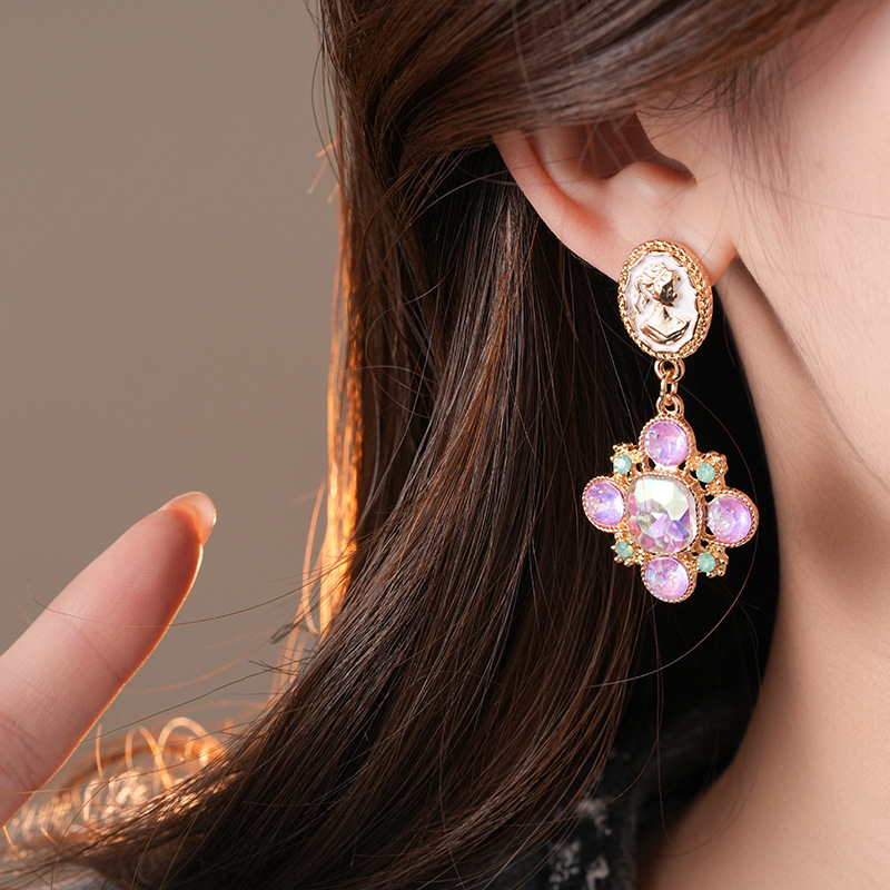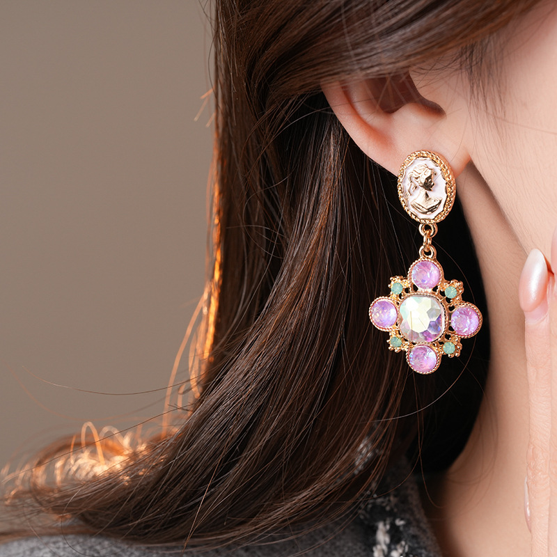 银针欧美夸张镶钻花朵耳钉轻奢高级感耳环复古个性小众气质耳饰女