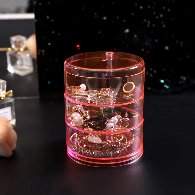 旋转首饰收纳盒 多层透明收纳桌面防尘整理便携式多功能收纳盒