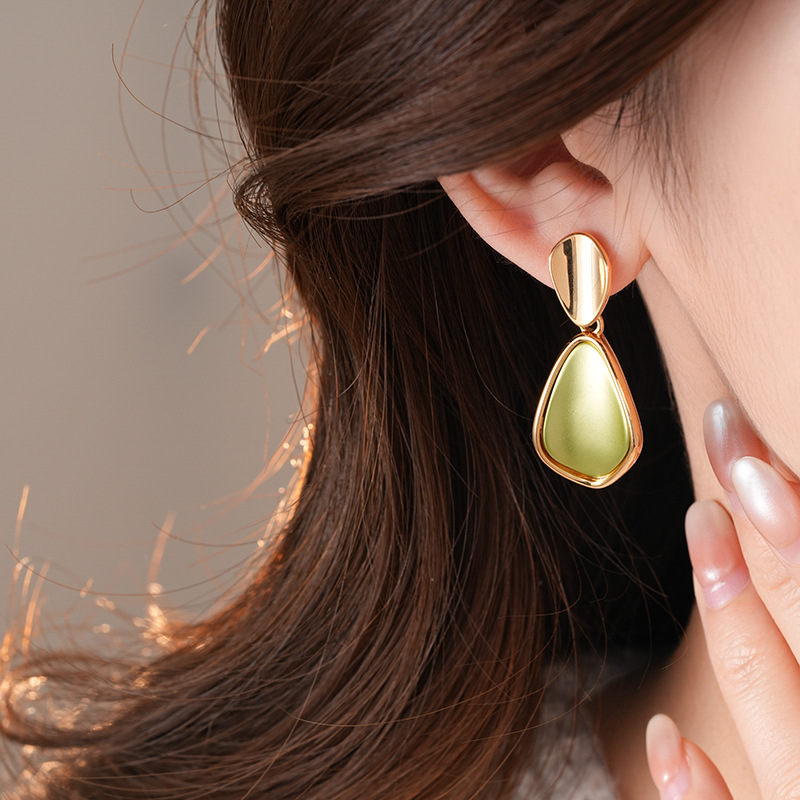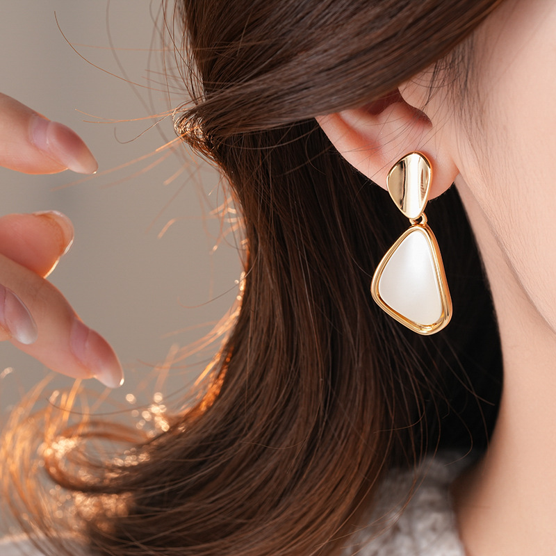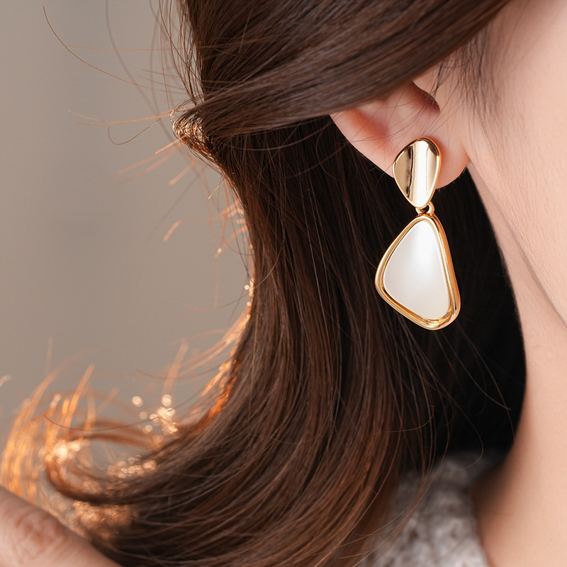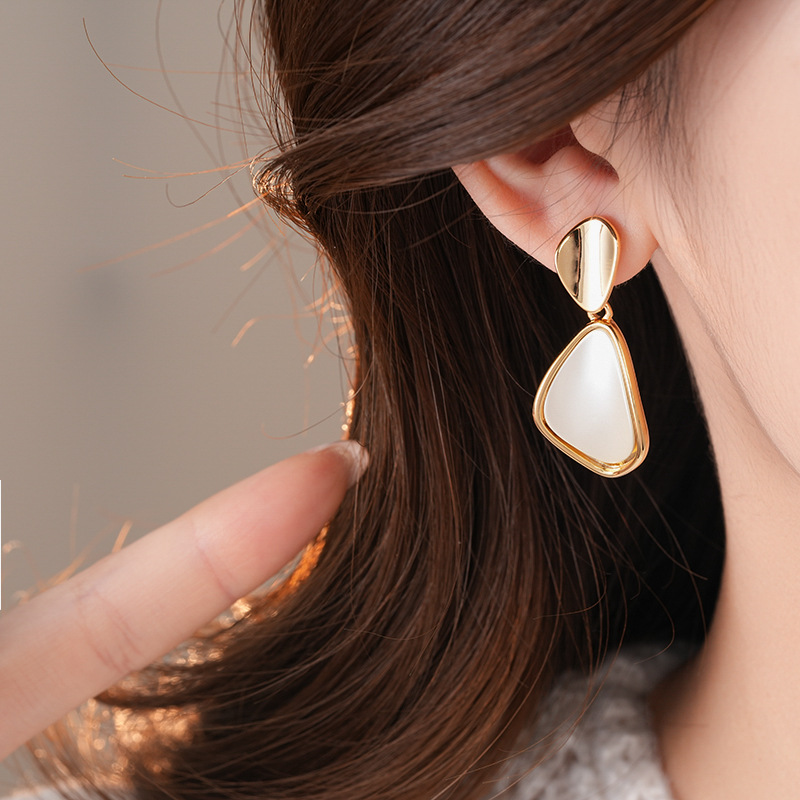 18k真金电镀不规则椭圆耳环时尚ins风耳钉轻奢高级感百搭耳饰批发