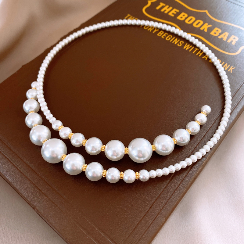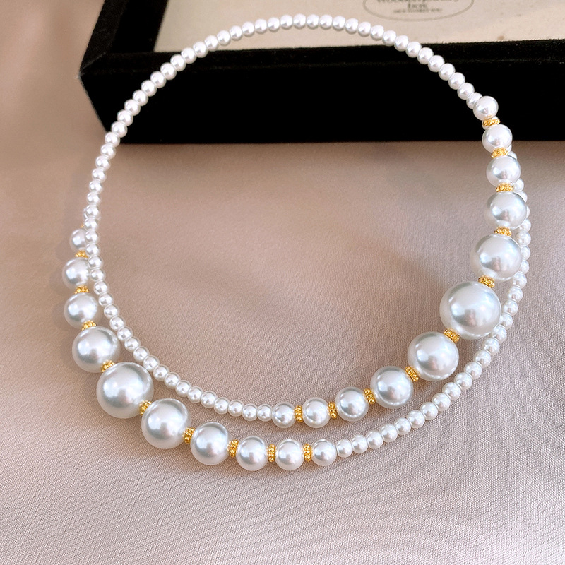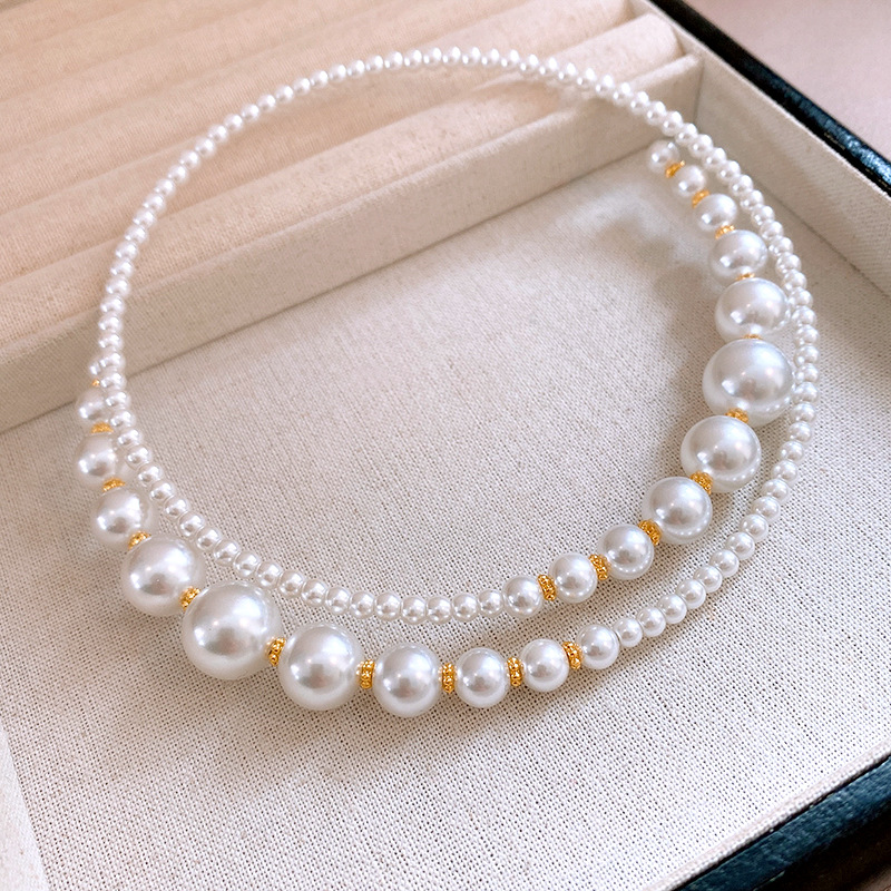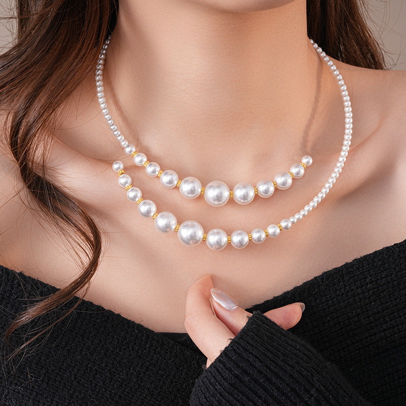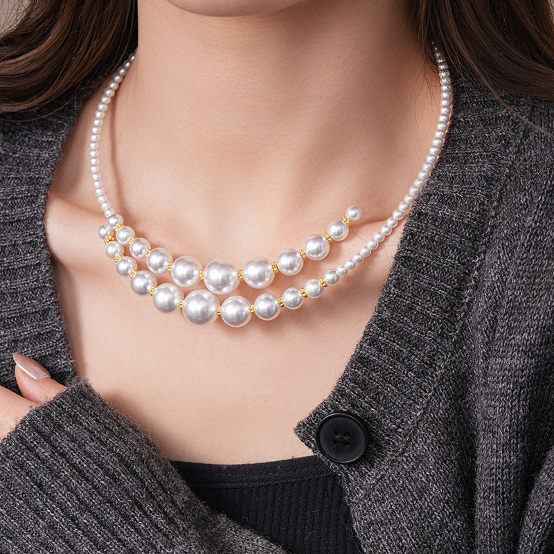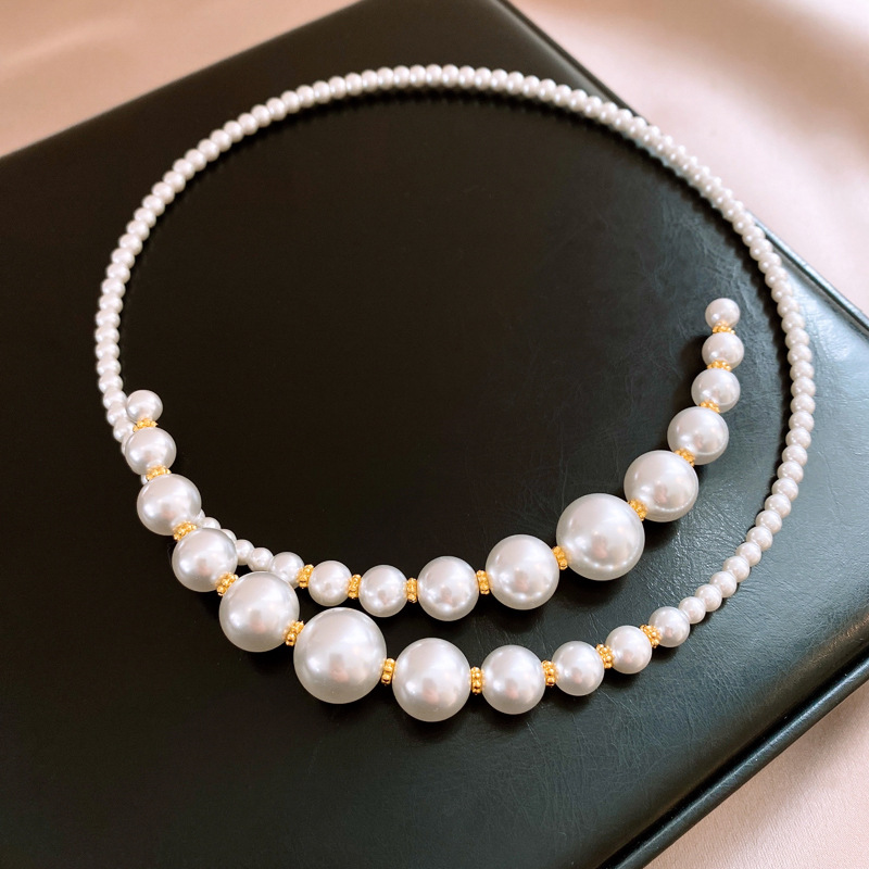 施家珍珠不规则大小交叉项圈法式复古项链轻奢高级感新款项饰批发