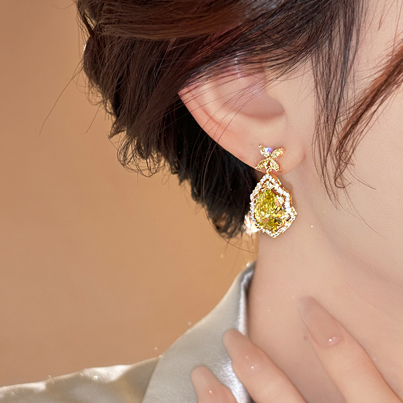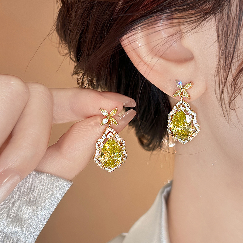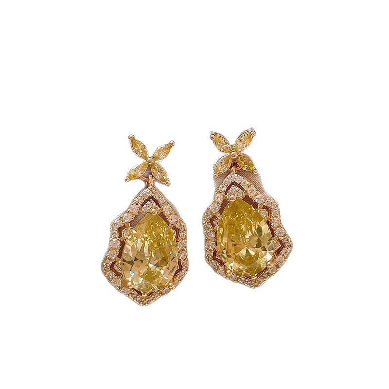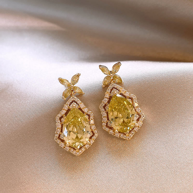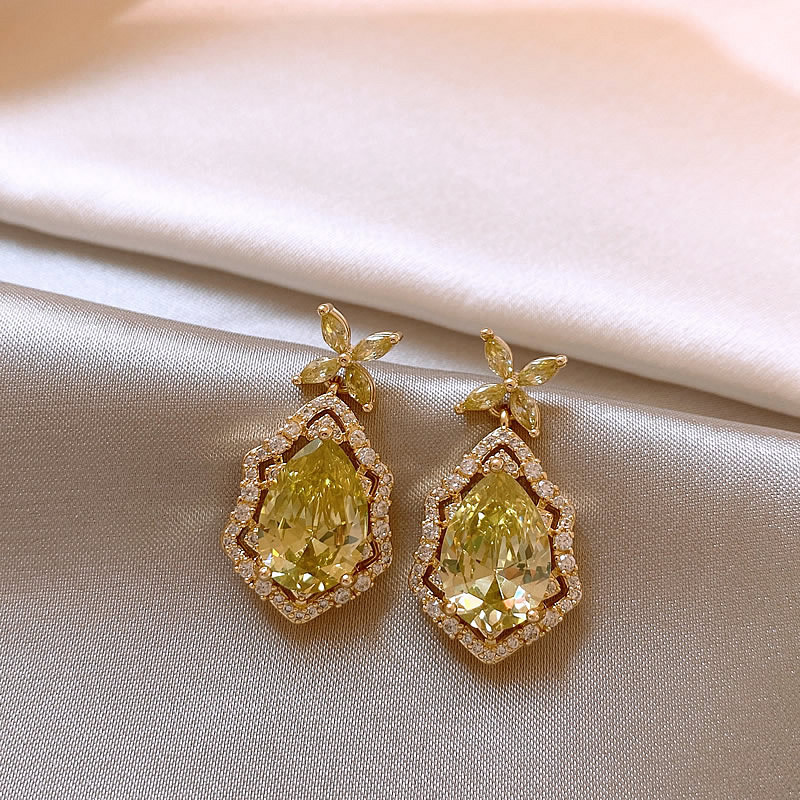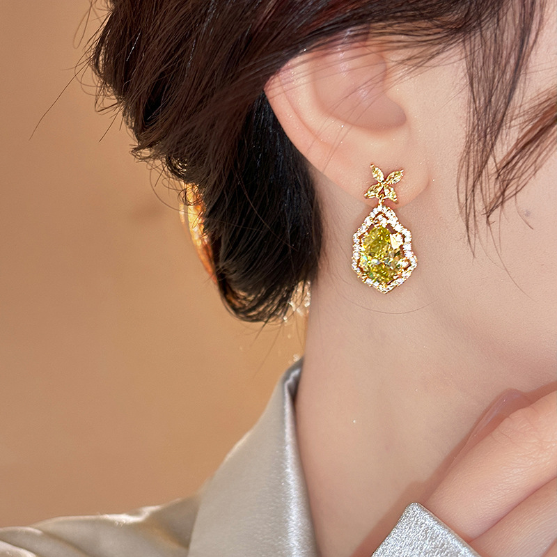 14K真金电镀银针锆石椭圆花朵耳环 百搭时尚耳钉轻奢高级感耳饰女