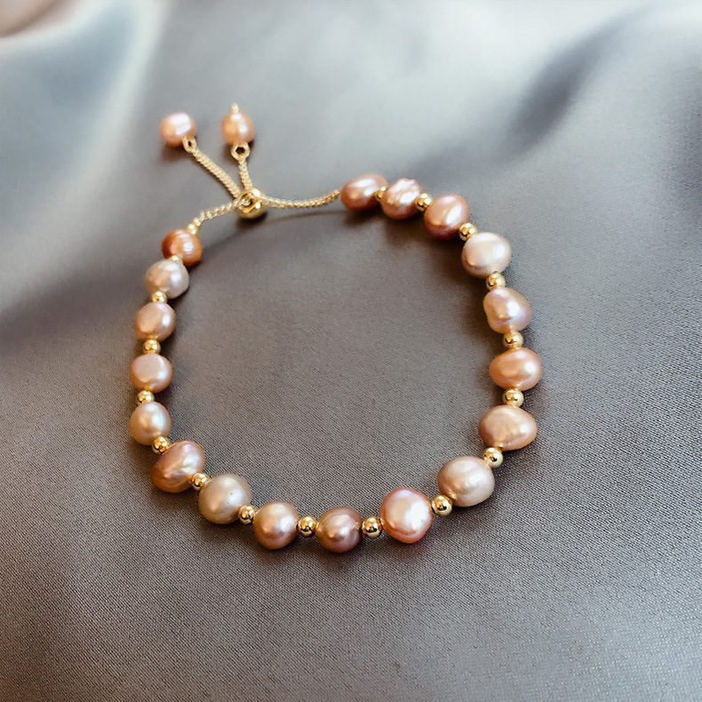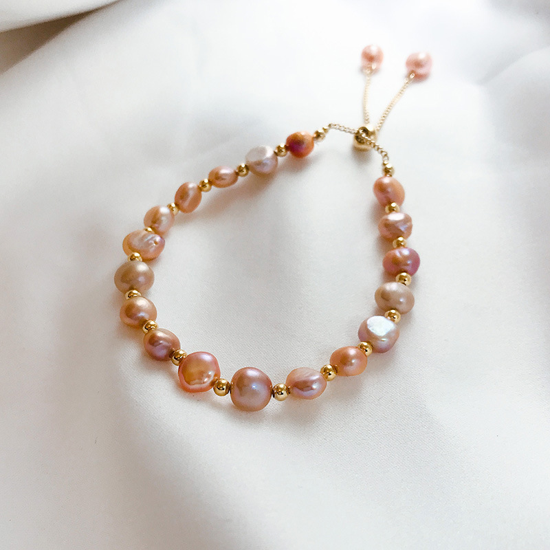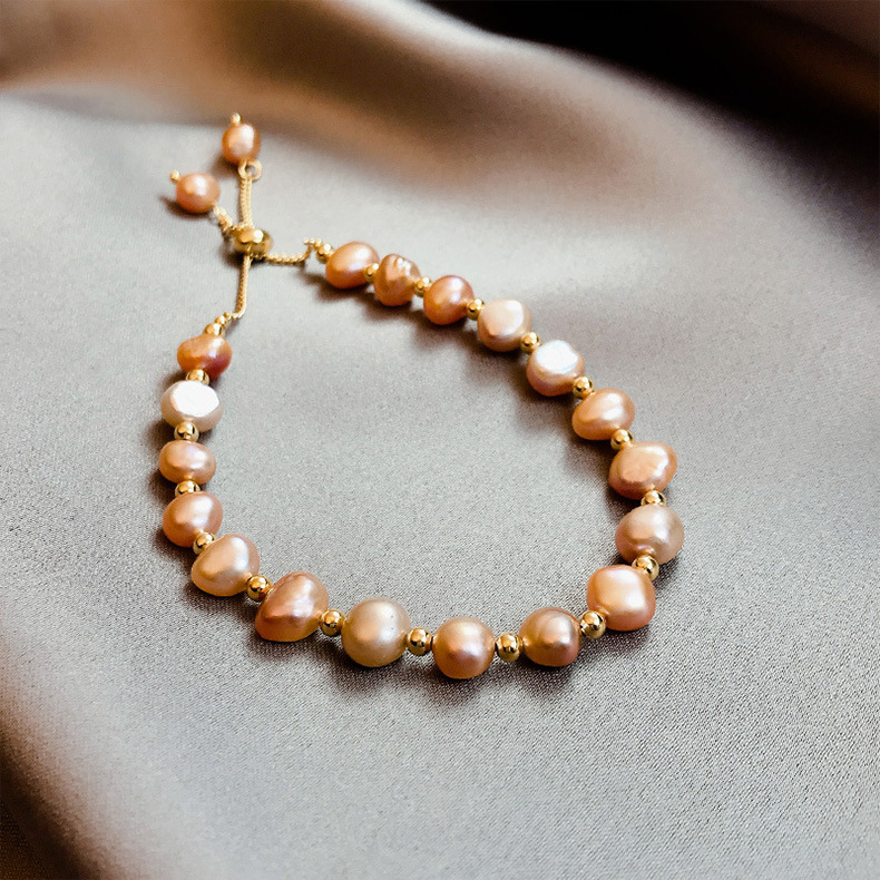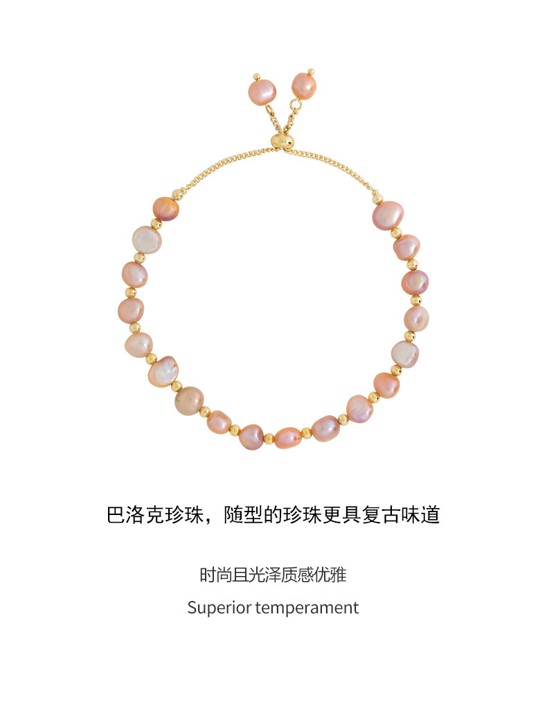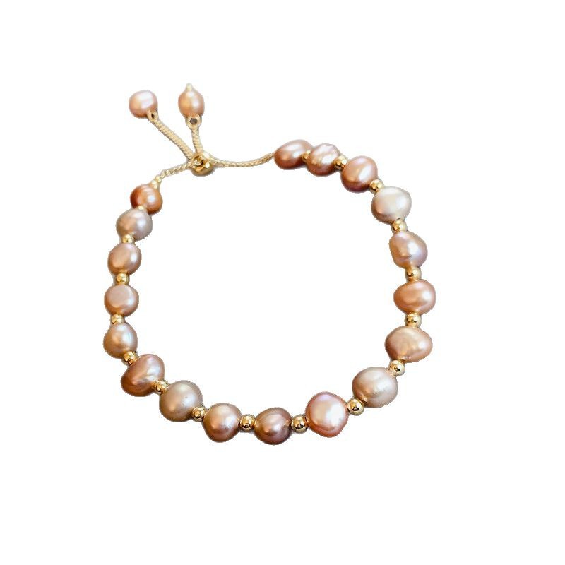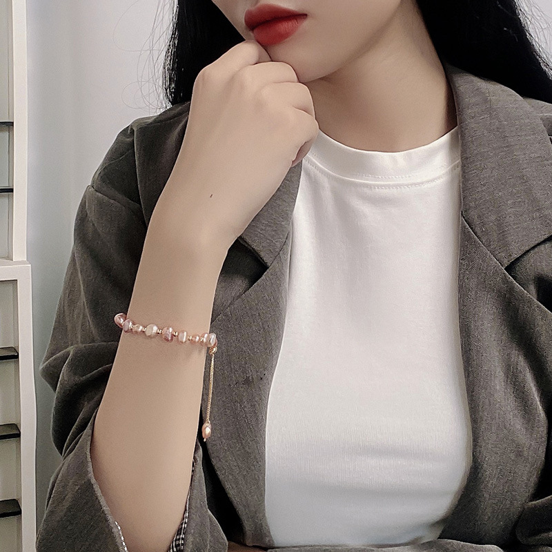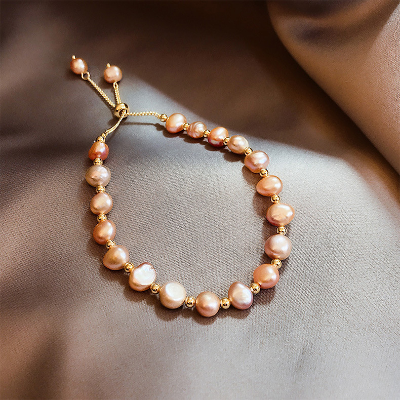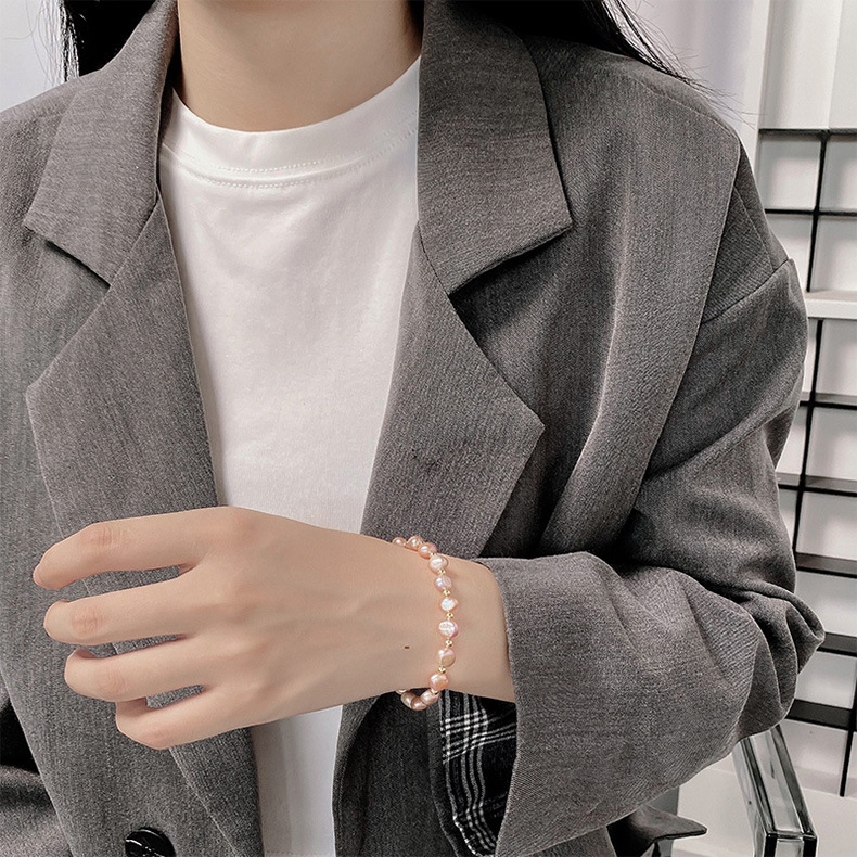 法式复古粉色淡水珍珠手链女简约百搭时尚手串轻奢高级感手饰批发