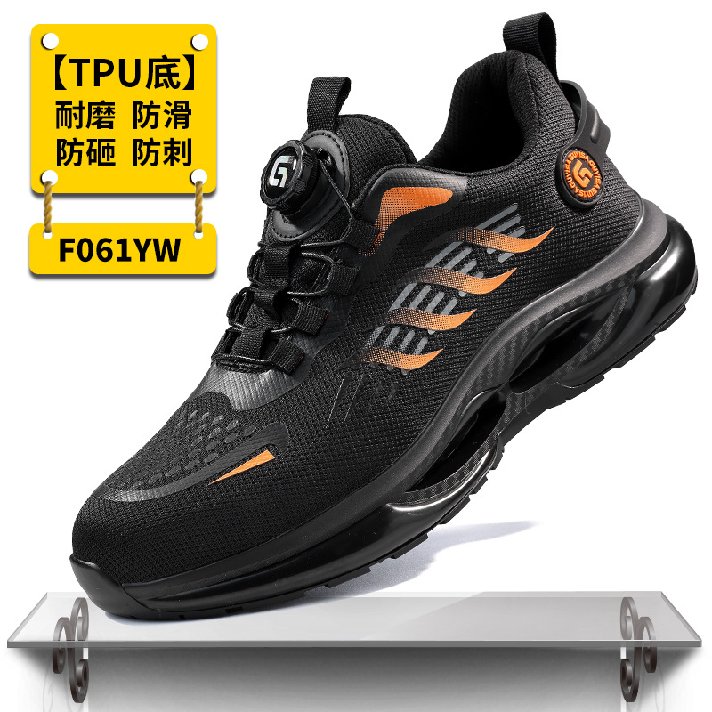 跨境旋转扣劳保鞋男防砸防刺穿钢头安全鞋免系带智能扣工作防护鞋