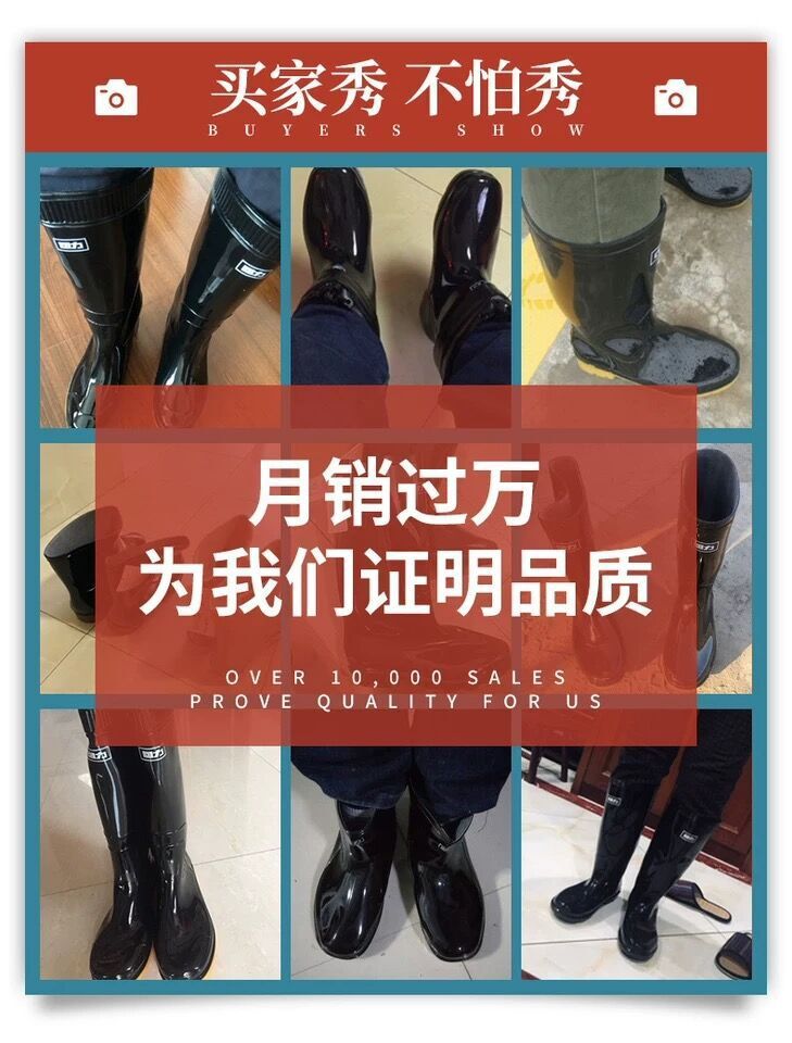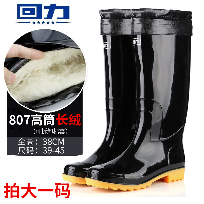 回力雨鞋807高筒雨靴男款中帮防水防滑耐磨劳保胶鞋黑色水鞋批发