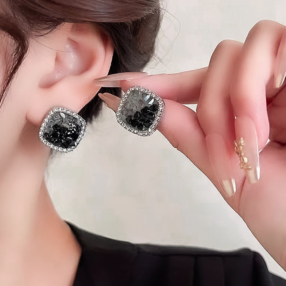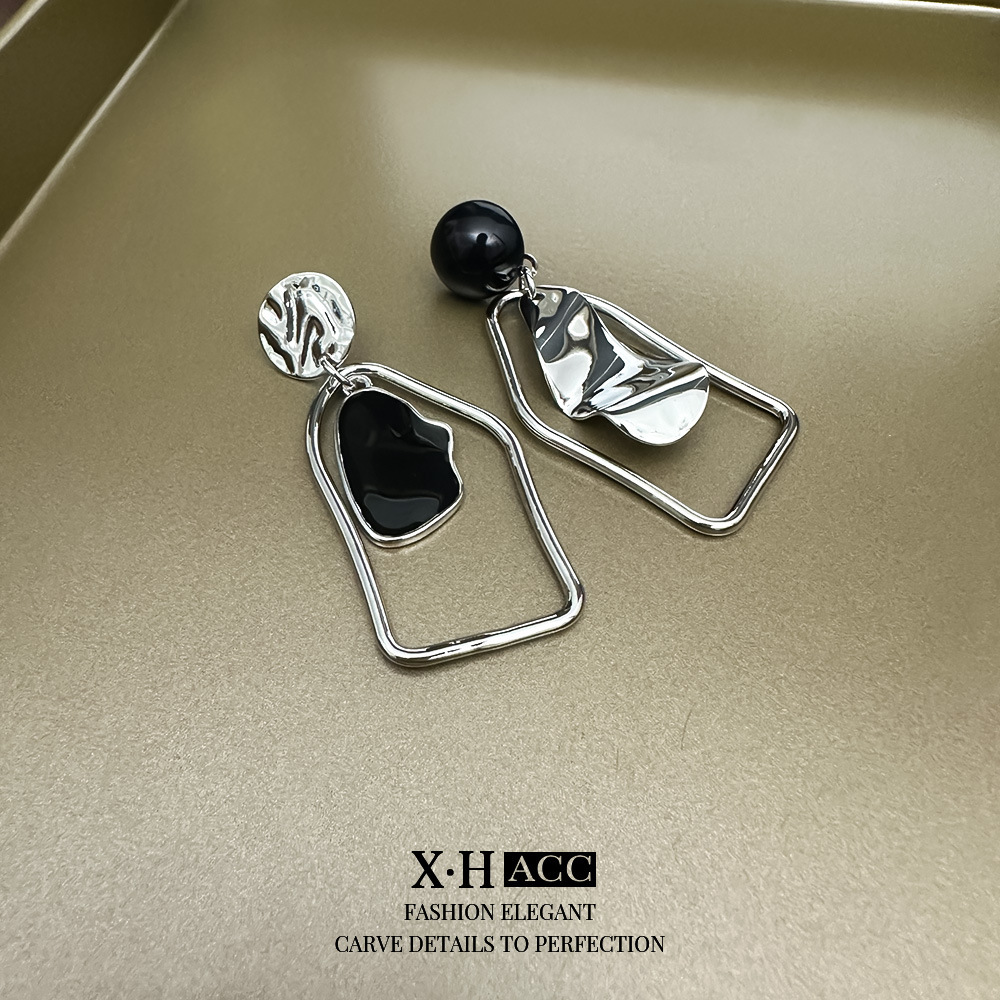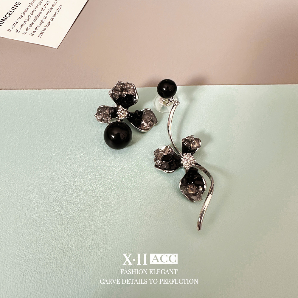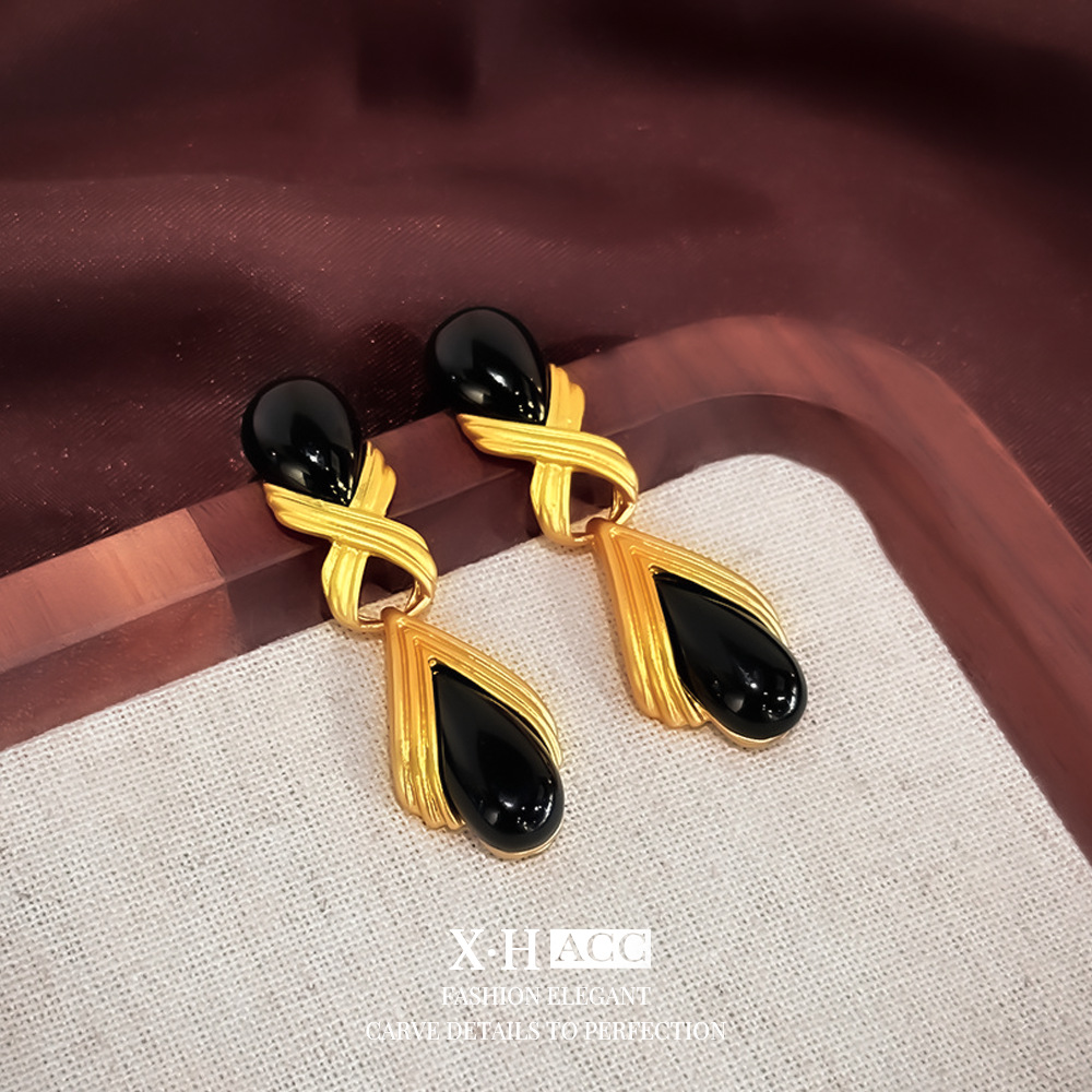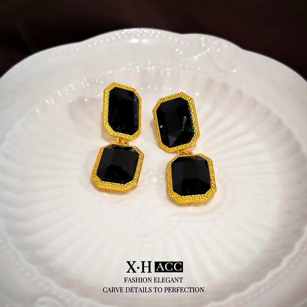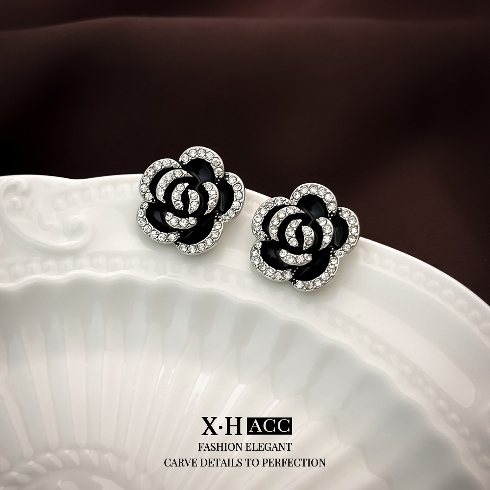 银针轻奢高级感黑色锆石爱心耳环小众气质几何耳钉独特设计感耳饰