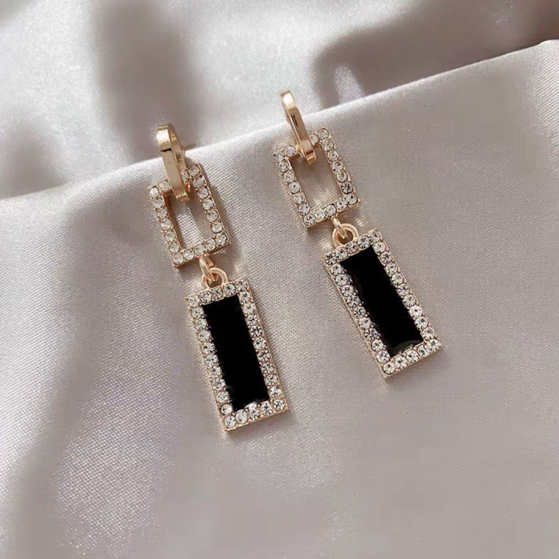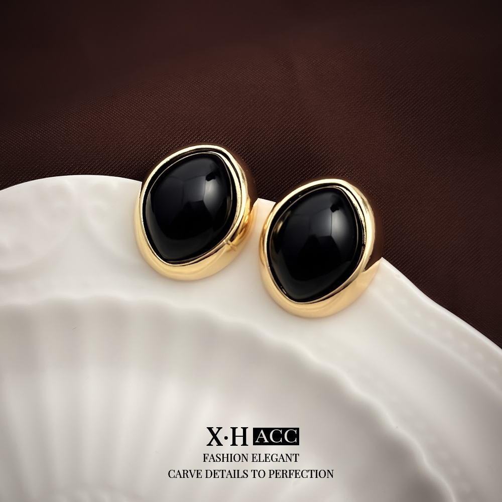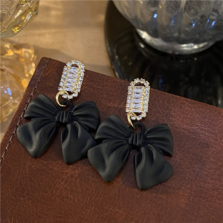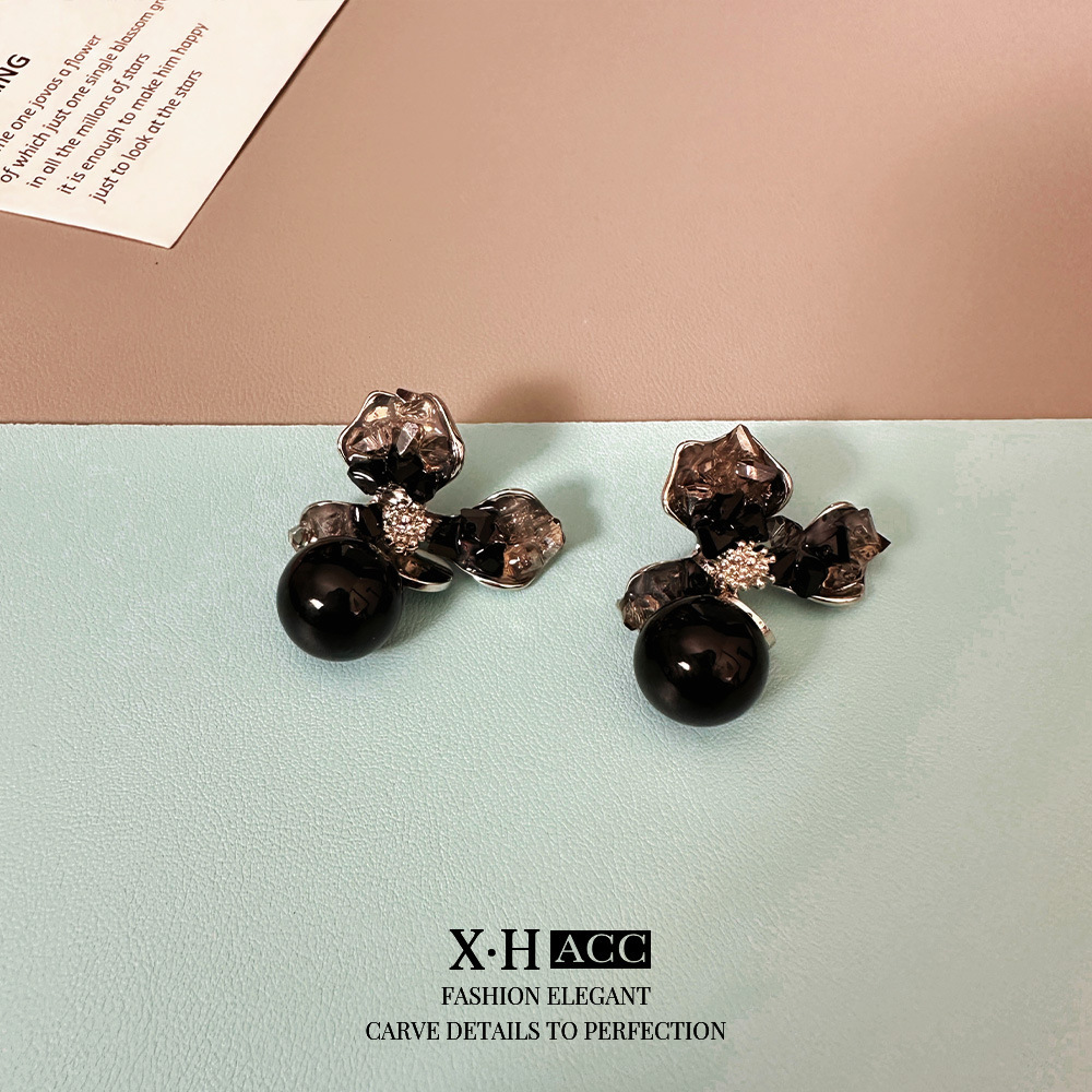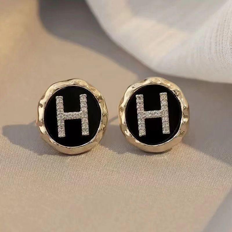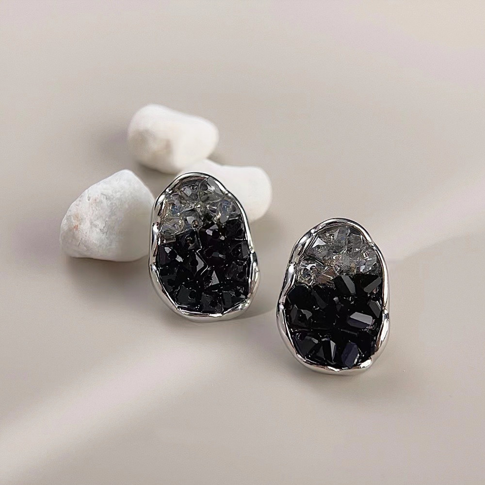 银针轻奢高级感黑色锆石爱心耳环小众气质几何耳钉独特设计感耳饰