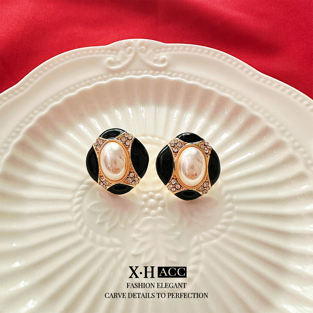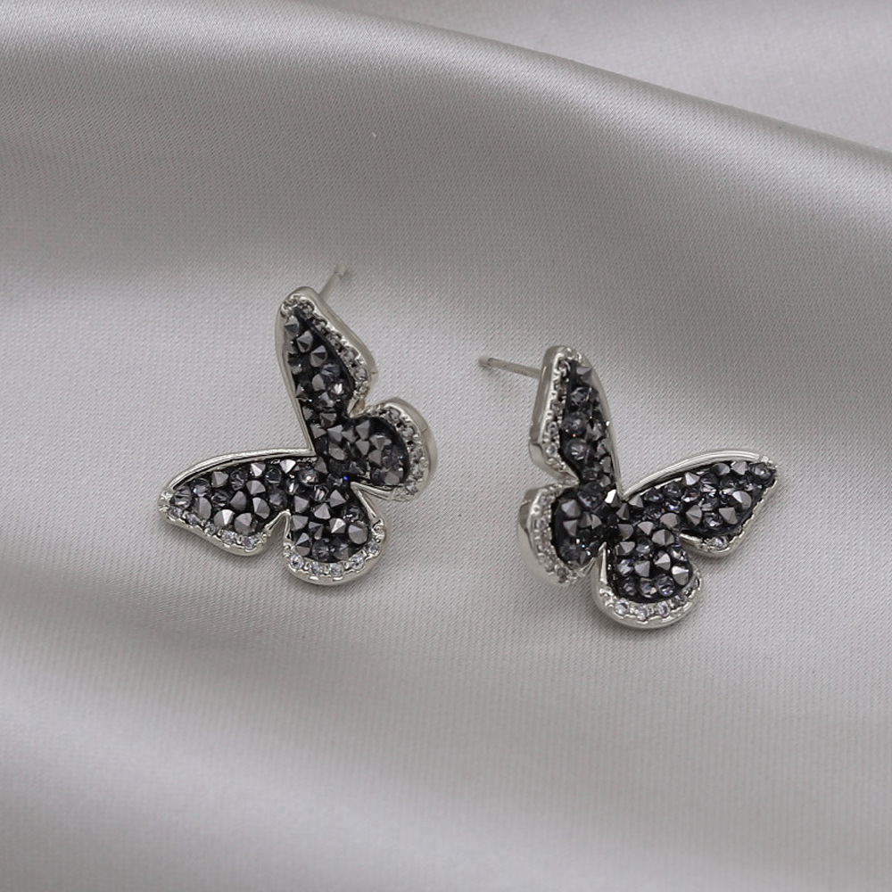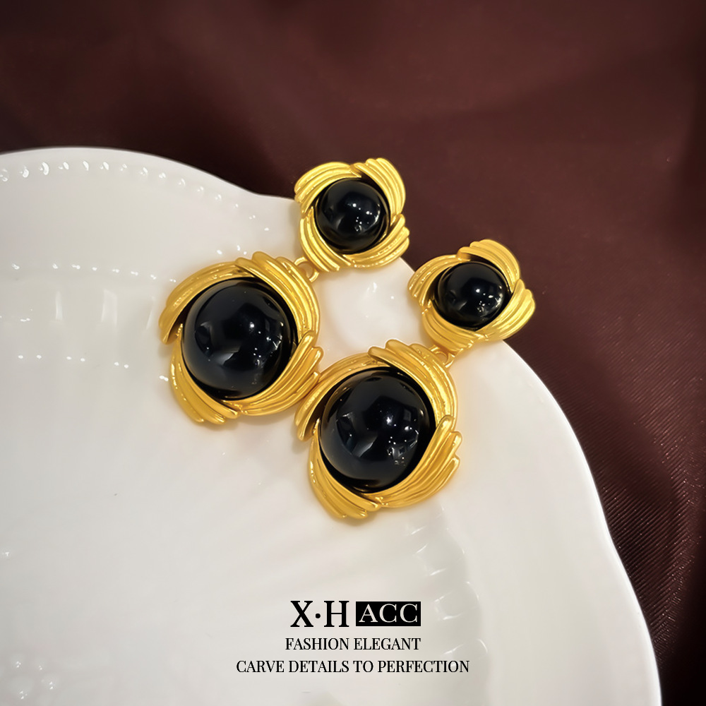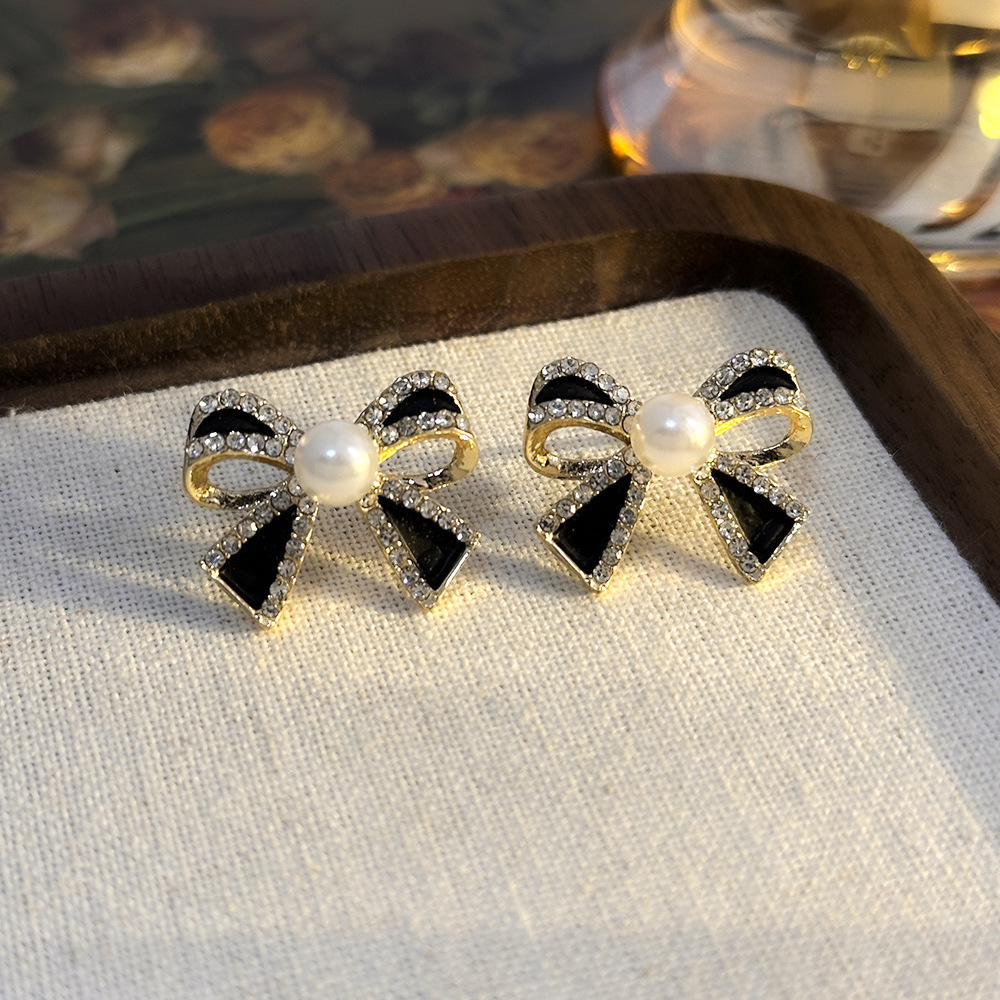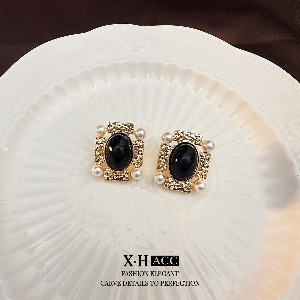 银针轻奢高级感黑色锆石爱心耳环小众气质几何耳钉独特设计感耳饰
